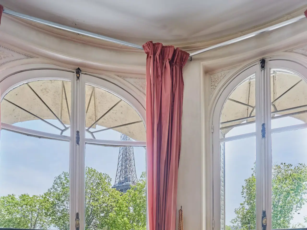Rue Le Nôtre. This superb apartment on the 1st floor of a fine mid 1920’s corner building benefits from a terrace and boasts magnificent views of Trocadero Gardens, the Eiffel Tower and the Seine. It includes a spacious and bright living/reception room, a drawing room, a generously proportioned dining room, a separate kitchen with a pantry, four bedrooms, a bathroom, a shower room and a dressing room. Period features include Herringbone parquet flooring. Renovation is required to exploit the huge potential.