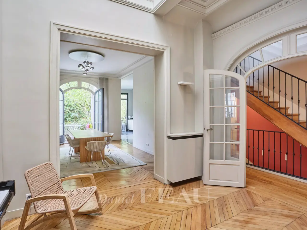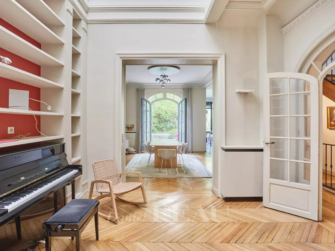 Pereire neighbourhood. This private mansion dating from the 1880s is in a convenient location near the shops and the schools. The raised ground floor includes a living/reception room, a drawing room, a dining room opening onto a terrace and garden, a fitted semi open-plan kitchen, and a wc. Upstairs are a master suite with a shower room and dressing room, and a bedroom accessing a terrace. The second floor comprises a bedroom, a bath/shower room, and a further bedroom with a bathroom. A fifth and sixth bedroom and a shower room are on the top floor. The basement comprises a recreation room, a home cinema, a fitness room with a sauna, a shower room and a utility room. All floors have a wc.