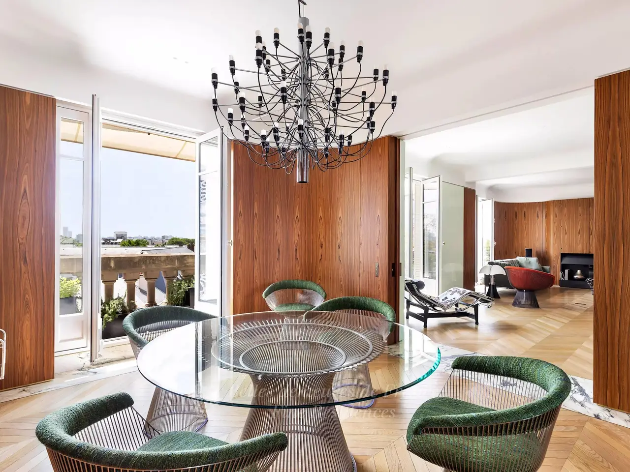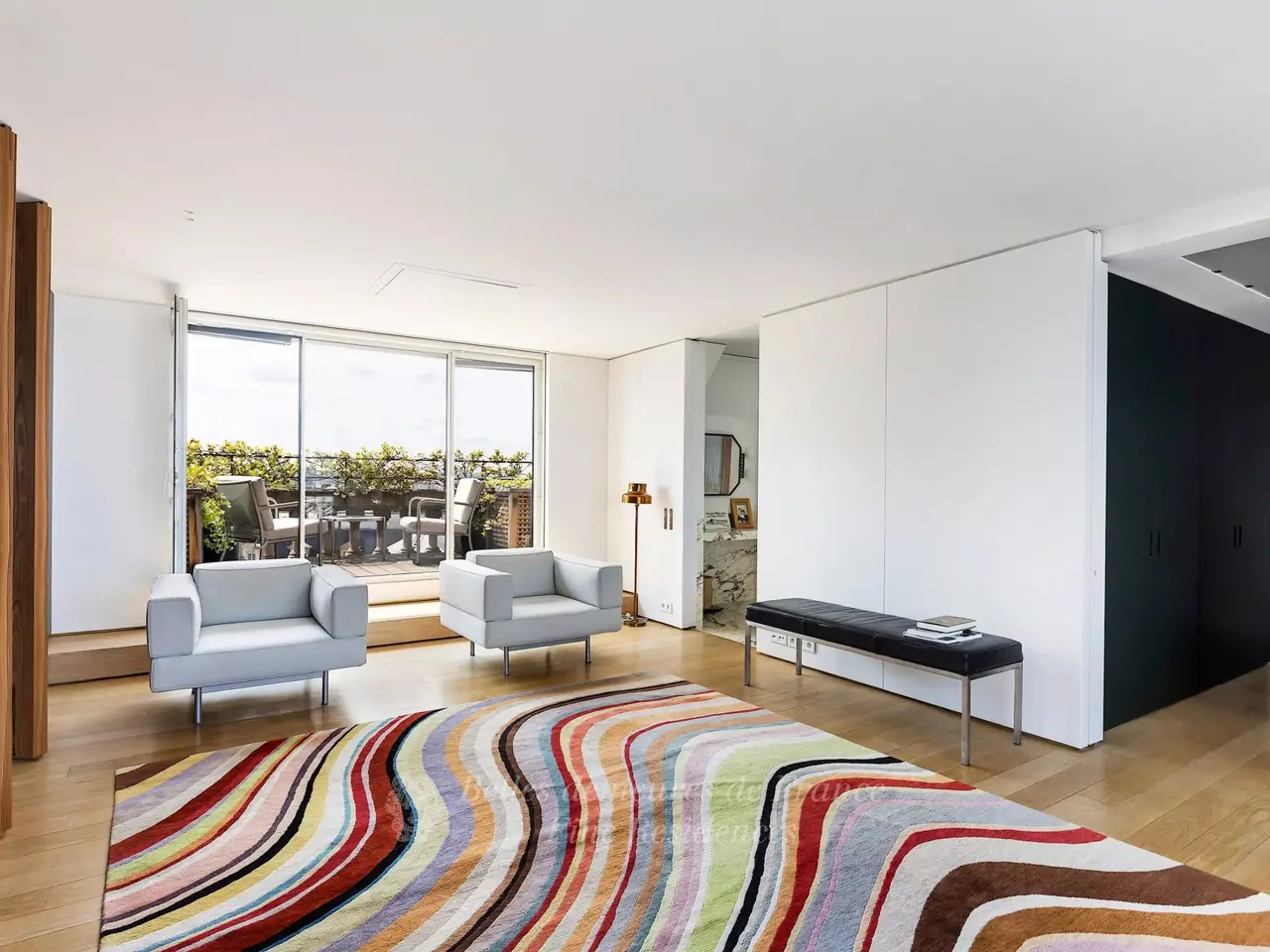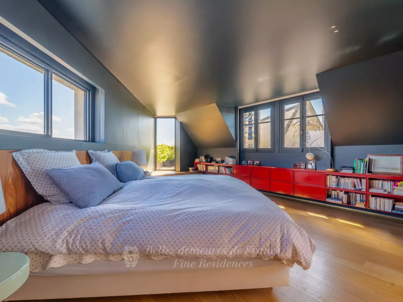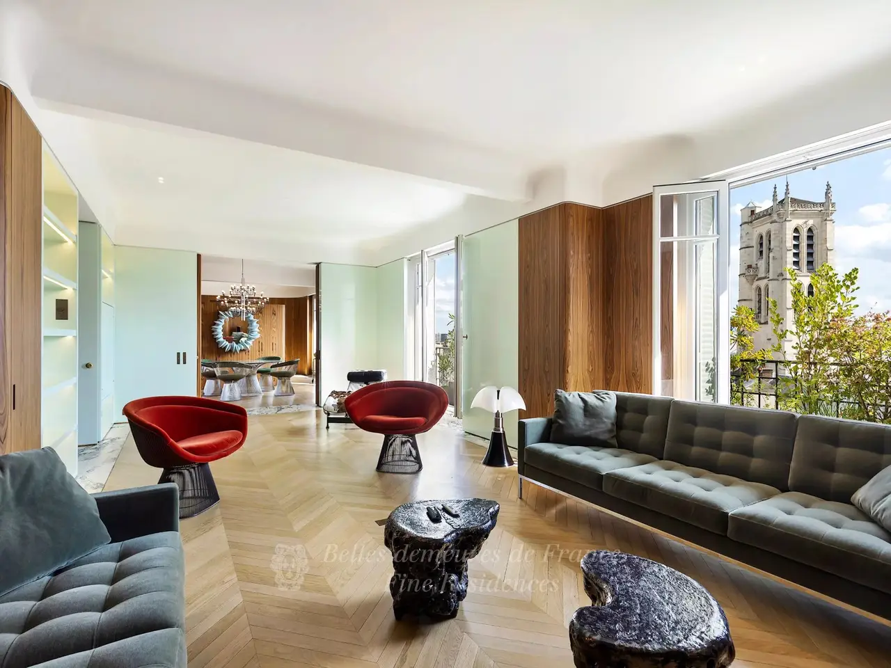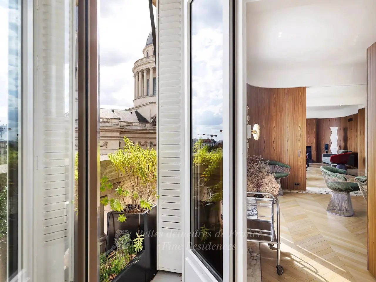 This magnificent 230 sqm apartment on the top floors of a luxurious late 1920s building includes a particularly sunny living/reception room opening onto balconies and commanding stunning views of Place du Pantheon and the church, a kitchen with dining facilities, two bedrooms with bathrooms, and a study. The upper floor boasts breathtaking views of the capital and its landmarks, and comprises a master bedroom opening onto two terraces, and a study/home cinema. A parking space nearby is available for purchase or rental. Henri IV catchment area.