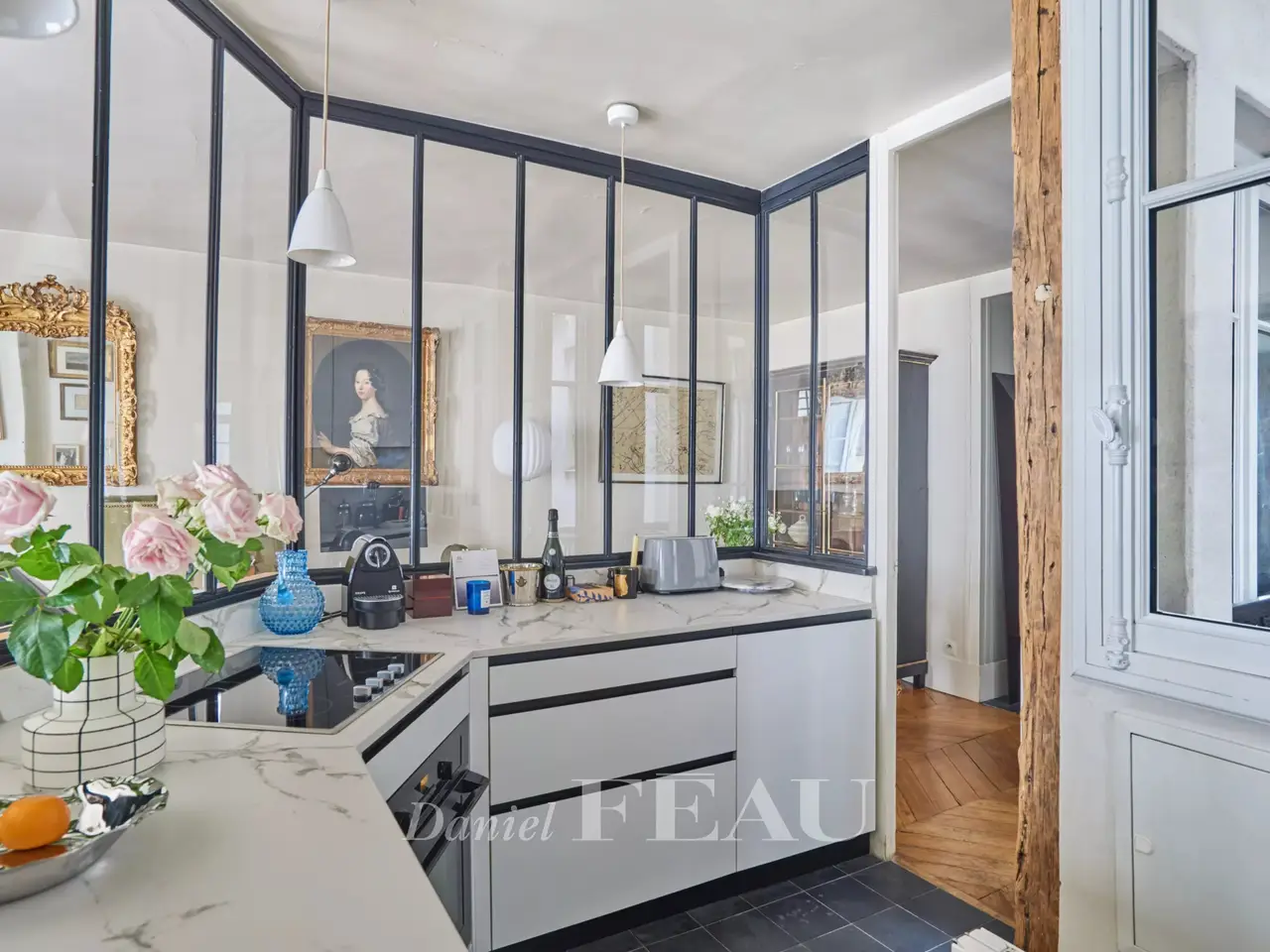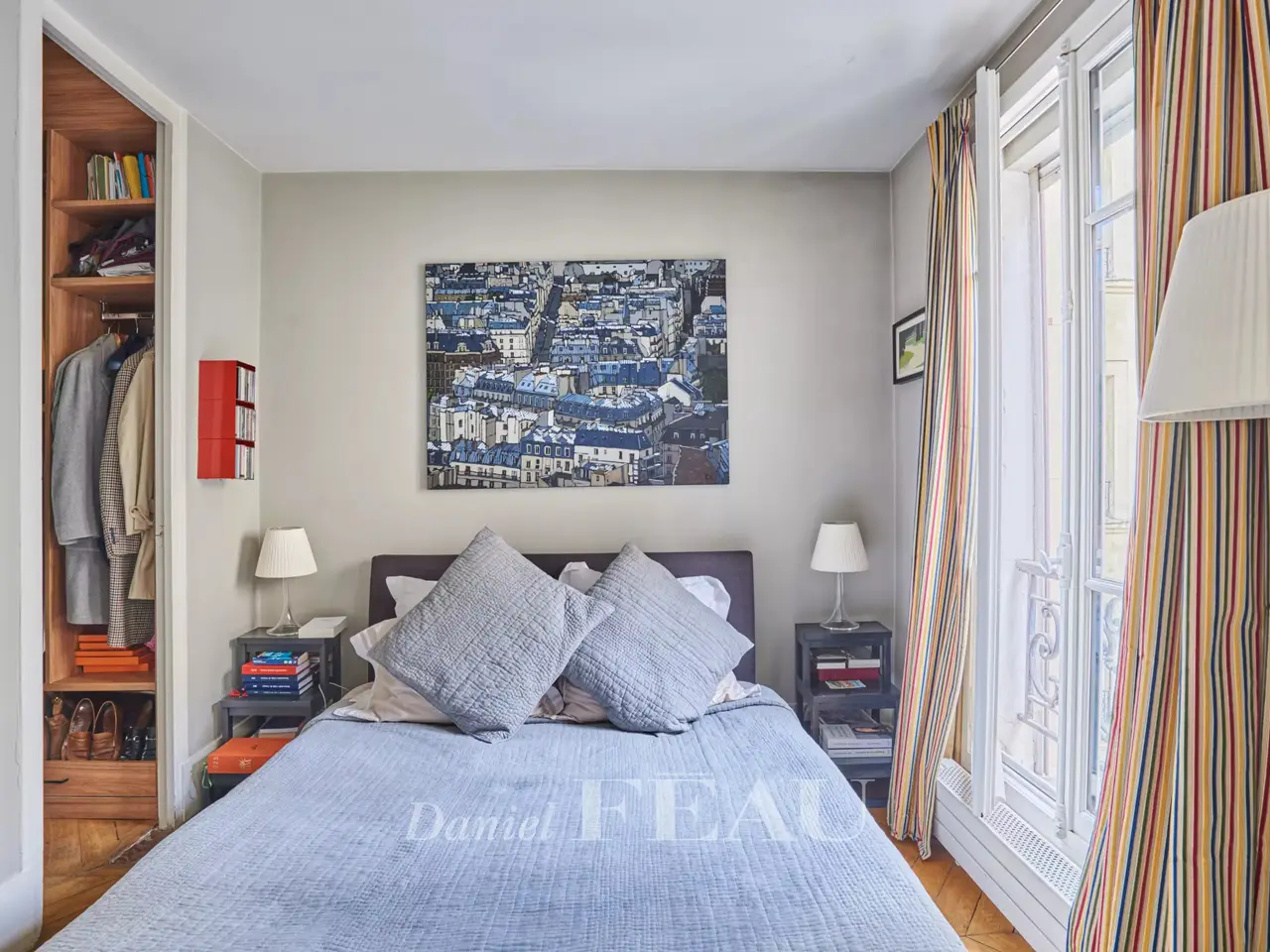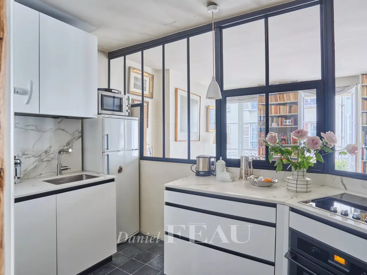 Sole Agent. This bright 62 sqm apartment occupies the whole 2nd floor of a charming late 19th century building located in a peaceful and sought-after street in the rue du Bac/Bon Marché neighbourhood. Benefiting from an optimised floor plan, it includes a spacious living/reception room with three floor-to-ceiling windows opening onto a balcony, a semi open-plan kitchen featuring workshop-style glazing, a bedroom overlooking a courtyard, an adjacent bathroom and dressing room, and a guest wc. With a near 10 sqm cellar.