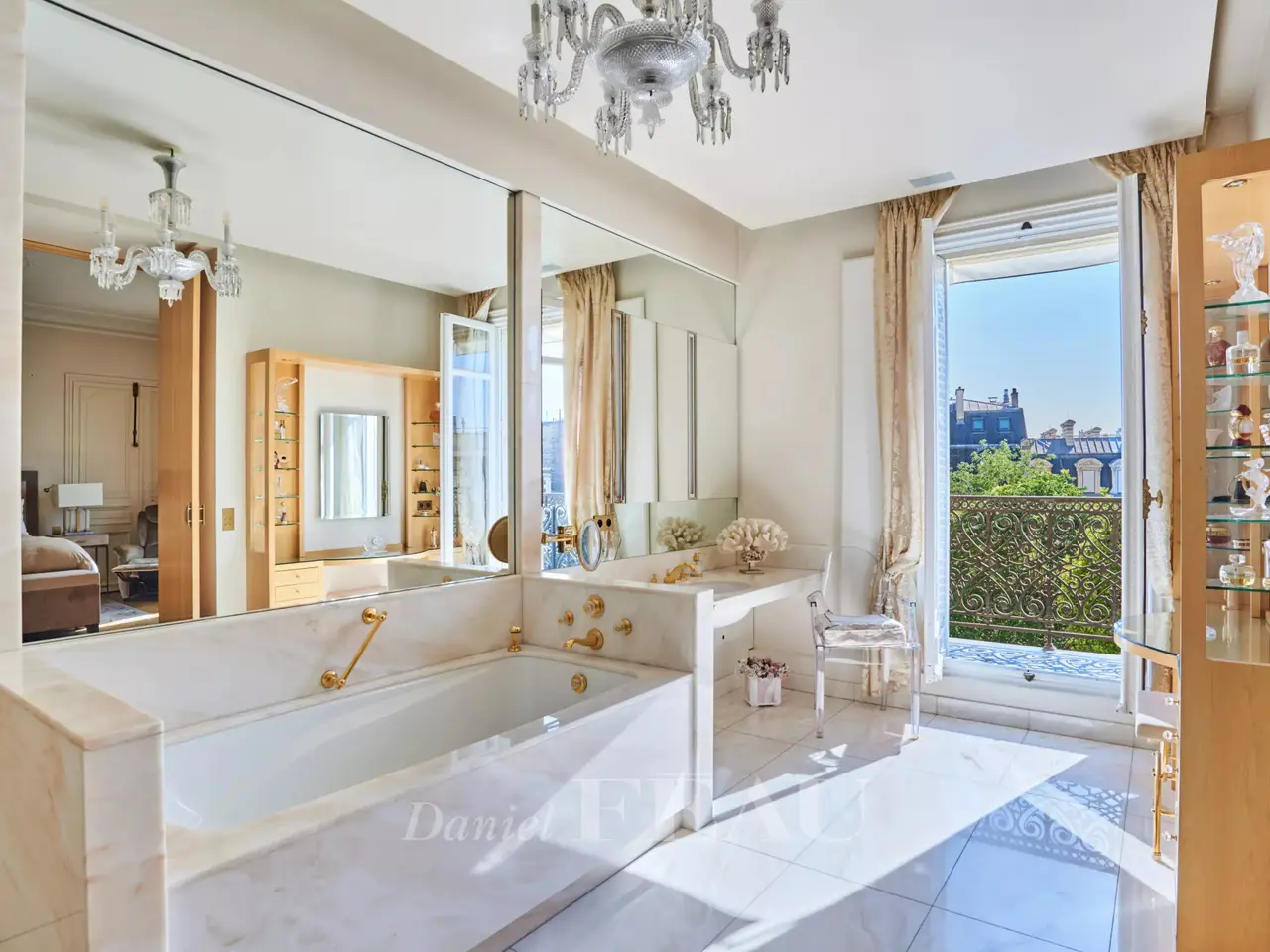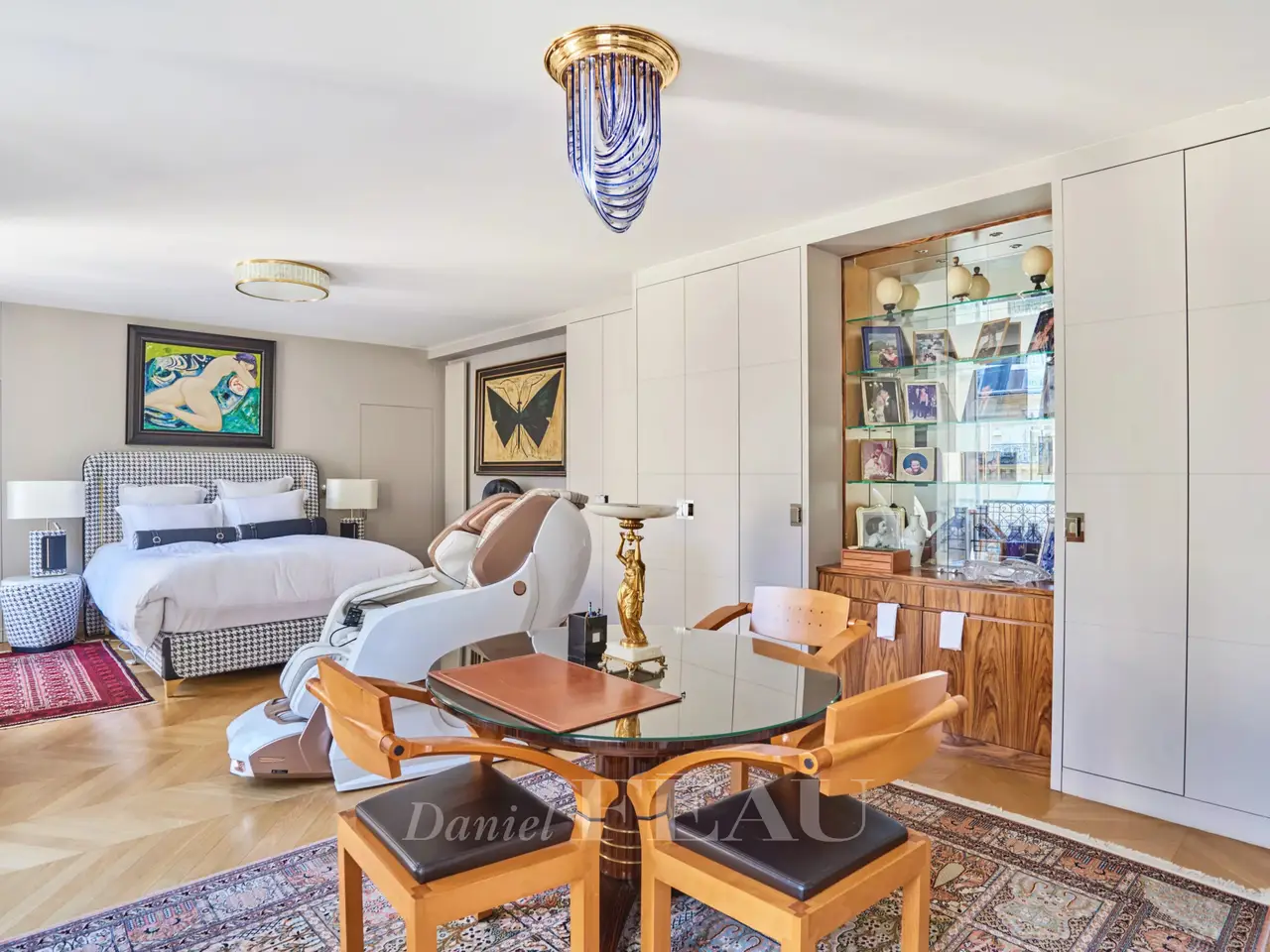 Saint Augustin neighbourhood, near the schools. This sunny corner apartment offering 315 sqm of living space in excellent condition is on the top two floors of a late 19th century freestone building with elegant common areas. Benefiting from a continuous balcony enjoying open views, it includes a 60 sqm double living/reception room, a 30 sqm dining room, a separate equipped kitchen, two spacious suites with bath/shower rooms and dressing rooms, a utility room and a little kitchen. A 4th bedroom would be possible. The main rooms are air conditioned. With a basement cellar and two maid’s bedrooms on the top floor.