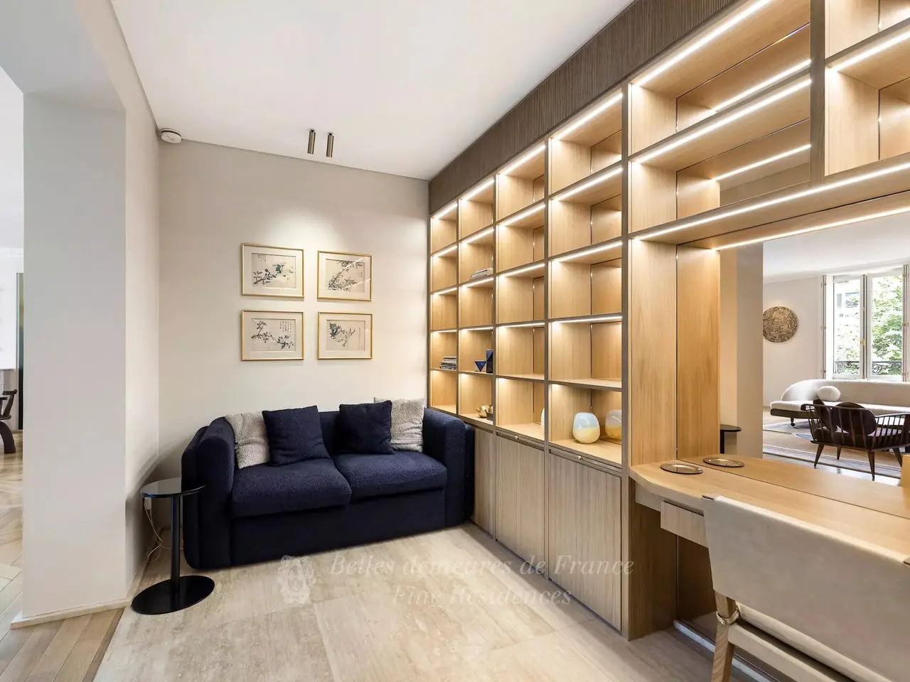In the heart of Avenue Montaigne, a prestigious apartment in a freestone building located on the 3rd floor featuring an entrance gallery opening into a spacious reception, a dining room, an equiped kitchen, one master suite with a dressing room and a private bathroom, two other en-suite bedrooms with their bathrooms and a study. Fully air-conditioned. 2 cellars. Staff room in addition to the price.