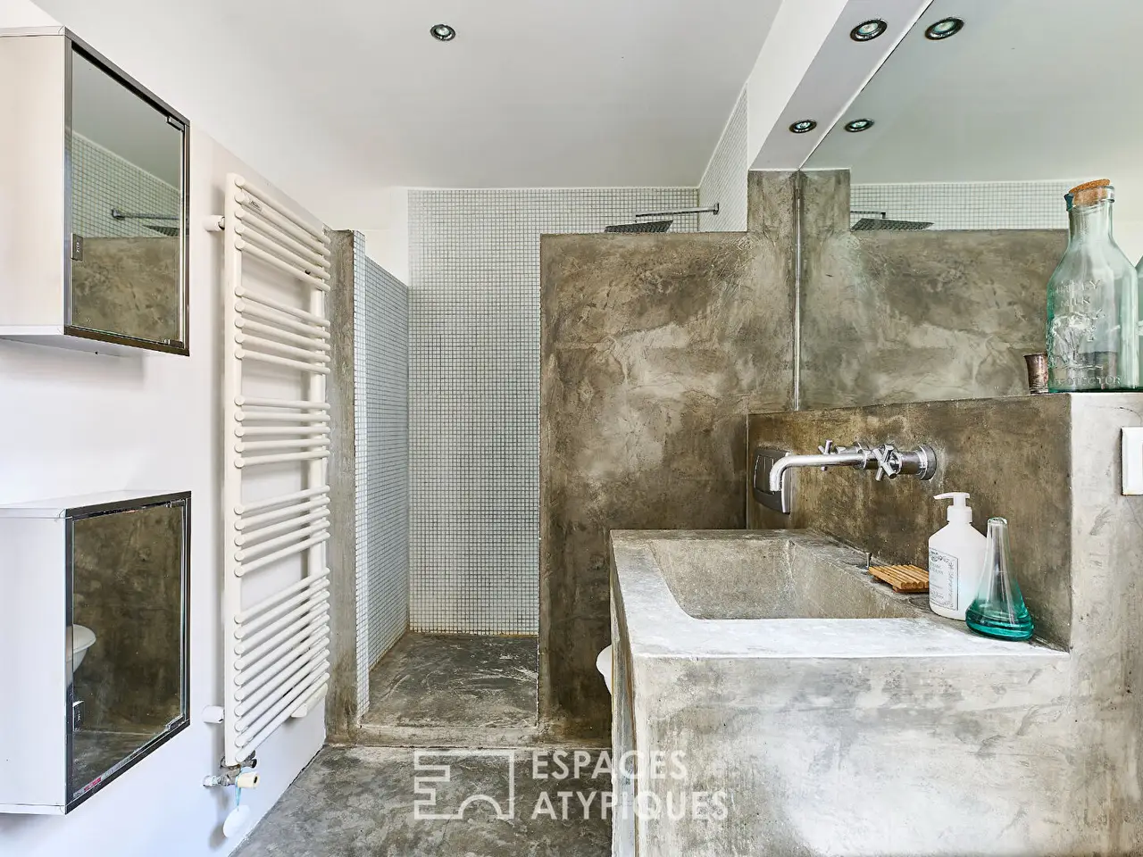 • Polished concrete bathroom