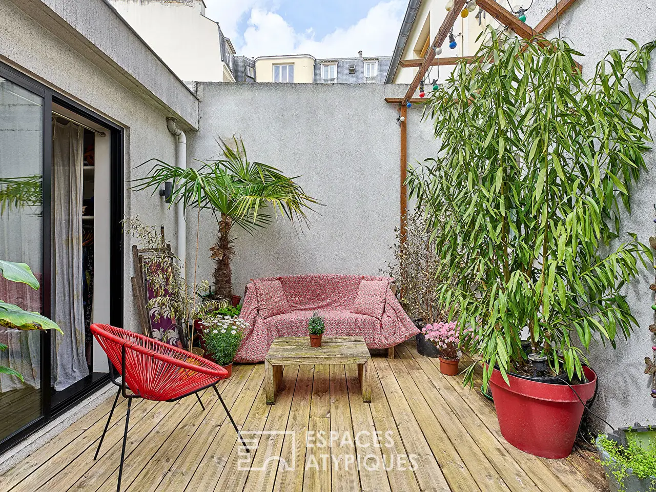 Within a very small co-ownership, this architect-designed loft with a house-style of 121.06 sqm (102.84 sqm Carrez law) offers an 18 sqm terrace. Benefiting from a double north-south exposure, it benefits from beautiful light throughout the day. The entrance reveals a generous 31 sqm living room, enhanced by a wood-burning stove, creating a warm atmosphere. In its extension, a 17 sqm eat-in kitchen invites conviviality and shared moments. Two staircases with a strong aesthetic, one spiral in metal and one straight in concrete, lead to the bedrooms and the terrace that connects them, bringing a contemporary and graphic dimension to the whole. The first bedroom, 18 sqm, has an elegant 4.5 sqm polished concrete bathroom with toilet. The second bedroom, measuring 14 sqm, has a separate bathroom on the lower level, accessible from the kitchen. This 16 sqm split-level apartment also includes a laundry room and plenty of storage space. A separate toilet completes the ground floor. Metro Porte de Saint-Ouen or Guy Moquet (Line 13)REF. 10687Additional information* 3 rooms* 2 bedrooms* 1 bathroom* 1 bathroom* 2 floors in the building* Outdoor spaces : 18.22 SQM* 4 co-ownership lots* Annual co-ownership fees : 1 916 €* Property tax : 1 199 €* Proceeding : NonEnergy Performance CertificateEPC : 156 kWhEP/m2.year* A 450GHG : 16 kgeqCO2/m2.year* A 80Agency feesThe fees include VAT and are payable by the vendor MediatorMediation Franchise-Consommateurswww.mediation-franchise.com29 Boulevard de Courcelles 75008 ParisInformation on the risks to which this property is exposed is available on the Geohazards website : www.georisques.gouv.fr