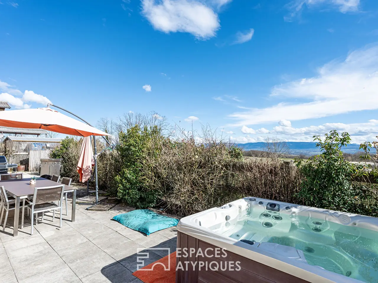 Let yourself be seduced by this exceptional property, a beautifully renovated farmhouse, where old-world charm blends harmoniously with contemporary comfort. An invitation to live in tune with nature, while benefiting from modern amenities that redefine the art of living.The main apartment, with a generous surface area of 200 sqm, reveals itself as a true family cocoon or a shared accommodation project with a warm and friendly atmosphere. With its spacious volumes, high ceilings, and noble materials, each room is bathed in light and promises unforgettable moments of sharing. The clever layout highlights the space and combines intimacy and conviviality.The 85 sqm living space, opening onto a fully equipped and furnished designer kitchen, extends into a living room where the fireplace brings warmth and conviviality, creating a perfect place to relax in winter.Upstairs, you'll discover three bedrooms, including a spacious master suite with a view of the Mont Blanc range.Outside, the 150 sqm terrace offers breathtaking views of the surrounding landscape, a perfect place to savor relaxing moments under the sun or to enjoy evenings with friends around the jacuzzi. The atmosphere is serene, conducive to relaxation and contemplation.The vast 150 sqm covered storage space, as well as the independent outbuilding, offer multiple layout possibilities, according to your needs or desires.This property is located in the heart of a preserved natural environment, nestled at the foot of the Jura mountains, just 10 minutes from the Swiss border. A true haven of peace, it is an ideal refuge for those seeking tranquility without sacrificing proximity to essential amenities. The surrounding green spaces, the soothing presence of the horses, and the bucolic landscape invite you to dream.All this, while being close to schools, shops, a golf course and health services, to offer an exceptional living environment. This rare property, where modern comfort blends perfectly with the natural beauty of its surroundings, embodies a unique art of living, between serenity and convenience.Estimated average annual energy expenditure for standard use, established from 2022 energy prices: between 3200 Euros and 3800 Euros.Information on the risks to which this property is exposed is available on the Georisques website for the areas concerned: www.georisques.gouv.fr.REF. 1924EAAdditional information* 4 rooms* 3 bedrooms* 1 bathroom* Outdoor space : 200 SQMEnergy Performance CertificatePrimary energy consumptiond : 141 kWh/m2.yearHigh performance housing*A*B*C*141kWh/m2.year41*kg CO2/m2.yearD*E*F*GExtremely poor housing performance* Of which greenhouse gas emissionsb : 41 kg CO2/m2.yearLow CO2 emissions*A*41kg CO2/m2.yearB*C*D*E*F*GVery high CO2 emissionsEstimated average amount of annual energy expenditure for standard use, established from energy prices for the year 2021 : between 3200 € and 3800 €Agency feesThe fees include VAT and are payable by the vendorMediatorMediation Franchise-Consommateurswww.mediation-franchise.com29 Boulevard de Courcelles 75008 ParisInformation on the risks to which this property is exposed is available on the Geohazards website : www.georisques.gouv.fr