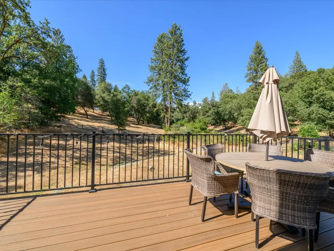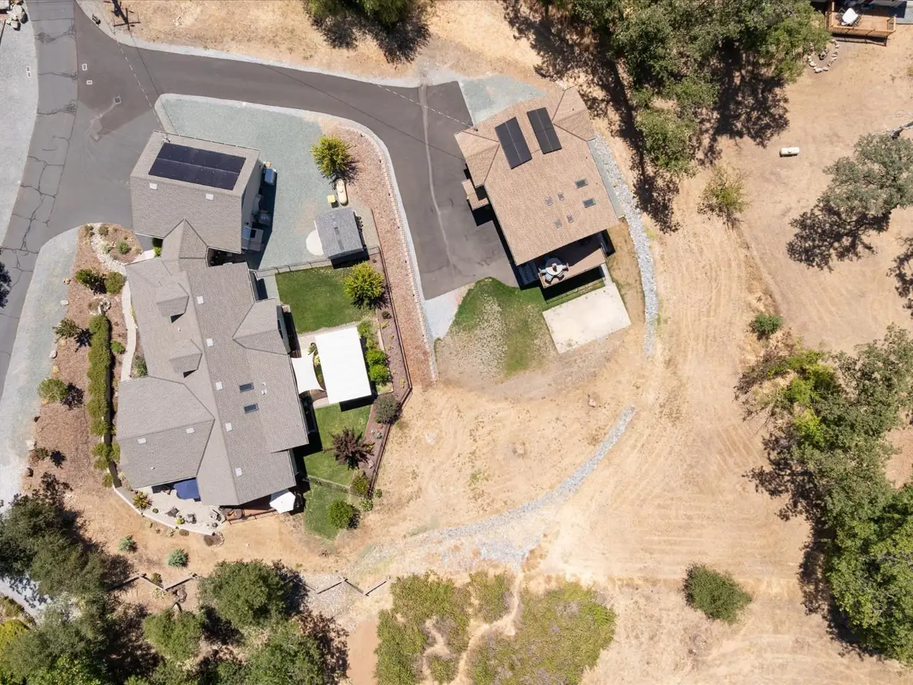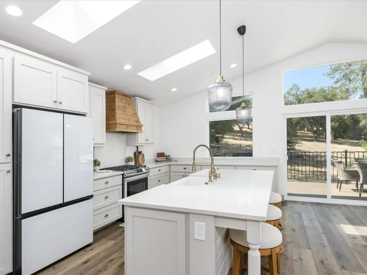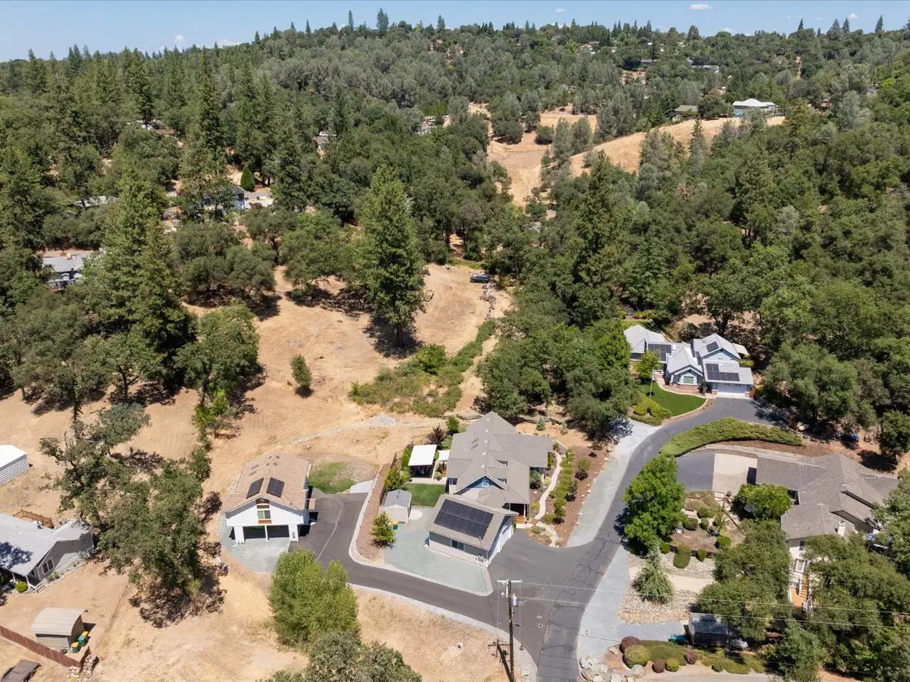 Luxury meets livability in this stunning 2022 custom built single-story home in Placerville's desirable Sleepy Hollow Ct. Set on nearly an acre, this elegant estate offers 3 beds, 2 baths, cathedral ceilings, and oversized windows that frame views of a seasonal stream. The chef's kitchen impresses with quartz counters, custom white cabinetry with stunning blue accents, stainless appliances, wine refrigerator and a large pantry. The private primary suite features a spa-like bath with soaking tub and oversized shower. Energy-efficient with approx. 5kW owned solar and a Generac generator! There's RV parking with 50 amp power & sewer hookup as well. The finished garage includes 9'x9' doors for taller vehicles. Enjoy outdoor living on the covered patio or expansive deck. The detached ADU offers exceptional quality with 2 beds, 1.5 baths, designer finishes, 3.8kW owned solar, mini-splits, an oversized 2-car garage, carport, and RV setup. With a total of approximately 3333 SF living space, that is only $330 a square foot! Minutes to town, yet feels like your own private retreat.