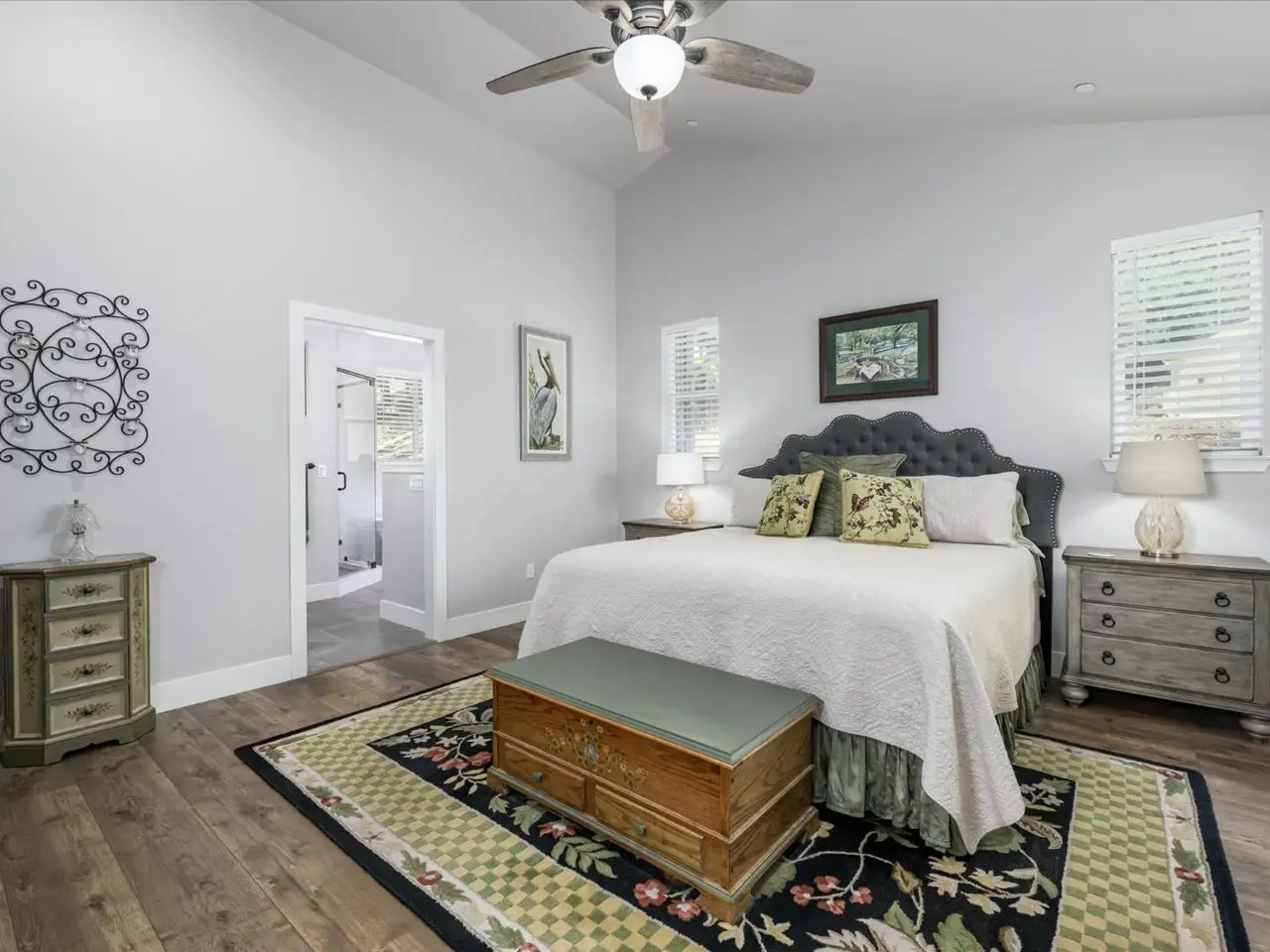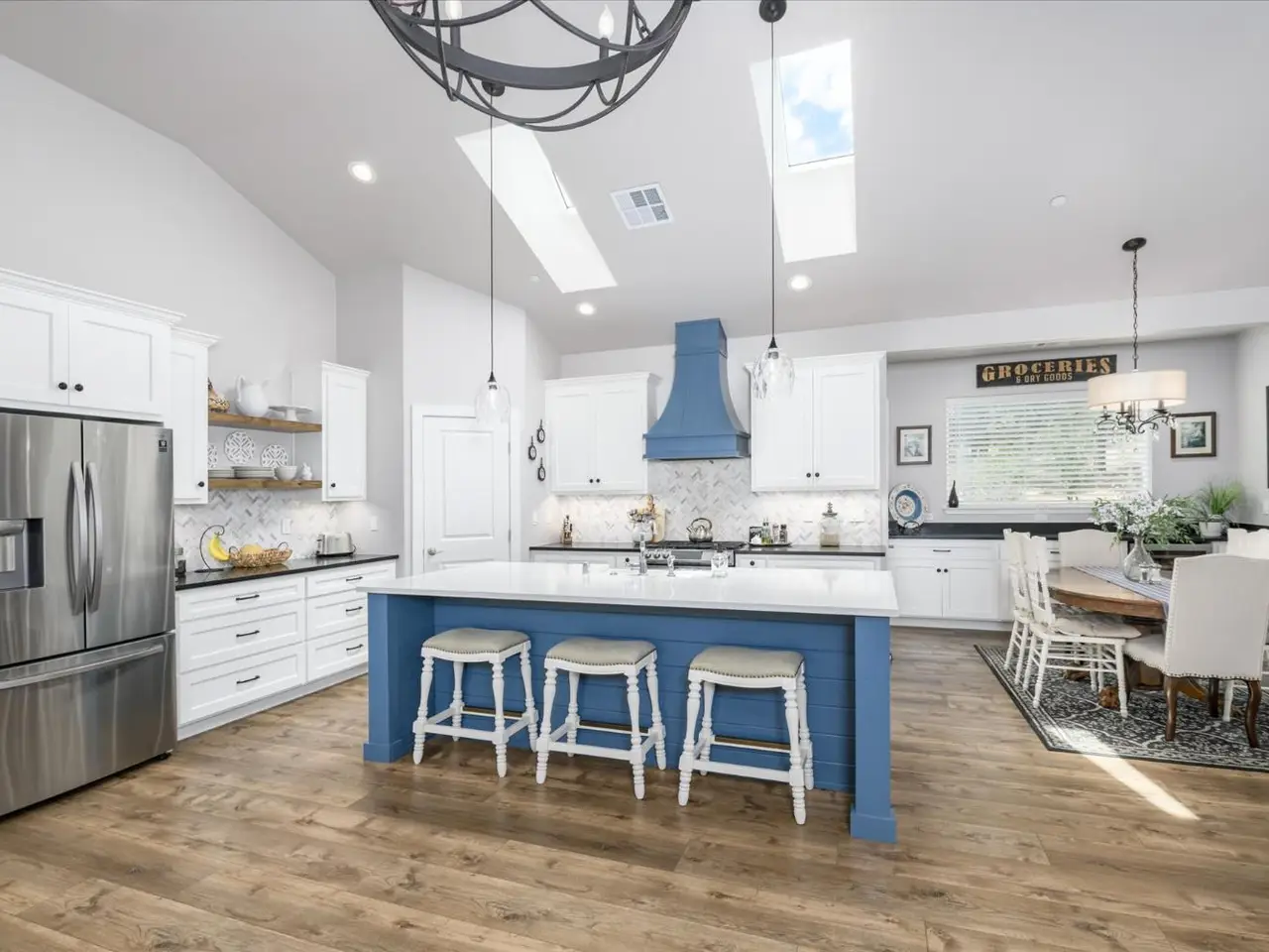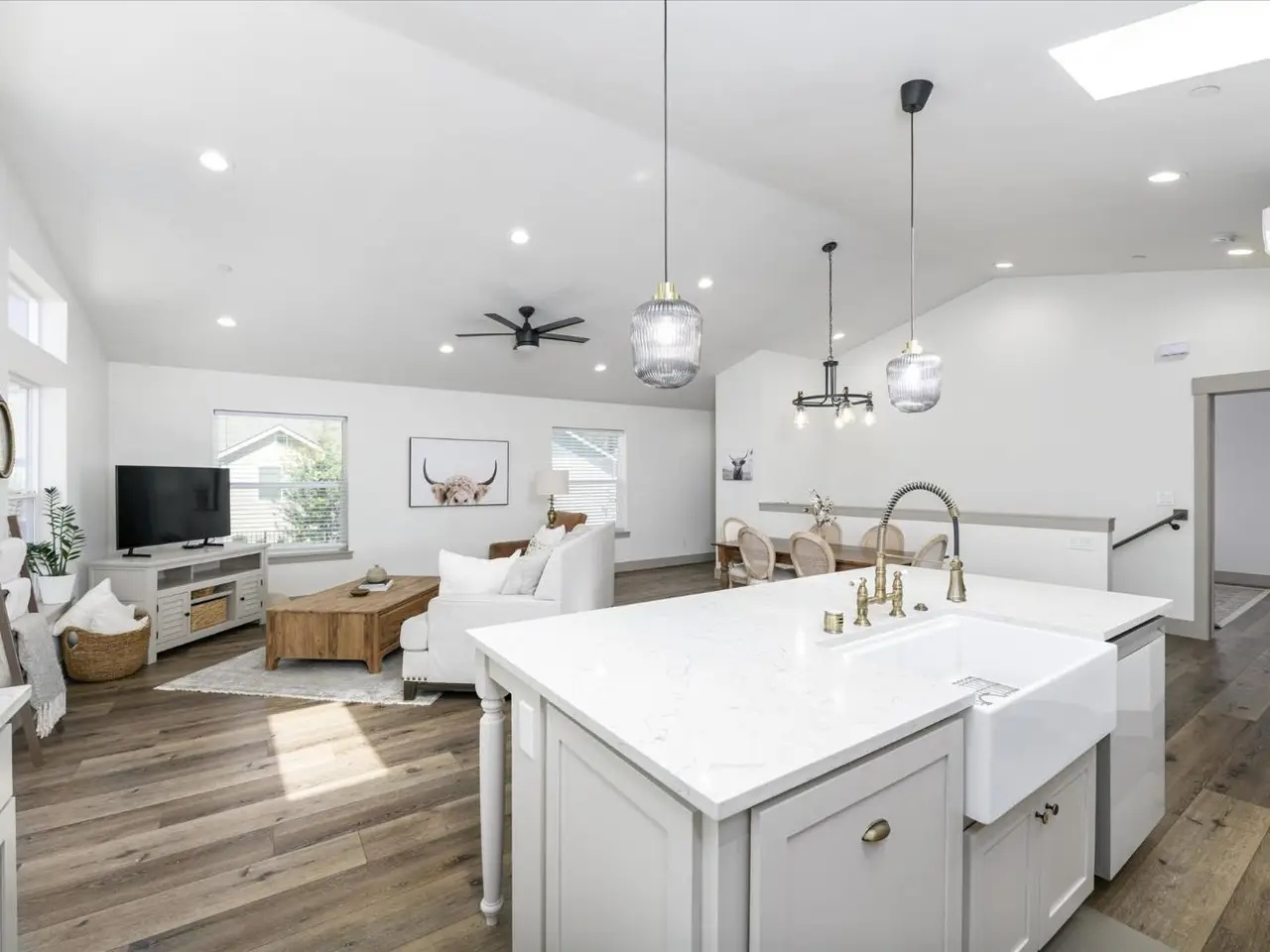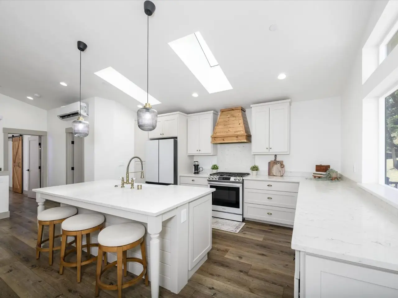 Luxury meets livability in this stunning 2022 custom built single-story home in Placerville's desirable Sleepy Hollow Ct. Set on nearly an acre, this elegant estate offers 3 beds, 2 baths, cathedral ceilings, and oversized windows that frame views of a seasonal stream. The chef's kitchen impresses with quartz counters, custom white cabinetry with stunning blue accents, stainless appliances, wine refrigerator and a large pantry. The private primary suite features a spa-like bath with soaking tub and oversized shower. Energy-efficient with approx. 5kW owned solar and a Generac generator! There's RV parking with 50 amp power & sewer hookup as well. The finished garage includes 9'x9' doors for taller vehicles. Enjoy outdoor living on the covered patio or expansive deck. The detached ADU offers exceptional quality with 2 beds, 1.5 baths, designer finishes, 3.8kW owned solar, mini-splits, an oversized 2-car garage, carport, and RV setup. With a total of approximately 3333 SF living space, that is only $330 a square foot! Minutes to town, yet feels like your own private retreat.