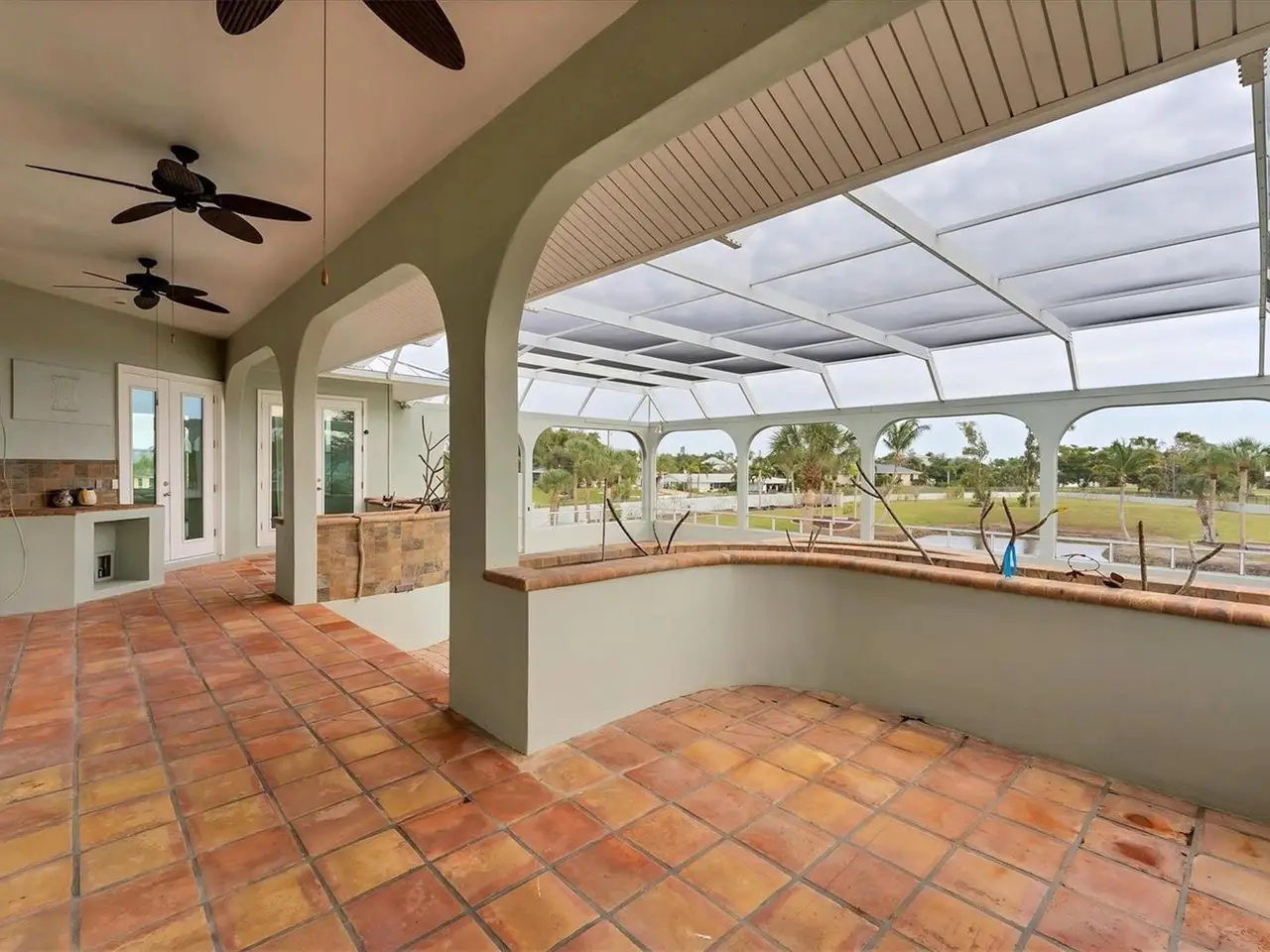 Incredibly rare gated compound in the historic Vanderbilt developed neighborhood of Cape Haze. Beautiful Mediterranean style home is across the street from the Intracoastal Waterway with sensational partial views and a brand new standing seam metal roof. The spectacular property grounds include about 1.76 acres, an expansive circular driveway, oversized three-bay garage, a private manicured lagoon with fountains, a gazebo/picnic area, 2,000 square foot screened lanai with an elevated pool and eight-person spa that affords views of the water, all surrounded by 1,500 feet of privacy wall. The grand interior features about 3,500 square feet, three bedrooms and bathrooms, private office/den, 22 foot ceilings, and a completely renovated kitchen with custom cabinetry. The acreage and zoning allows for a second home to be built or a portion to be subdivided. Much of Hurricane Ian repairs have been completed but there is some drywall, flooring, paint and trim work needed. Its a great situation for someone wanting to have a like-new home with their own custom design style and not have to wait more than two years for a new construction. The elegant neighborhood showcases tree-lined streets with towering banyans and large-acreage properties. A short walk to the Association kayak launch or quick boat trip to the 400 feet of private beach that's next to the Don Pedro State Park. Enjoy the ultimate coastal lifestyle being just minutes from Boca Grande, miles of pristine sandy beaches, three full service marinas, essential shopping, plentiful dining options, dozens of golf courses, and world-class fishing and boating.