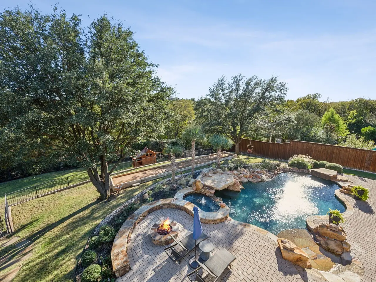• Outdoor oasis with saltwater pool, spa, and fireplace