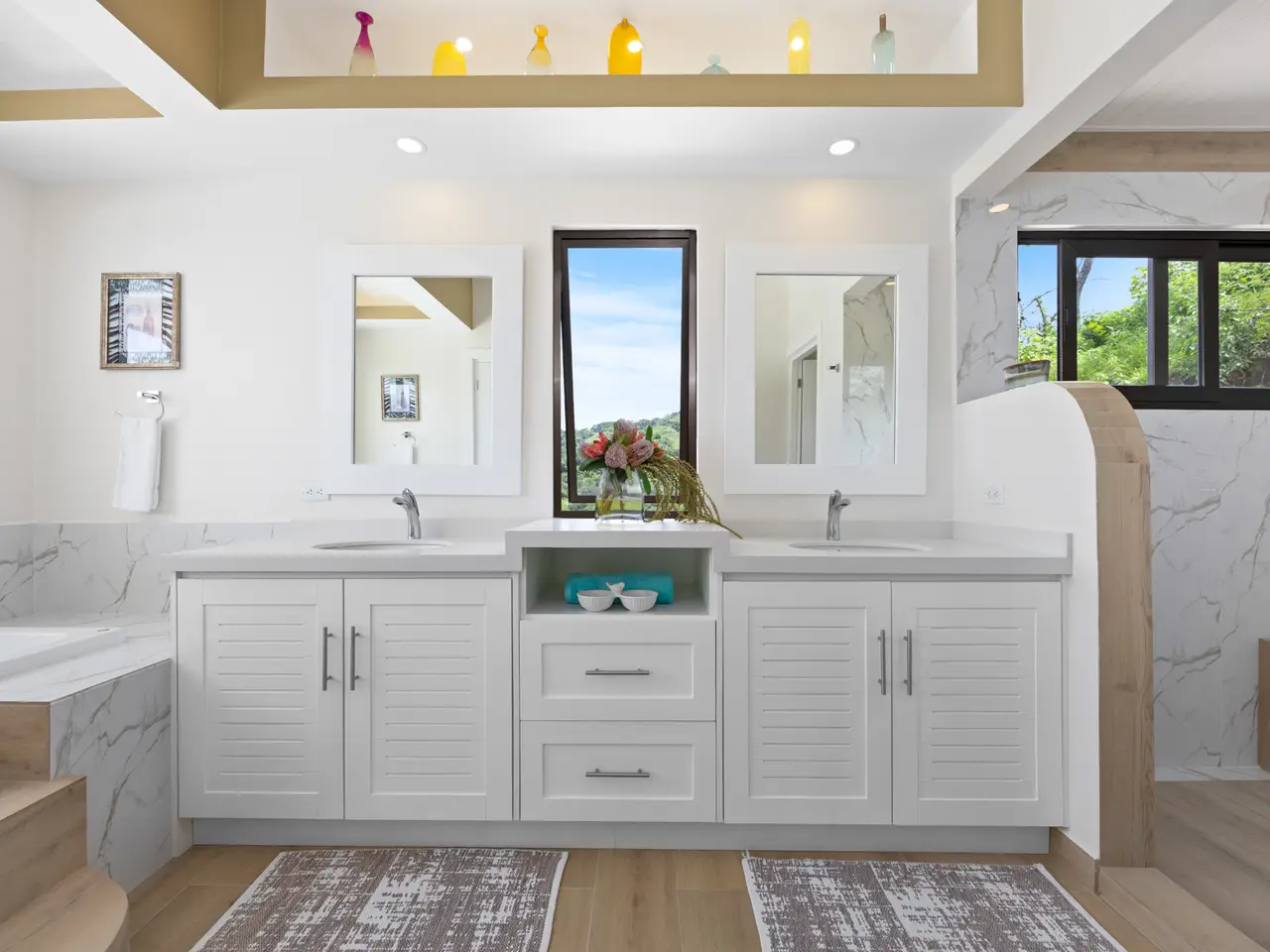 - Marble countertops and hardwood floors