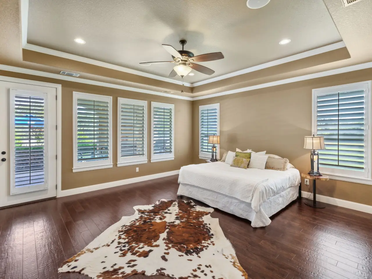 Luxury properties like this one don't become available very often, especially less than half an hour from downtown San Antonio. Welcome to your dream home nestled on 5 acres! This meticulously maintained paradise offers a single-story transitional custom home and a custom built workshop. The home features 3 bedrooms, 2 full bathrooms and 1 half bath, which has outdoor access to the sparkling pool and patio. Upon entry, you are greeted by a bright and open design with views of the pool through the seamless wall of windows. To the right is the home office/flex space with glass & wood French doors and views of the lushly landscaped front yard. As you enter into the living room, you are greeted with a wall of televisions for the ultimate entertainment experience, including surround sound speakers that extend to the primary bedroom and bath as well as the front and back patios: all controlled from the designated media closet. The fabulous open floorplan is perfect for entertaining family and friends. The gourmet island kitchen is a chef’s dream, complete with state-of-the-art JennAir appliances: 6 burner gas cook top, under counter microwave drawer, plus double wall ovens, dishwasher, and refrigerator in the open concept butler's kitchen and a walk-in pantry. The breakfast area offers plenty of space for casual dining or adding a more formal touch with the coffee/wine bar and mini wine refrigerator. The peaceful primary suite enjoys outside access to the patio and pool and features a stunning bath with his and her walk-in closets, dual vanities, oversized walk-in shower that includes a rain shower system with body jets, walk-in linen closet, and custom drawers with leather granite counters (this space is plumbed for a garden tub). The separate guest wing offers two additional bedrooms and a magnificent bathroom with oversized dual vanity space. The laundry room has a farm sink, separate utility closet and plenty of space for an additional refrigerator. The garage entry space welcomes you with a catch-all custom cabinetry, wall of hooks and a bench. The residence also features a generous oversized two-car garage with separate bays and additional storage space. The custom workshop is approximately 1,200 square feet, fully insulated and plumbed for bathroom, with single car garage door, attached carport: can equip two cars, RV, boat, or lawn equipment. The resort-style backyard is a serene oasis complete with gorgeous pool (built in late 2023), wood burning fireplace, and outdoor kitchen: Bull gas grill, sink and mini refrigerator. It's perfect for hosting and enjoying the evenings under the big Texas starlit sky. The property is professionally landscaped, including a sprinkler system that extends approximately 1 1/2 acres and drip irrigation for all the flower beds, filled with a variety of oak trees and highlighted by professional lighting. The property has its own water well, in addition to access to the co-op water supply system. It is secured by an automatic custom iron gate, surrounded by five-row barbwire fencing and overlayed with ranch fencing. With the convenience of being just a few minutes from both IH-37 and US Hwy 281 and less than 30 minutes to downtown San Antonio, this is your opportunity to make this exceptional property your home!