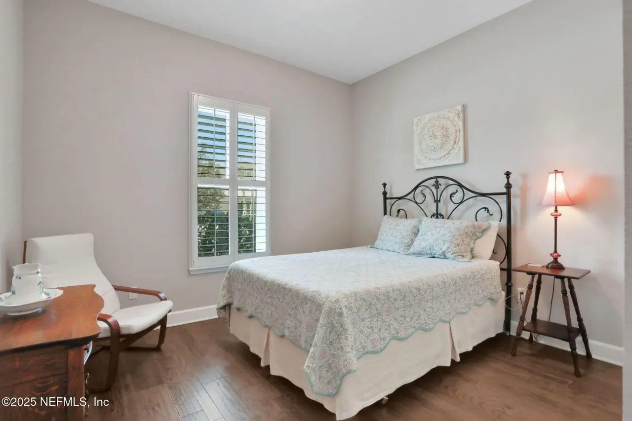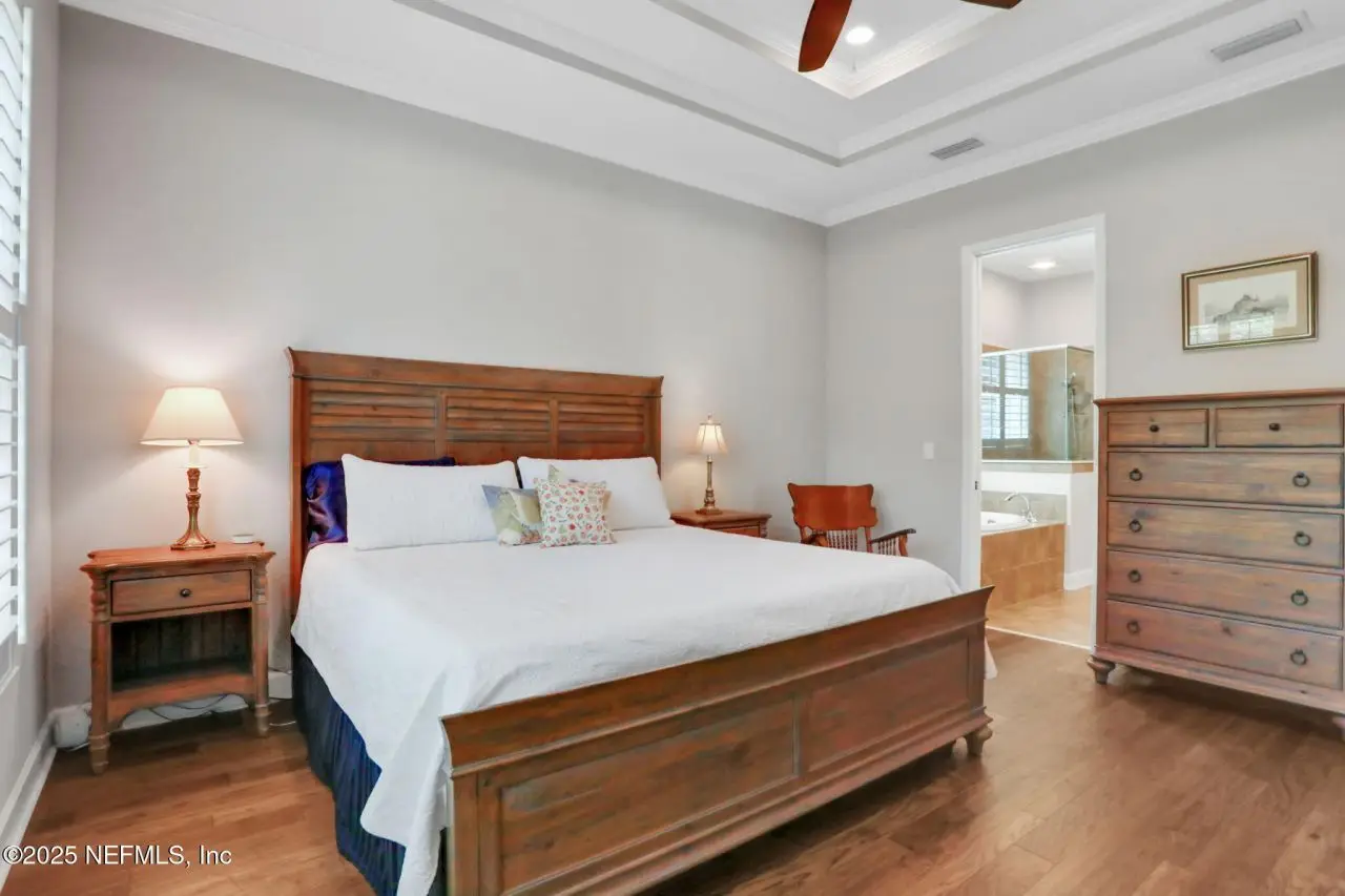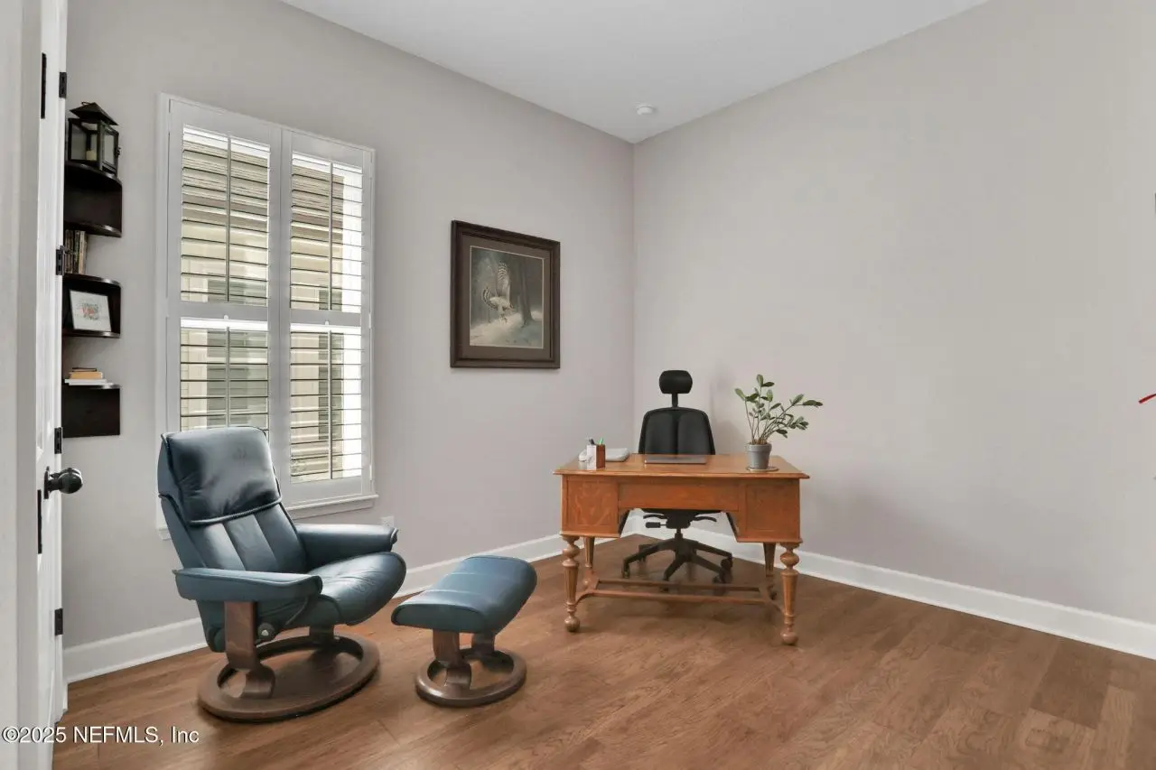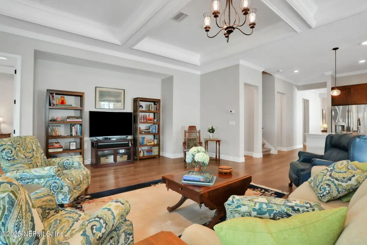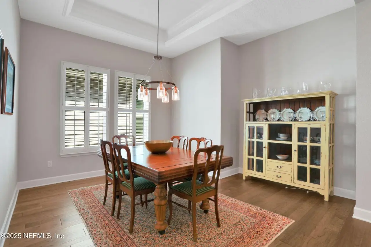 Welcome to your dream home in Twenty Mile of Nocatee, FL! This stunning two-story residence boasts 4 spacious bedrooms and 4 full bathrooms, offering ample space for family and guests. Home finishes include elegant wood flooring throughout the first floor, adding a touch of warmth and sophistication to your living spaces, crown molding and coffered ceiling in the spacious living room and tray ceilings in the formal dining room and primary suite. The primary suite offers both shower and separate soaking tub. Shutters and Roman shades complete the warm feeling of this home. The chef's kitchen features a gas cooktop with externally vented hood, island, stainless steel appliances and spacious pantry. On the second floor you will find an additional bedroom and bathroom, a private retreat for guests or an ideal home office setup. The scenic backyard with screened lanai has a view of the serene preserve, perfect for unwinding and enjoying nature's beauty.