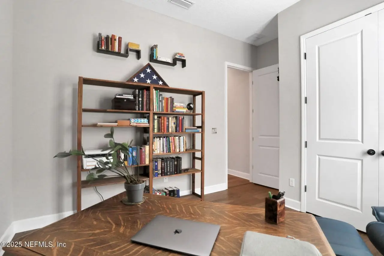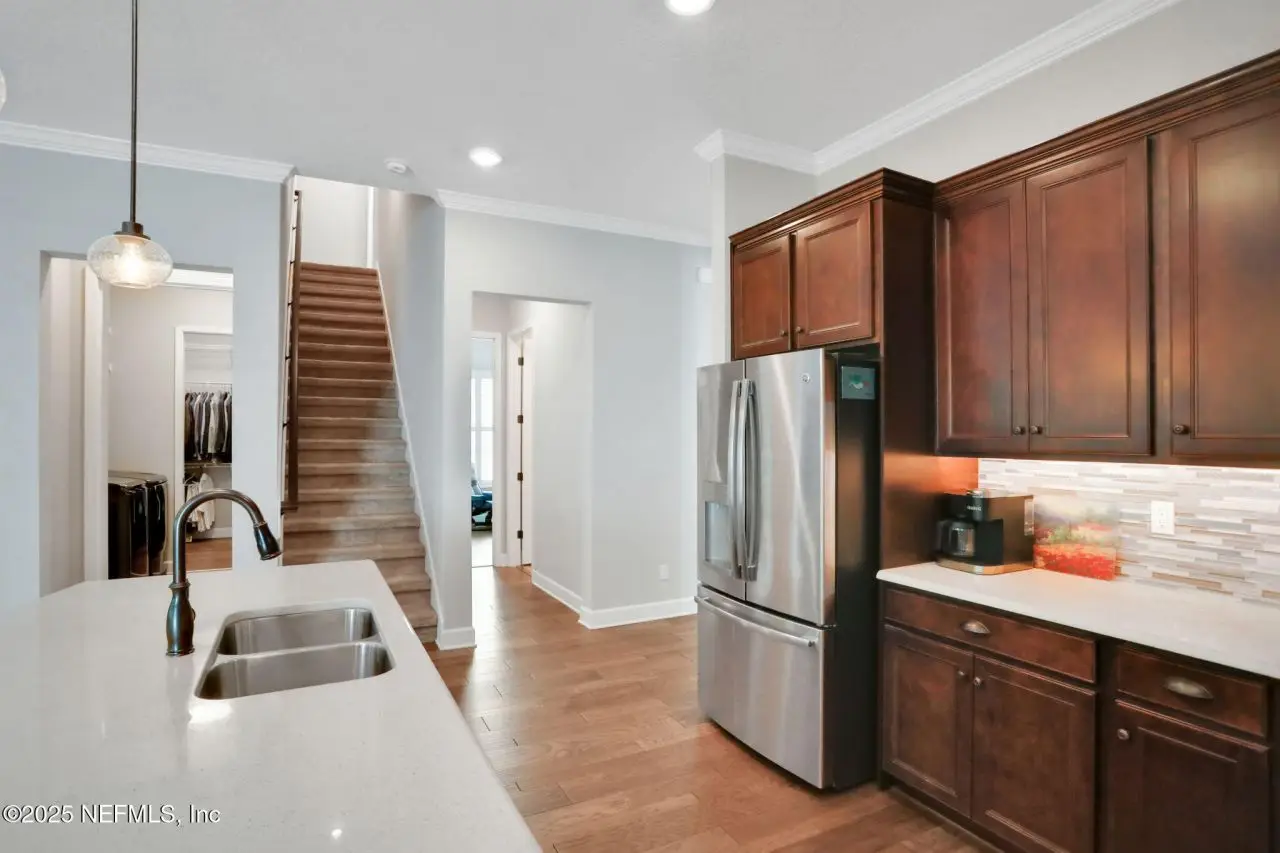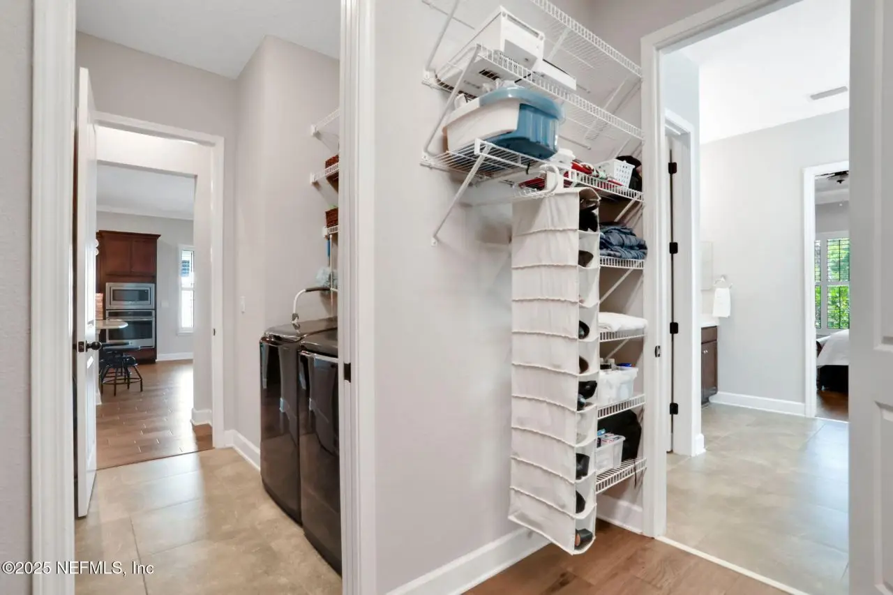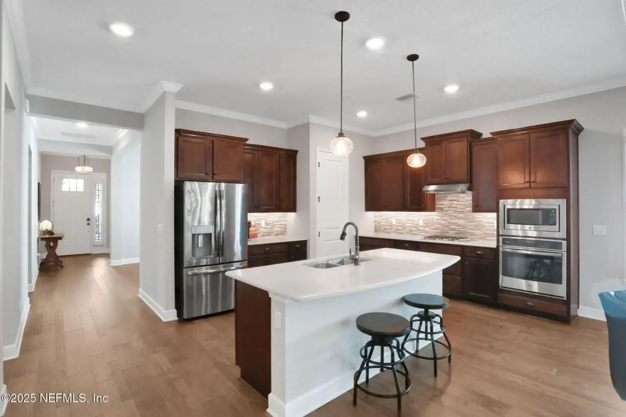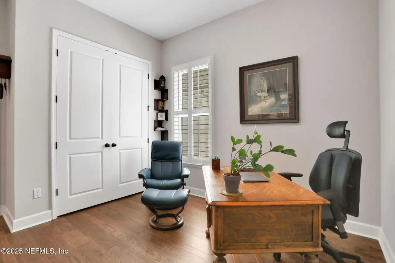 Welcome to your dream home in Twenty Mile of Nocatee, FL! This stunning two-story residence boasts 4 spacious bedrooms and 4 full bathrooms, offering ample space for family and guests. Home finishes include elegant wood flooring throughout the first floor, adding a touch of warmth and sophistication to your living spaces, crown molding and coffered ceiling in the spacious living room and tray ceilings in the formal dining room and primary suite. The primary suite offers both shower and separate soaking tub. Shutters and Roman shades complete the warm feeling of this home. The chef's kitchen features a gas cooktop with externally vented hood, island, stainless steel appliances and spacious pantry. On the second floor you will find an additional bedroom and bathroom, a private retreat for guests or an ideal home office setup. The scenic backyard with screened lanai has a view of the serene preserve, perfect for unwinding and enjoying nature's beauty.