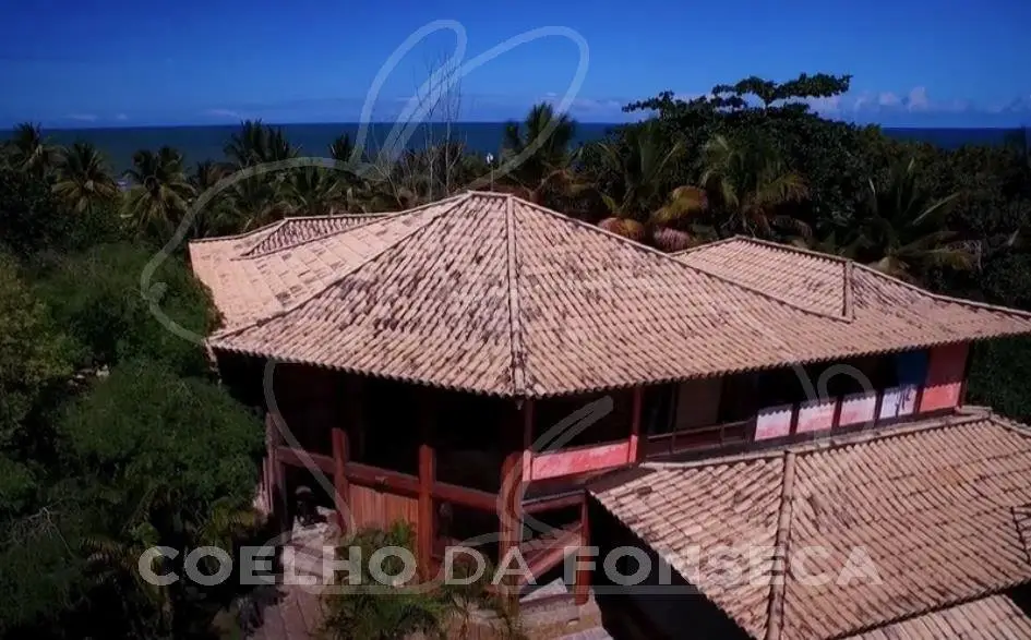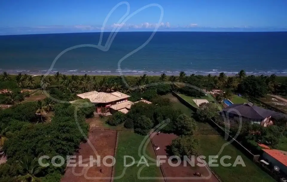 11. 304.05 m² of land, with 90 ml facing the beach, entrance hall, with access to the second floor. Living room with full view of the beach, through tempered glass wall. Balcony leading off the living room with access to the garden and kitchen. House in the Trancoso neighborhood with 1200m² built area, 5 bedroom(s), 5 suite(s), 2 parking space(s), 5 bathroom(s), swimming pool, beachfront, solar heater.
