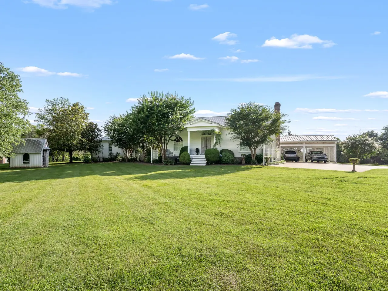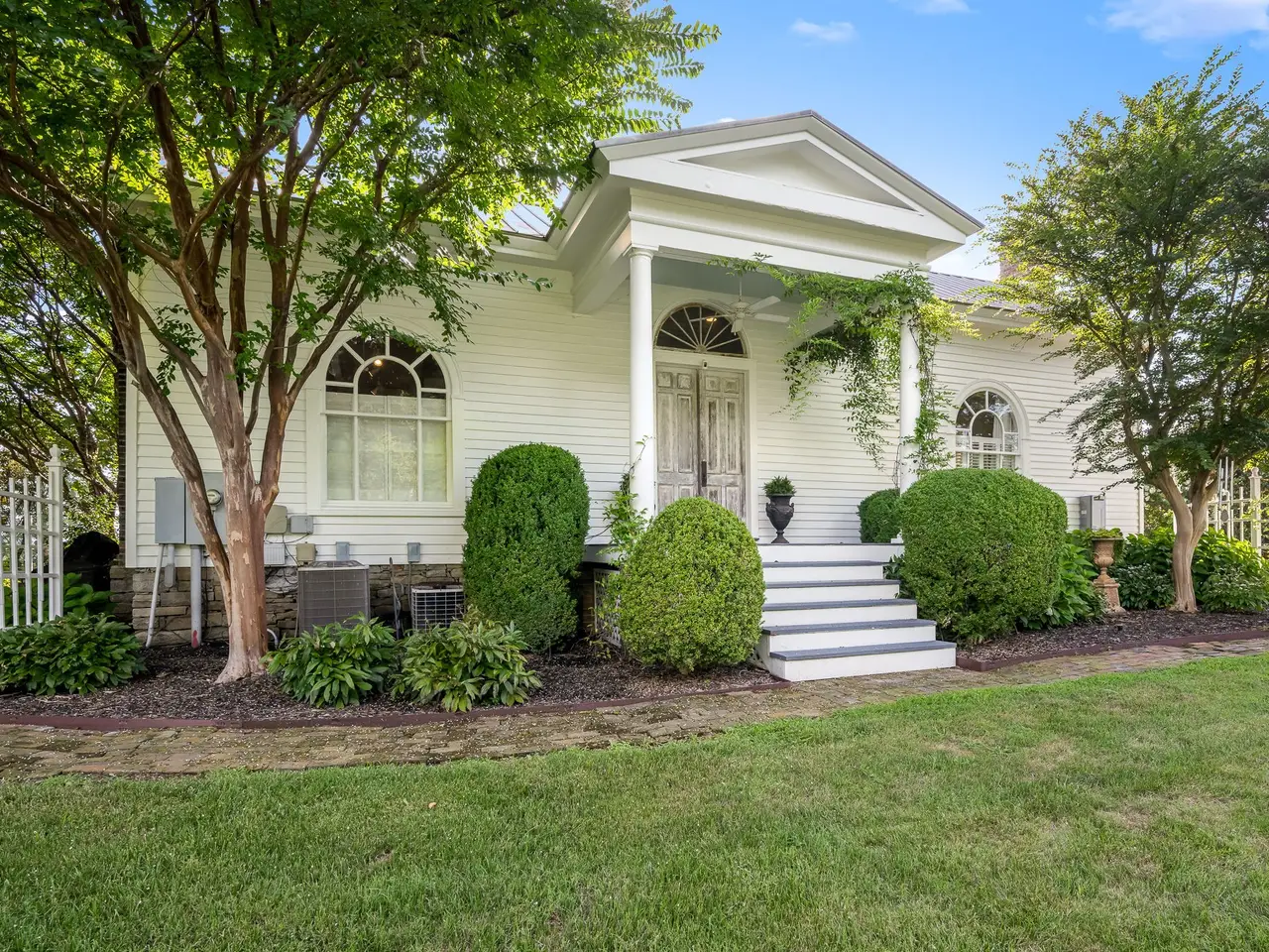Beautifully restored 1831 Greek Revival set gracefully on about 4.38 pristine acres. The exterior makes an unforgettable impression. Meticulously landscaped with lush greenary, beautiful hydrangeas, magnolia trees, and crepe myrtles enhance the exquisite setting. Exterior is made of Cypress Wood. Upon entering you will be greeted by a gracious and welcoming foyer. Original log home currently used as a cozy & warm den with fireplace & bedroom above. Fabulous dining hall with exquisite french doors, leading to stunning courtyard. Wonderful kitchen with large windows invite sunlight to shine through enhancing spacious airy ambiance. Large center island with delightful gourmet atmosphere. New 6 burner gas stove, marble counter tops & walk-in pantry. Primary suite featuring gas fireplace, custom closets, soaking tub, with separate