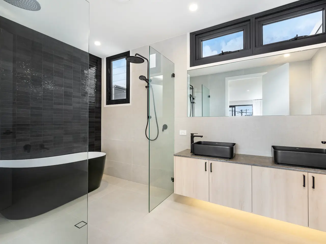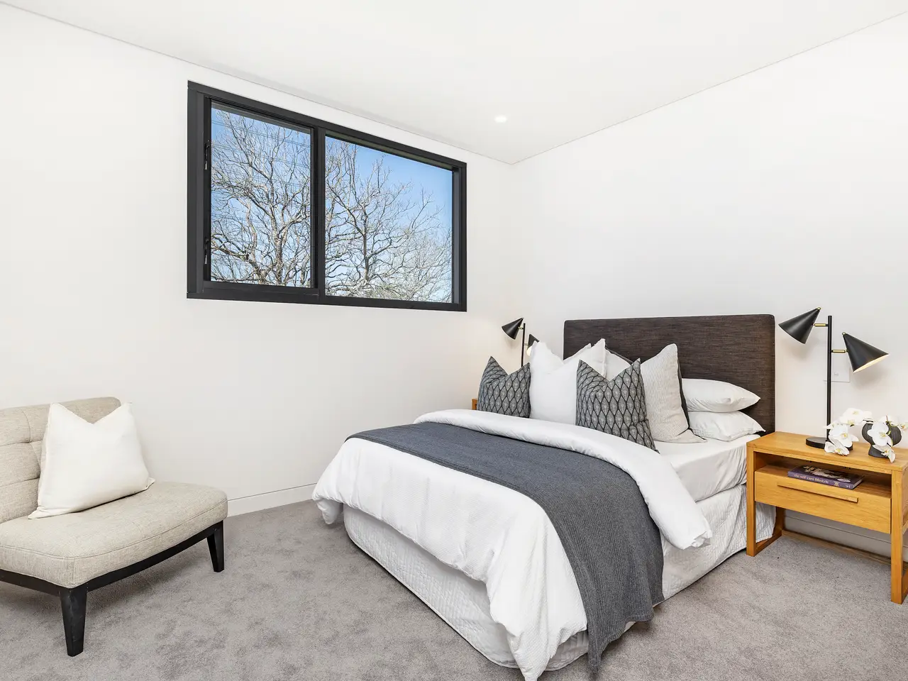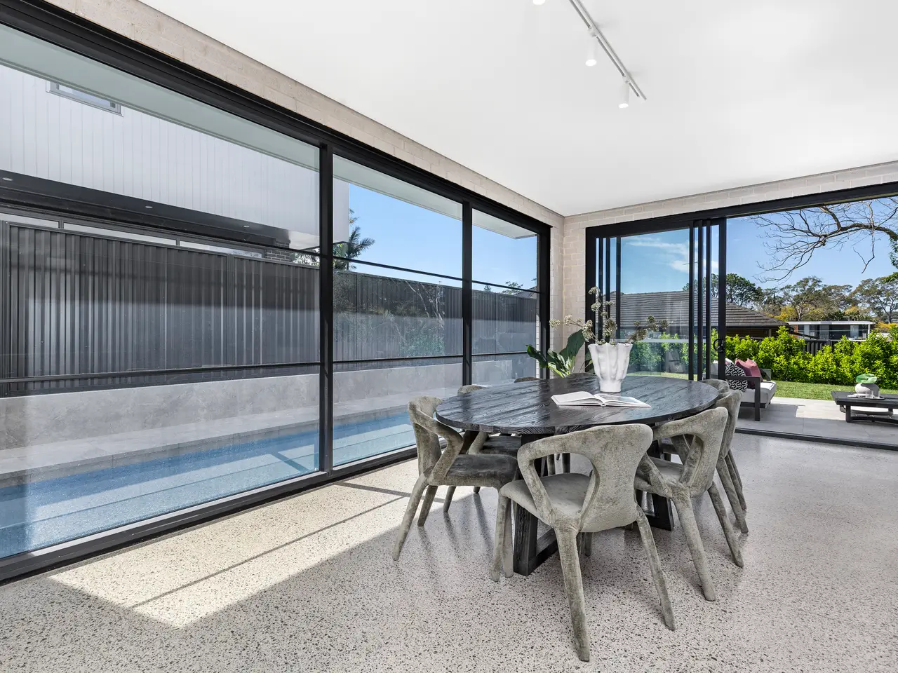 Towards the waterfront end of Regent Street, this brand new home offers approx. 341sqm internally of grandly scaled living and entertaining in a premium location. The home showcases solid master built construction featuring high ceilings and sleek architectural curvature with generous exposed brick, polished concrete and luxe stone finishes together creating a rich organic design palette. A home of exceptional quality, it delivers family lifestyle excellence and the convenience of easy access to river parklands, ferries and Putney village. – Soaring ceilings, bespoke cabinetry, double glazed windows throughout – Expansive entryway and open plan living space flowing to the alfresco – Island kitchen features all-Bosch appliances and full butler's pantry – Upstairs retreat opens to front balcony capturing views of the water – Five bedrooms include a versatile study/fifth bed on the ground floor – Master has an ensuite with bath, walk-in robe and front balcony access – Intercom/camera security, ducted air con, gas fireplace and rain tanks – Rear garden with terrace and salt pool, internal access double garage – Walking distance to Kissing Point ferries, zoned Putney Public School