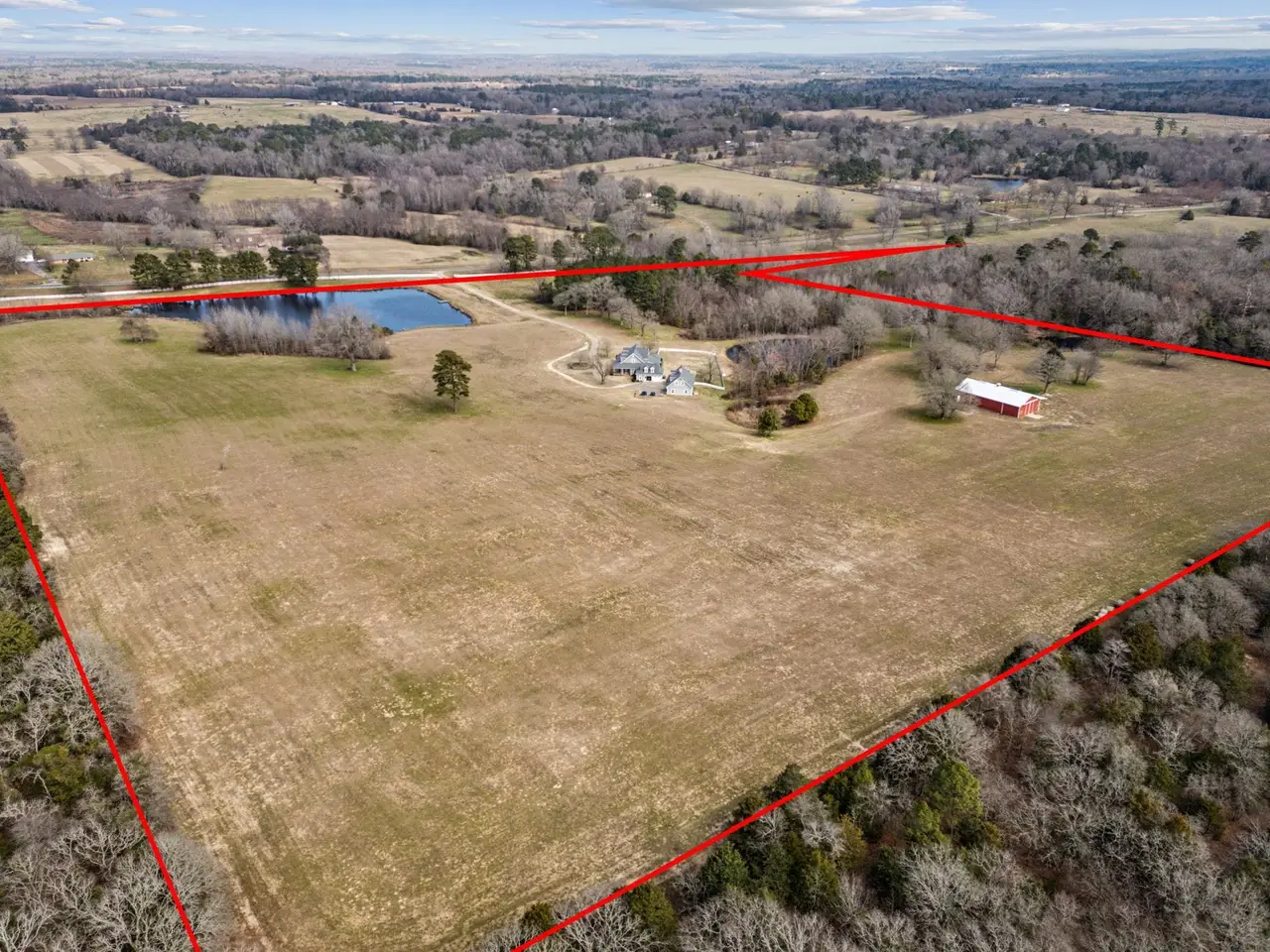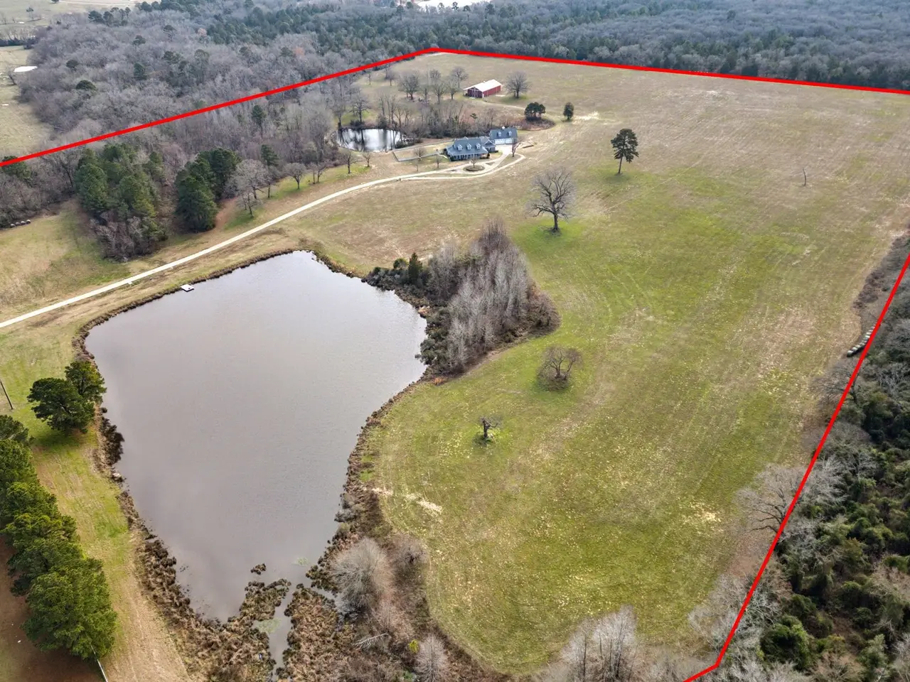 Welcome to Happy Trails Ranch in Quitman, Texas. A luxurious 50 acre estate that has breathtaking views of nature and East Texas wildlife. 3 private stocked ponds with live water and rolling sandy loam terrain. Towering oak and pine trees line the property making it very secluded and private. Impeccably built and extensively renovated with high end designer finishes, this property has all the bells and whistles. Multiple living areas, high ceilings, screened in porch and so much more. Gourmet Subzero and Wolf kitchen with ample storage and open to living areas is perfect for getting together with family and friends. Marble countertops, custom cabinetry, and high end luxury finishes. Flowing floor plan and open living areas with a stunning primary suite and a guest bedroom on the first floor. Additional 4 car garage built in 2019 has a 543 sqft guest suite. 3500 sqft insulated barn built in 2019. Ag exempt. This property has it all! Call listing agent Melissa Oates for video links. Seller financing available!