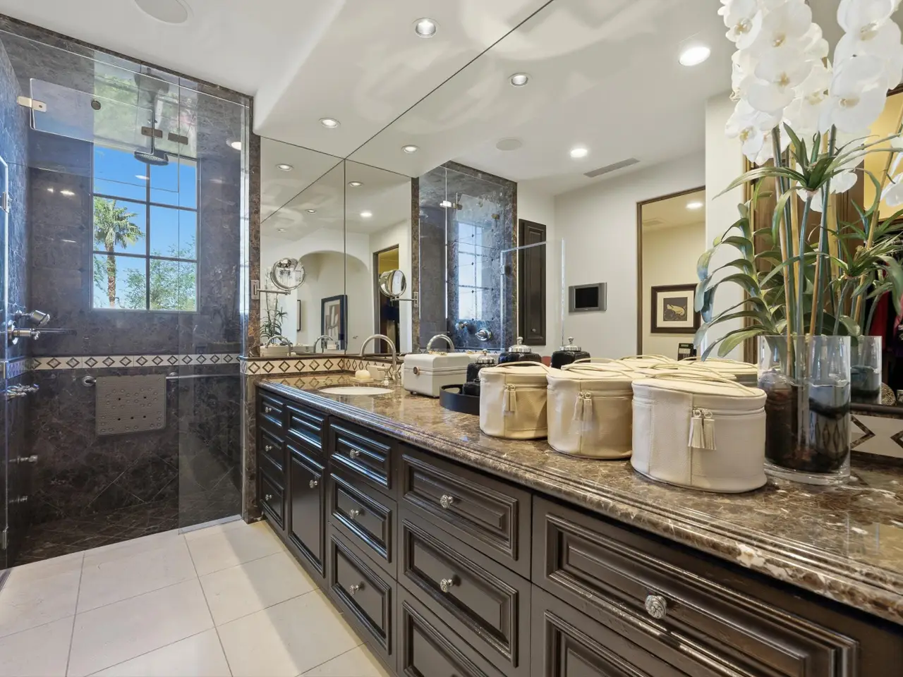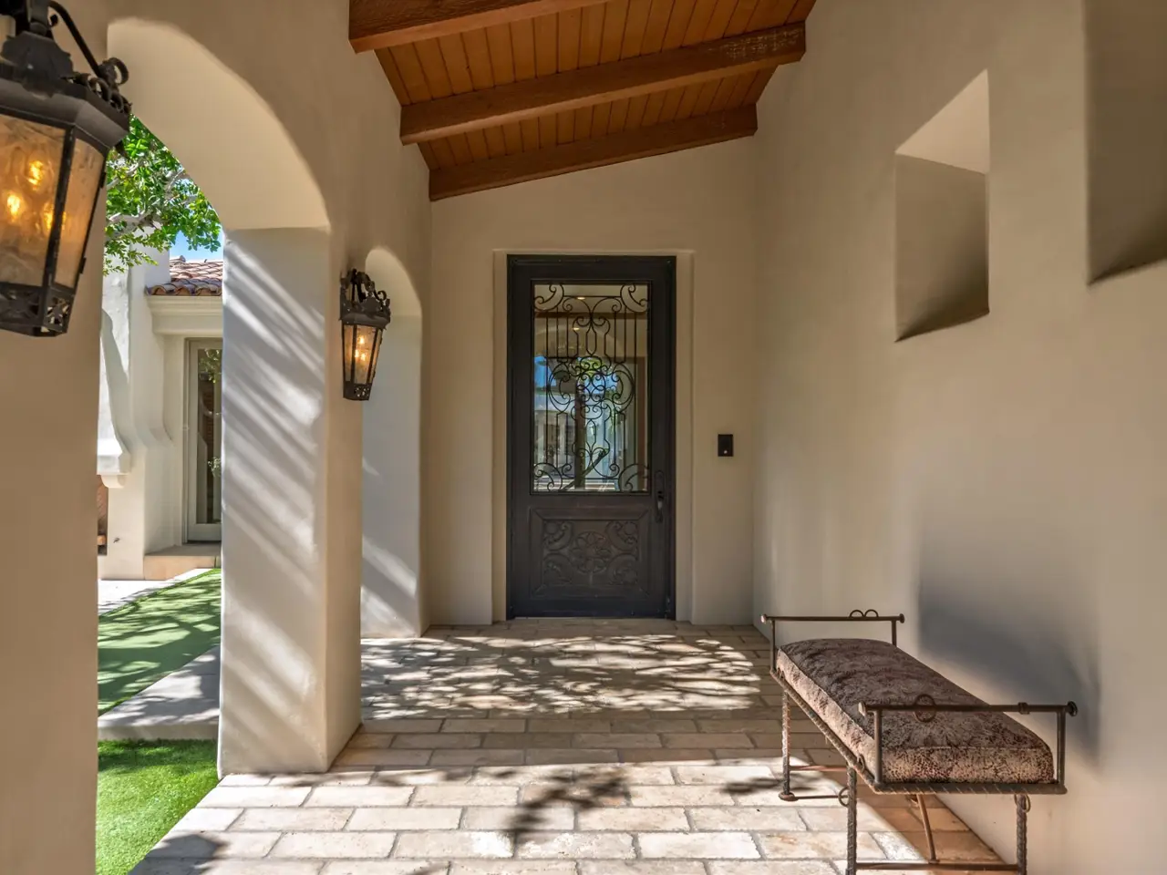This quality built, old world designed masterpiece is one of the most substantial homes at Mirada! Set on .80-acre lot with commanding down valley, night-light and mountain views, with a luxury resort atmosphere. This 6,800 square foot residence consists of 5 bedrooms, a dual built-in office, a theater & an exercise room. The entry Courtyard features a fountain & a fireplace seating area. The massive iron entry door leads to an impressive foyer and on to a Grand Living Room with high open beam ceilings & massive fireplace. An incredible gourmet cook's kitchen with the best of all appliances, granite countertops & custom cabinets adjoins a spacious family room and breakfast nook. The formal dining room includes a wine room and views out to the courtyard. The Primary Bedroom Suite enjoys mountain views, fireplace and two bathrooms. There's a 2 Bedroom Casita with Sitting Room that opens to the pool area. Incredible outdoor living area and dining area that share a fireplace and overlook the resort style pool & spa. Residents of Mirada Estates enjoy exclusive privileges at the adjacent Ritz-Carlton Rancho Mirage, including dining, world-class spa, fitness facilities and special rates for guests.