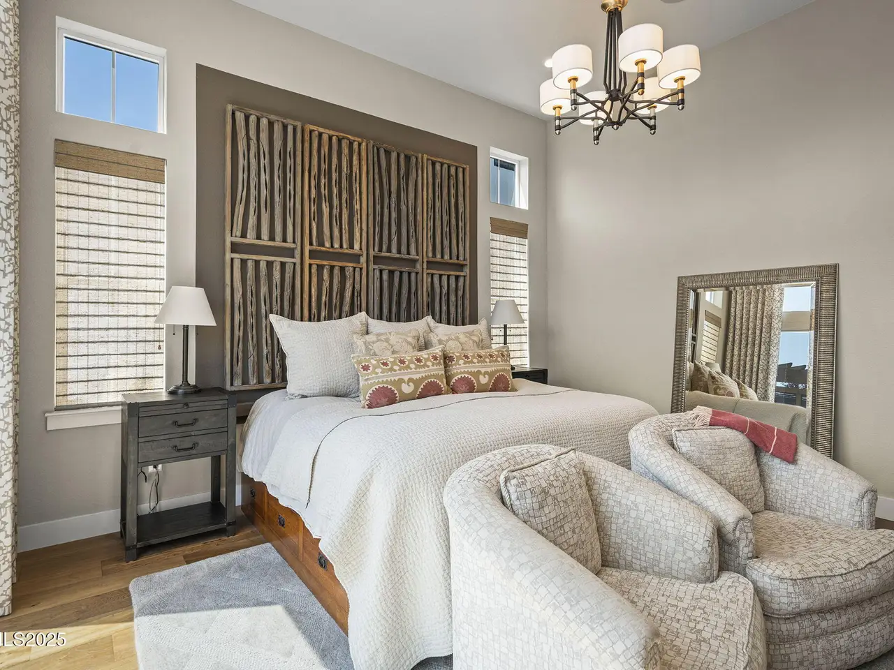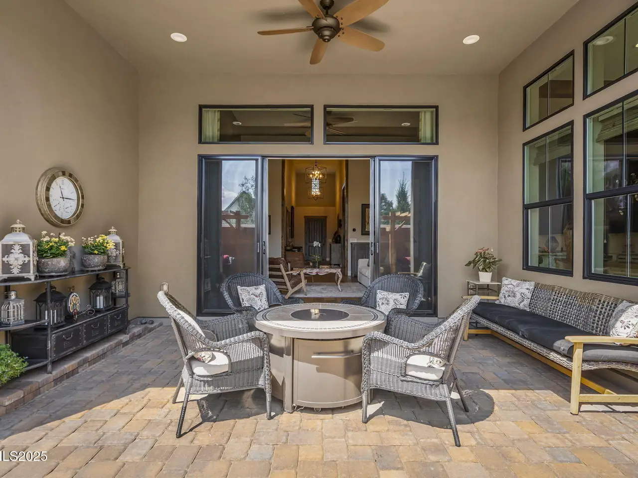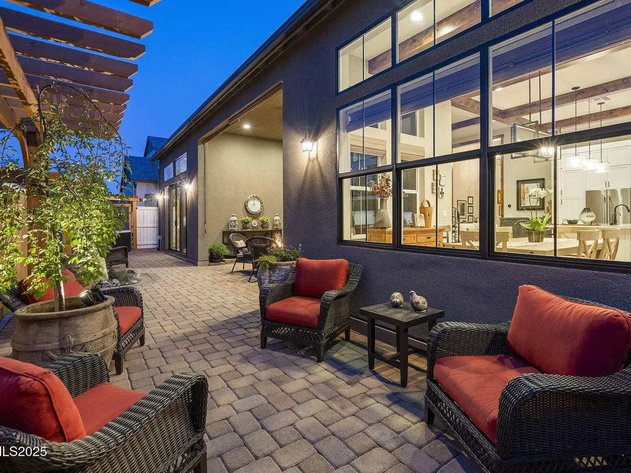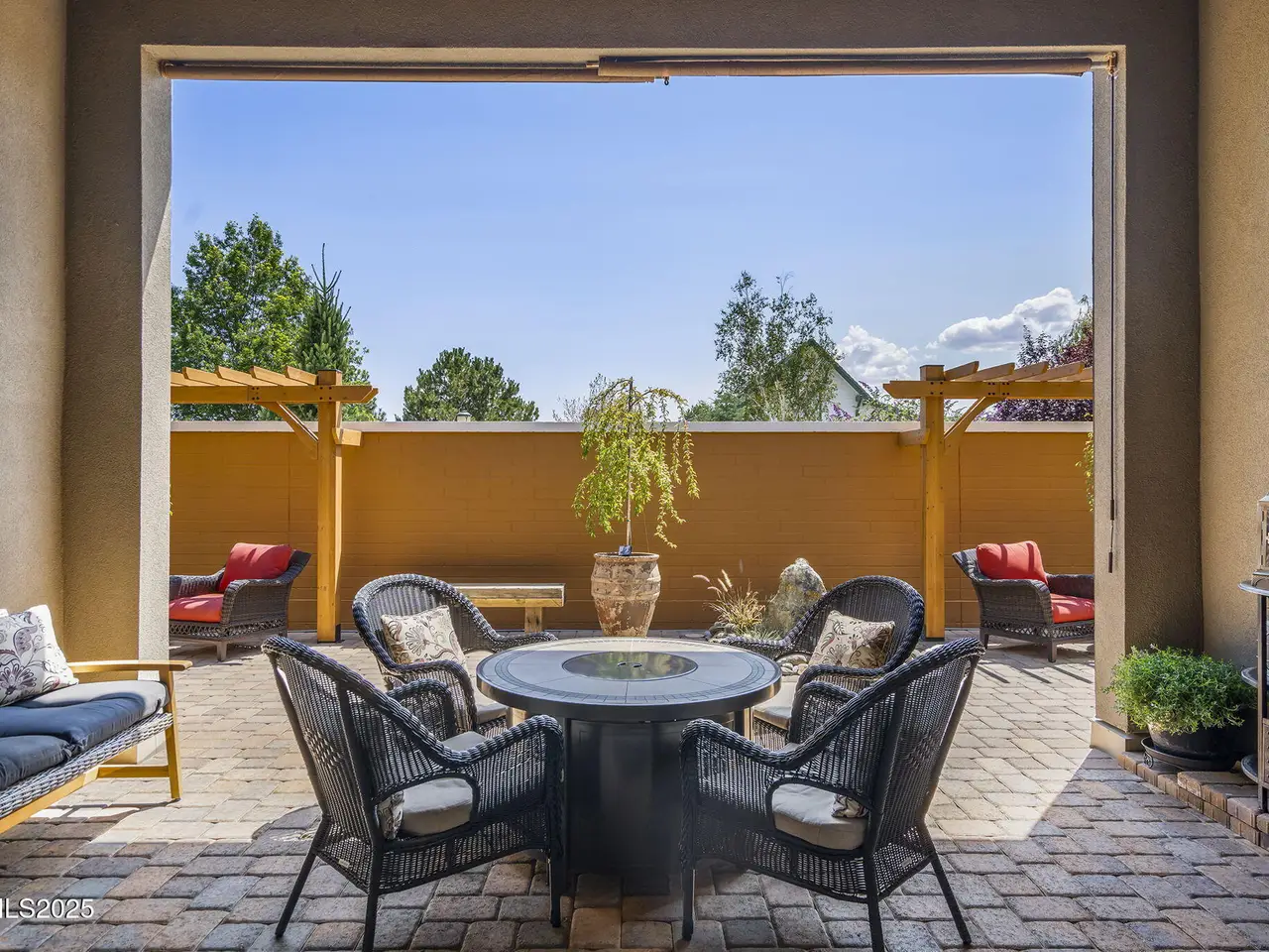 Welcome to 6122 S Pleasant Oak Trail, a one-of-a-kind, single-level residence located in the highly coveted gated community of Rancharrah in Reno, Nevada. Thoughtfully designed and extensively upgraded, this exquisite 3-bedroom, 3.5-bathroom home—with a nearly 300 sq ft multi-generational suite addition—offers 2,828 sq ft of sophisticated living space. As the largest single-story model in the Rancharrah development, it blends timeless style with today's most sought-after design elements and premium enhancements. Set on a beautifully landscaped and private lot with no rear neighbor, the home greets you with exceptional curb appeal and a peaceful, upscale ambiance. Inside, soaring ceilings and wide-plank oak flooring throughout set the stage for refined living. Custom ceiling beams, 5-inch baseboards, and designer door wraps add architectural interest, while expansive windows and a 12-foot sliding glass door flood the space with natural light and frame views of the serene backyard. At the heart of the home, the gourmet kitchen impresses with upgraded cabinetry, quartz countertops, a farm sink, instant hot water, under-cabinet outlets, and soft-close drawers—perfectly designed for both entertaining and everyday ease. A standout feature of this residence is the private multi-generational suite, offering nearly 300 square feet of flexible space with its own entrance, sink, counter, and refrigerator—ideal for extended family, guests, or a home office retreat. The luxurious primary suite is a true sanctuary, with direct access to the backyard spa, blackout window coverings, a custom California Closet system, and a stunning en-suite bathroom featuring a roll-in shower and floor-to-ceiling designer tile. All bathrooms throughout the home have been upgraded with premium tile, mirrors, and cabinetry, and the powder room showcases a striking handcrafted wood wall treatment. A dedicated office or den enclosed with sliding glass doors offers a quiet, stylish workspace. The laundry room is equally well-appointed, featuring upper and lower cabinetry, built-in desk space, and integrated storage. The garage includes epoxy flooring, full insulation, and custom cabinetry to keep everything organized and out of sight. Step outside to your private outdoor oasis, complete with mature landscaping, a calming water feature, paver pathways, and an above-ground spa—all framed by a rare, unobstructed view with no home behind. Additional features include a Heat 'n Glo fireplace in the living area, whole-home water softener and purification system, window treatments and drapes with UV coating, and all-oak and tile flooring throughout. Beyond the home, residents enjoy access to unmatched amenities at The Club at Rancharrah, including a full-service restaurant, spa, pool, state-of-the-art fitness center, bocce and pickleball courts, and a variety of fitness and lifestyle classes. The property is also within walking distance to the Village at Rancharrah, featuring boutique shopping and fine dining, and just minutes from Bartley Ranch Park and scenic walking trails. This is more than a home—it's a lifestyle. Don't miss this rare opportunity to own a premier residence in one of Reno's most prestigious communities.