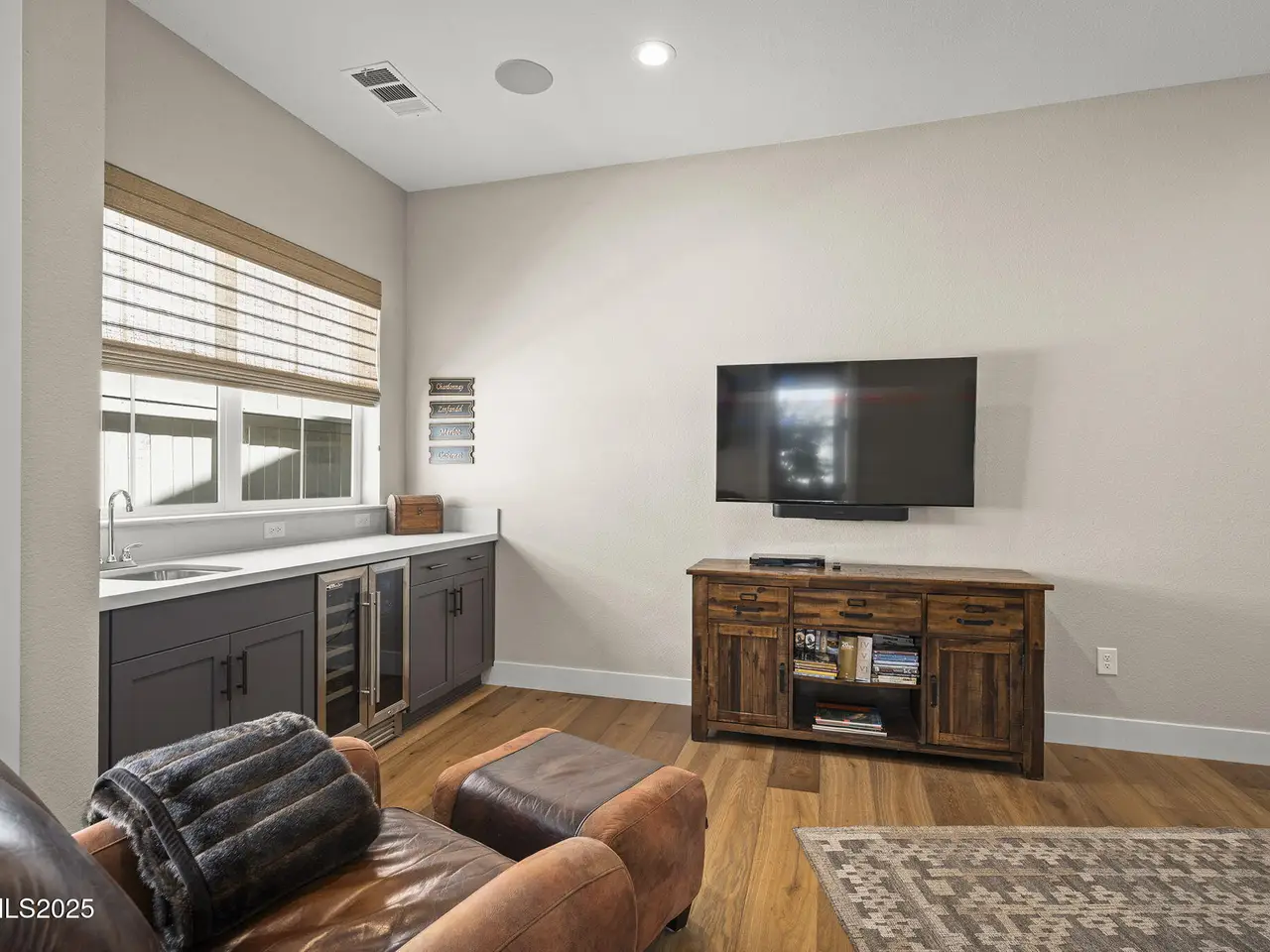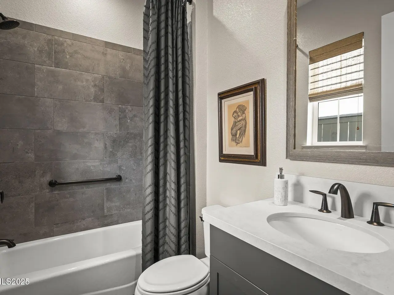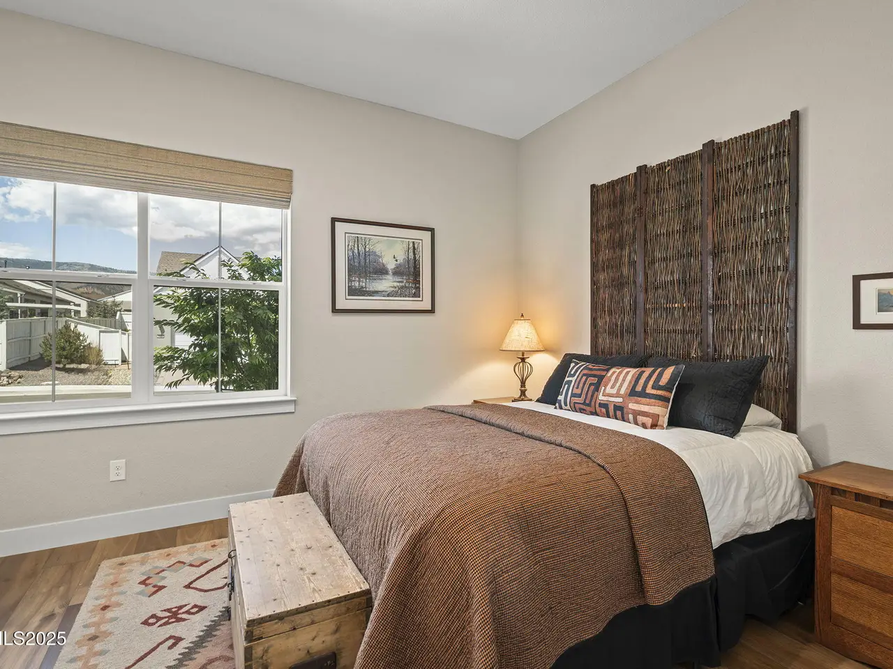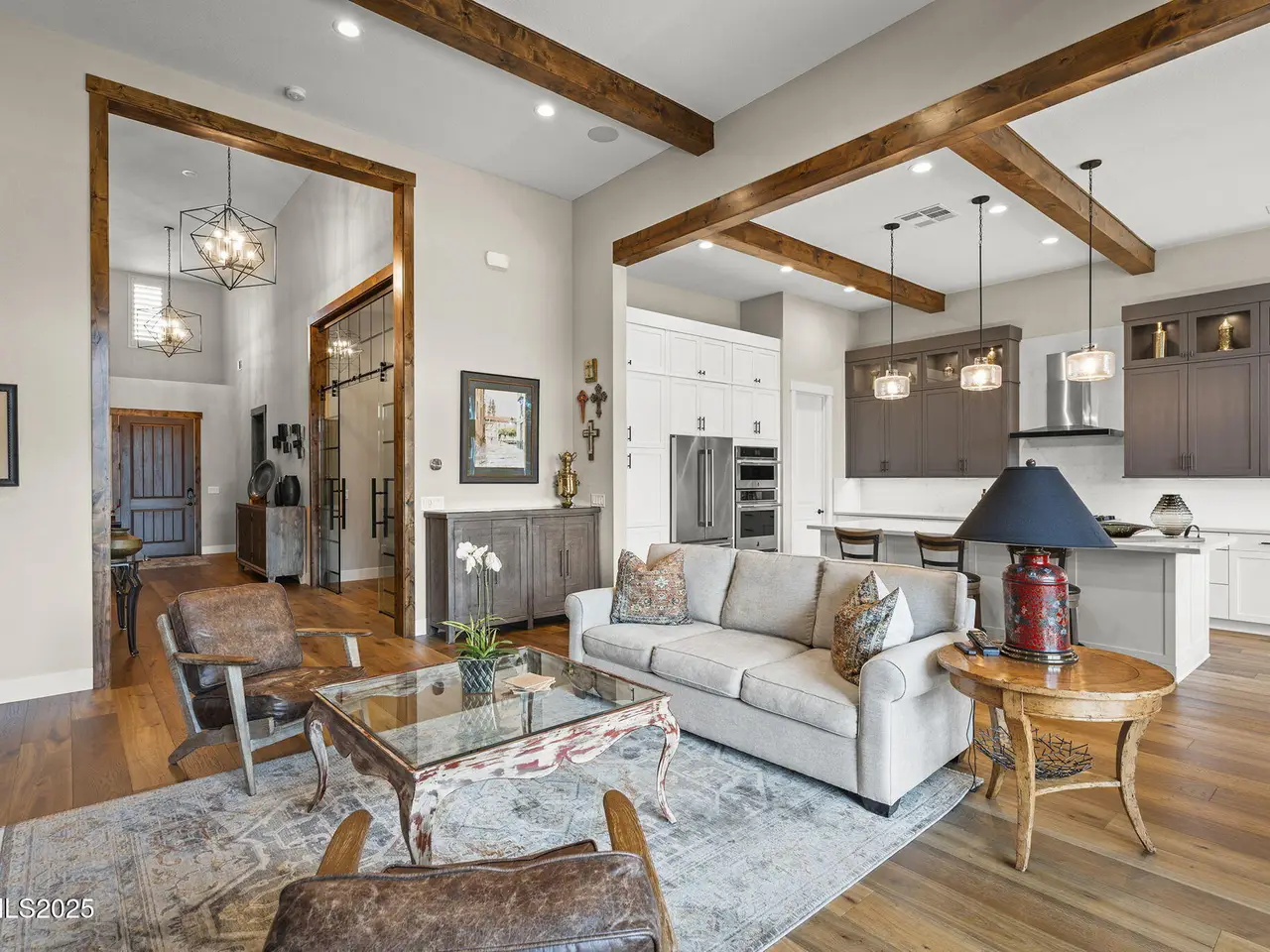 Welcome to 6122 S Pleasant Oak Trail, a one-of-a-kind, single-level residence located in the highly coveted gated community of Rancharrah in Reno, Nevada. Thoughtfully designed and extensively upgraded, this exquisite 3-bedroom, 3.5-bathroom home—with a nearly 300 sq ft multi-generational suite addition—offers 2,828 sq ft of sophisticated living space. As the largest single-story model in the Rancharrah development, it blends timeless style with today's most sought-after design elements and premium enhancements. Set on a beautifully landscaped and private lot with no rear neighbor, the home greets you with exceptional curb appeal and a peaceful, upscale ambiance. Inside, soaring ceilings and wide-plank oak flooring throughout set the stage for refined living. Custom ceiling beams, 5-inch baseboards, and designer door wraps add architectural interest, while expansive windows and a 12-foot sliding glass door flood the space with natural light and frame views of the serene backyard. At the heart of the home, the gourmet kitchen impresses with upgraded cabinetry, quartz countertops, a farm sink, instant hot water, under-cabinet outlets, and soft-close drawers—perfectly designed for both entertaining and everyday ease. A standout feature of this residence is the private multi-generational suite, offering nearly 300 square feet of flexible space with its own entrance, sink, counter, and refrigerator—ideal for extended family, guests, or a home office retreat. The luxurious primary suite is a true sanctuary, with direct access to the backyard spa, blackout window coverings, a custom California Closet system, and a stunning en-suite bathroom featuring a roll-in shower and floor-to-ceiling designer tile. All bathrooms throughout the home have been upgraded with premium tile, mirrors, and cabinetry, and the powder room showcases a striking handcrafted wood wall treatment. A dedicated office or den enclosed with sliding glass doors offers a quiet, stylish workspace. The laundry room is equally well-appointed, featuring upper and lower cabinetry, built-in desk space, and integrated storage. The garage includes epoxy flooring, full insulation, and custom cabinetry to keep everything organized and out of sight. Step outside to your private outdoor oasis, complete with mature landscaping, a calming water feature, paver pathways, and an above-ground spa—all framed by a rare, unobstructed view with no home behind. Additional features include a Heat 'n Glo fireplace in the living area, whole-home water softener and purification system, window treatments and drapes with UV coating, and all-oak and tile flooring throughout. Beyond the home, residents enjoy access to unmatched amenities at The Club at Rancharrah, including a full-service restaurant, spa, pool, state-of-the-art fitness center, bocce and pickleball courts, and a variety of fitness and lifestyle classes. The property is also within walking distance to the Village at Rancharrah, featuring boutique shopping and fine dining, and just minutes from Bartley Ranch Park and scenic walking trails. This is more than a home—it's a lifestyle. Don't miss this rare opportunity to own a premier residence in one of Reno's most prestigious communities.