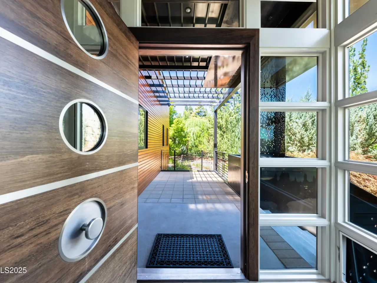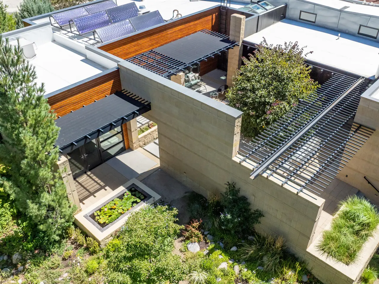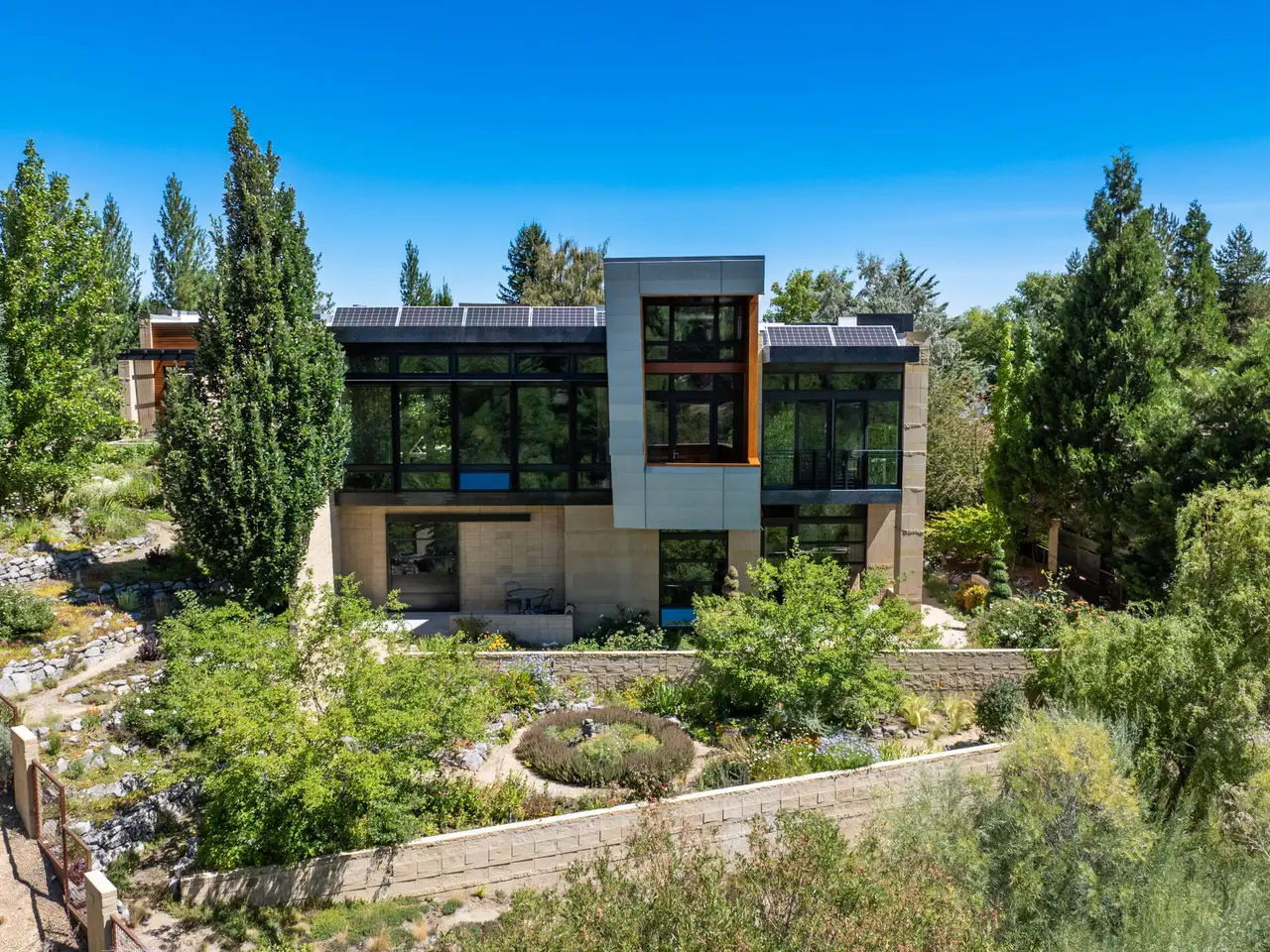 This architecturally significant home, constructed with concrete, metal, and wood siding elements, harmonizes modern design with its natural surroundings. Its state-of-the-art systems include hydronic heating powered by solar energy and evaporative cooling, offering both comfort and sustainability. The seamless connection between indoor and outdoor spaces is a defining feature, with the courtyard and pool creating a tranquil retreat. Art lovers and architecture enthusiasts alike will appreciate the home's thoughtful design and integration with the environment. This remarkable home extends its artistry into the landscape with extensive, curated gardens featuring custom metal fencing, sculptures, and a serene lily pond. A dedicated gardening room makes maintaining this outdoor sanctuary a pleasure. Additional features include a mudroom, outdoor shower, and a gym for an active lifestyle. Inside, cutting-edge technology enhances daily living, with high-tech LED lighting perfect for art displays, automated shades, and a full house automation system controlling audio, visual, and security systems seamlessly.