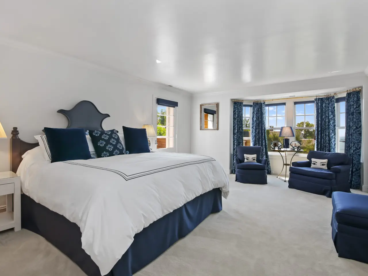 Spacious primary suite with private balcony, spa bath