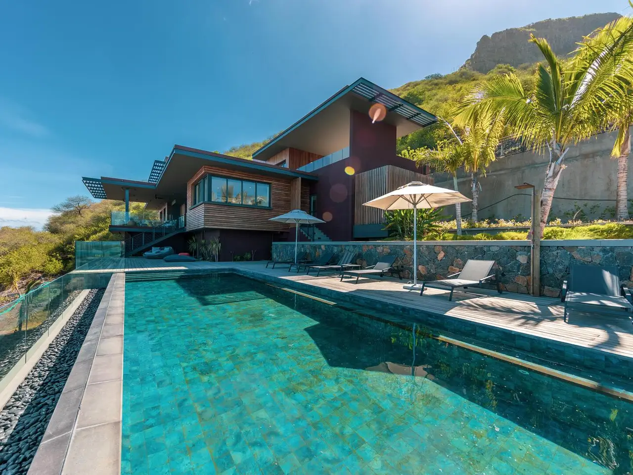 Perched high above Rivière Noire on the slopes of La Tourelle, Villa One stands as the crown jewel of the Legend Hill estate — a stunning architectural statement offering sweeping 180° views of the ocean lagoon, majestic mountain scenery, and complete privacy. Designed as a livable work of art, it delivers a rare blend of contemporary design, bold volumes, and immersion in nature, creating a truly incomparable lifestyle in one of the most prestigious settings in Mauritius. Bold Architecture, Infinite Horizon Villa One’s sleek design maximizes indoor-outdoor flow with full-height glazed facades, expansive living areas, and open terraces that dissolve into the breathtaking scenery. Every space is oriented to capture the natural beauty and draw in sunlight, air, and panoramic views. It features: A dramatic cathedral-ceiling living room, flooded with natural light, A designer open-plan kitchen, fitted with top-of-the-line appliances and a spacious scullery, A dining area that extends seamlessly to the covered terrace and pool deck, Elegant outdoor lounges perfect for entertaining, sunset dining, or tranquil relaxation. Exceptional Comfort and Bespoke Details Villa One is equipped with: 4 en suite bedrooms, each with private bathrooms, built-in wardrobes, and direct access to the garden or terrace, A magnificent master suite, more akin to a private apartment, featuring a private lounge, expansive dressing room, designer bathroom, and exclusive terrace with uninterrupted lagoon views, A long infinity pool with a hardwood deck and lounge area, A private landscaped garden, harmoniously integrated into the hillside, Central air conditioning, a wine cellar, laundry room, and secure parking. Every detail is curated for luxurious comfort, elegance, and serene living. 5-Star Resort Lifestyle, At Your Doorstep As a resident of Villa One, you enjoy full access to the exclusive 5-star resort services of Legend Hill: A Michelin-starred fine dining restaurant and relaxed bistronomic eatery, A panoramic lounge bar facing the ocean, The Salin de Biosel spa, wellness center, and gym, Dedicated concierge, in-villa dining, daily housekeeping, and 24/7 security. A Rare and Refined Island Home Villa One is the pinnacle of island living—a private, refined, and architecturally striking residence that delivers a lifestyle of peace, prestige, and beauty. It is a one-of-a-kind villa for those who seek excellence, freedom, and distinction in one of Mauritius’ most extraordinary settings.