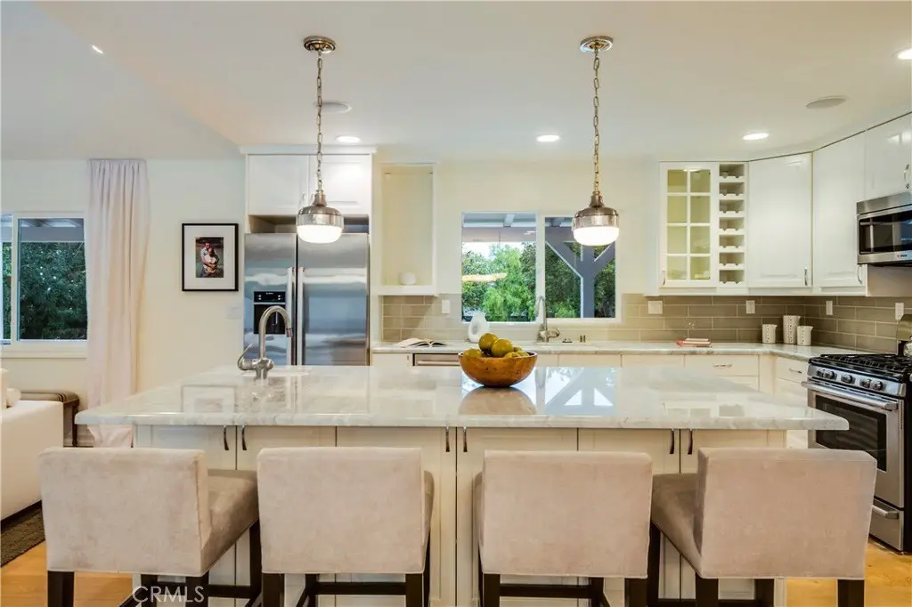 Set back off the street, on a sprawling blanket of grass, sits this spacious, one-level Ranch home. Extensively remodeled in 2015, this virtually new home features an excellent floor plan, centered around the beautiful kitchen. The adjacent family room, dining room and living room with fireplace all overlook the newly refinished pool and huge patio creating the ultimate summer entertainment area. The rear yard was professionally designed and includes numerous stack stone planters with lush landscaping and complimented with extensive lighting to entice any nighttime gathering. The master suite has a luxurious master bathroom and two walk-in closets. Wide plank hardwood floors, newer doors and windows, newer roof, newer kitchen and bathrooms. The front yard features a large covered front porch, a long driveway and a sprawling grassy play yard. Additional features include tankless water heater, newer AC system, upgraded electrical panel, new interior lighting, sewer line upgrade, hardwired for the Internet and so much more. Access to the award-winning Palos Verdes school district including Rancho Vista Elementary, Miraleste Intermediate School and the option to attend Peninsula or Palos Verdes high school. This Rolling Hills Estates home is a one-of-a-kind property sure to be at the top of everyone's list.
