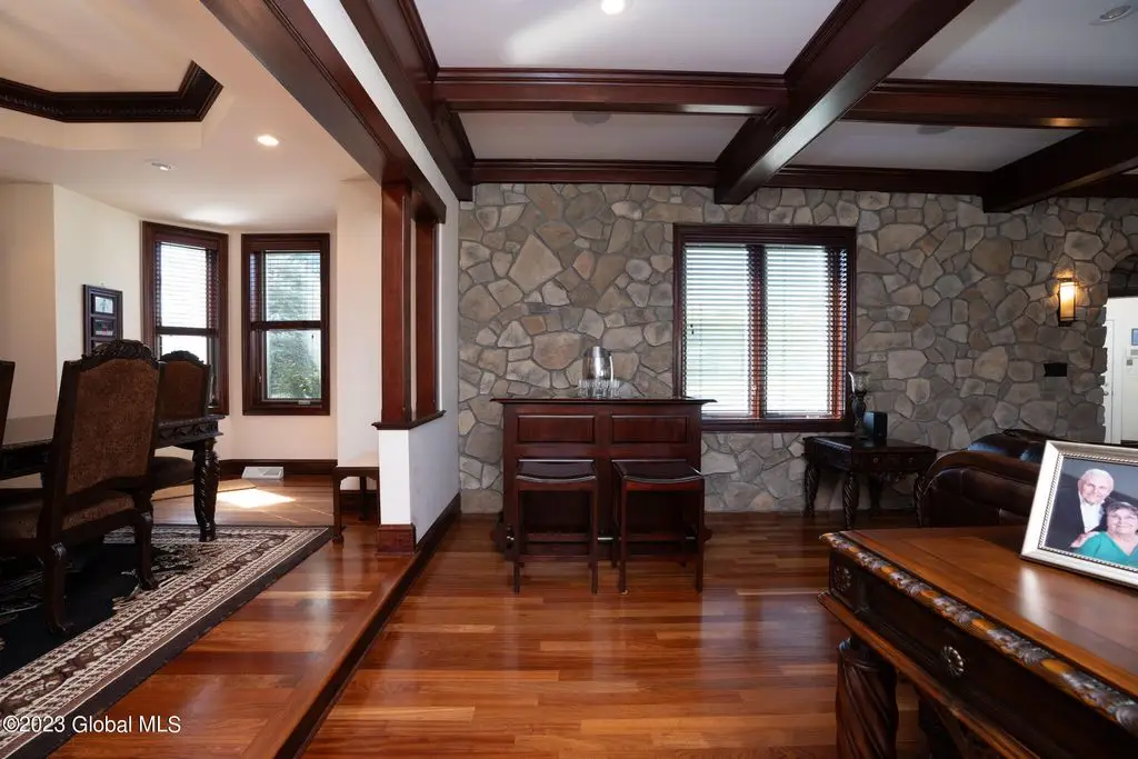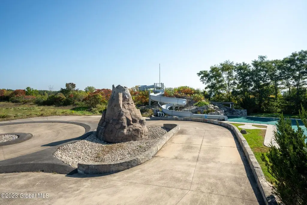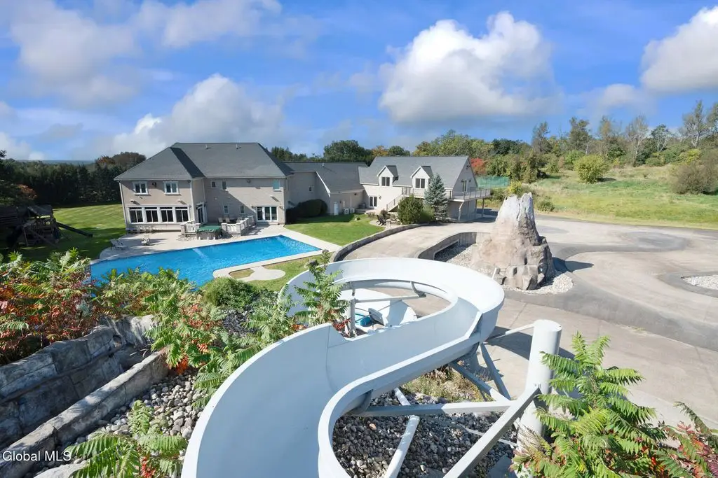 This magnificent estate has a mini, private amusement park w/ helicopter pad! Enjoy huge water slide in heated salt-water pool, go-kart track w/ go-karts included, tennis court, koi pond & volcano display. Two-3 car, temperature controlled oversized garages (6 bays). House comes furnished w/ 5,132 sq. ft. 6 BR, 5 1/2 baths. Surrounded by 30 acres of land, just 20 min from Albany Int'l Airport & 18 min from Sch'dy Airport. Gorgeous, coffered ceilings, gourmet kit, game room & many more upscale features like 4-person jetted tub in one of 3 primary suites! Includes an in-law or guest suite w/ separate entrance. Soak in outdoor hot tub or hang out at the fire pit. Enjoy fall foliage, apple picking, hiking & ski at nearby Maple Ski Ridge or Gore Mt. Close to Saratoga & Lake George. Must see!