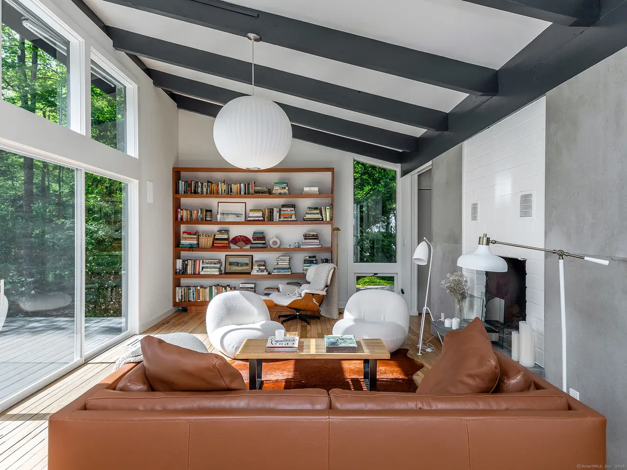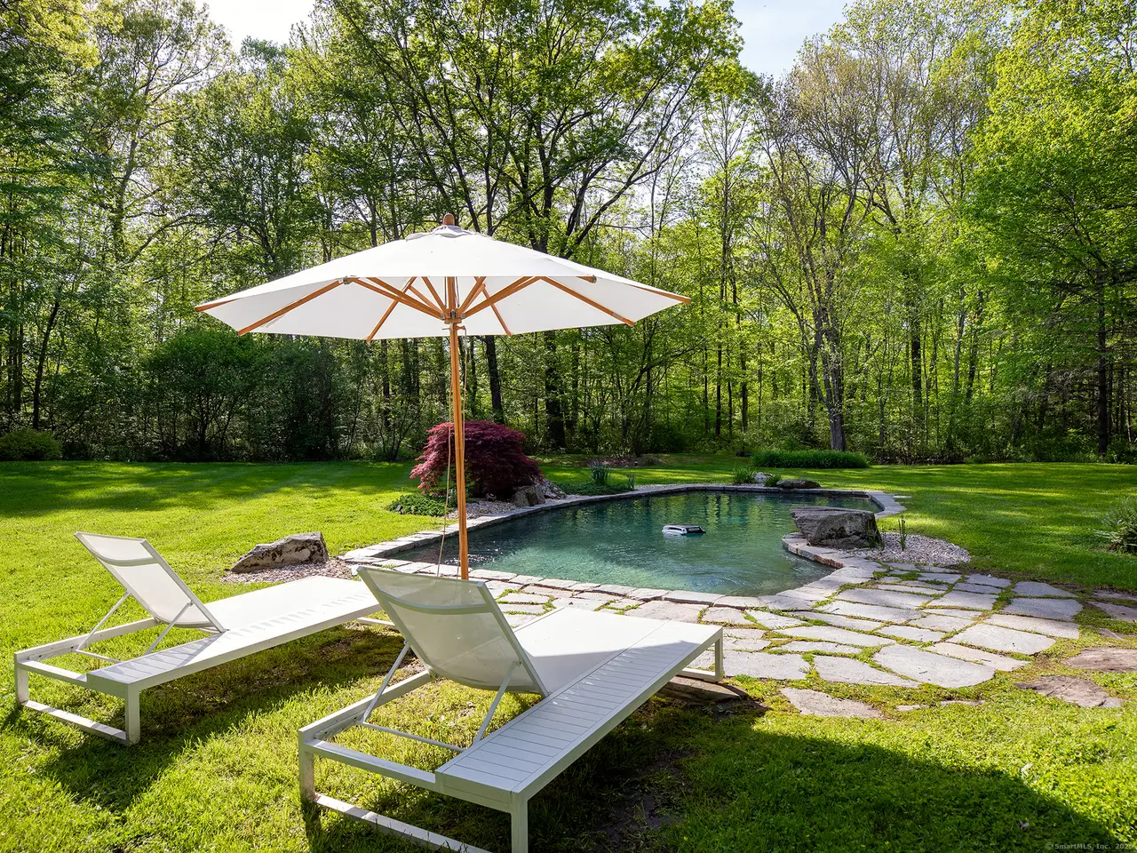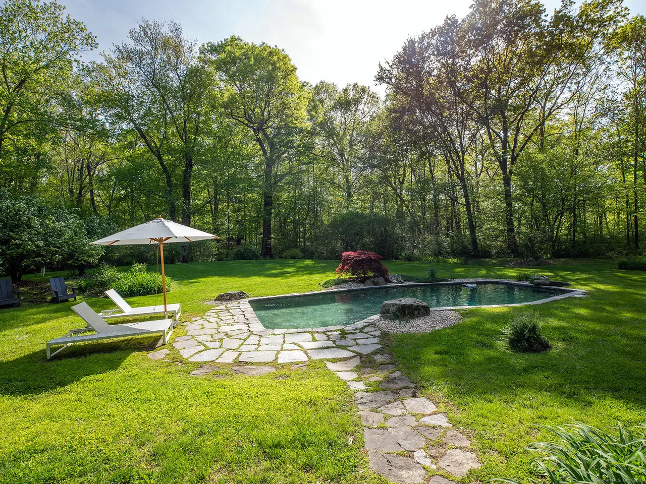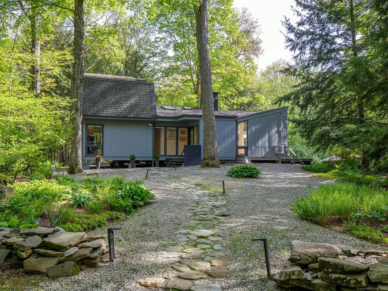 Step into timeless style and serene privacy with this beautifully maintained 1966 mid-century modern home. Set on almost 5 acres of lush, private land, this 3-bedroom, 2.5-bath residence blends classic design with modern upgrades. The just-renovated bathrooms feature high-end, spa-like finishes, while the expansive deck provides the perfect setting for outdoor entertaining or peaceful relaxation. A stunning heated gunite pool invites you to unwind in your own private backyard oasis, and the new whole-house generator ensures comfort and security year-round. The detached 2-car garage adds flexibility and convenience for storage and winter parking, and includes a charger for an electric vehicle. This home is a true blend of architectural charm and functional living-with space, style, and privacy that's increasingly rare. Close to the Mayflower Inn & Spa, extensive hiking trails, and the towns of Washington, Woodbury, and New Milford are easily accessible. Do not miss this opportunity in desirable central Roxbury.