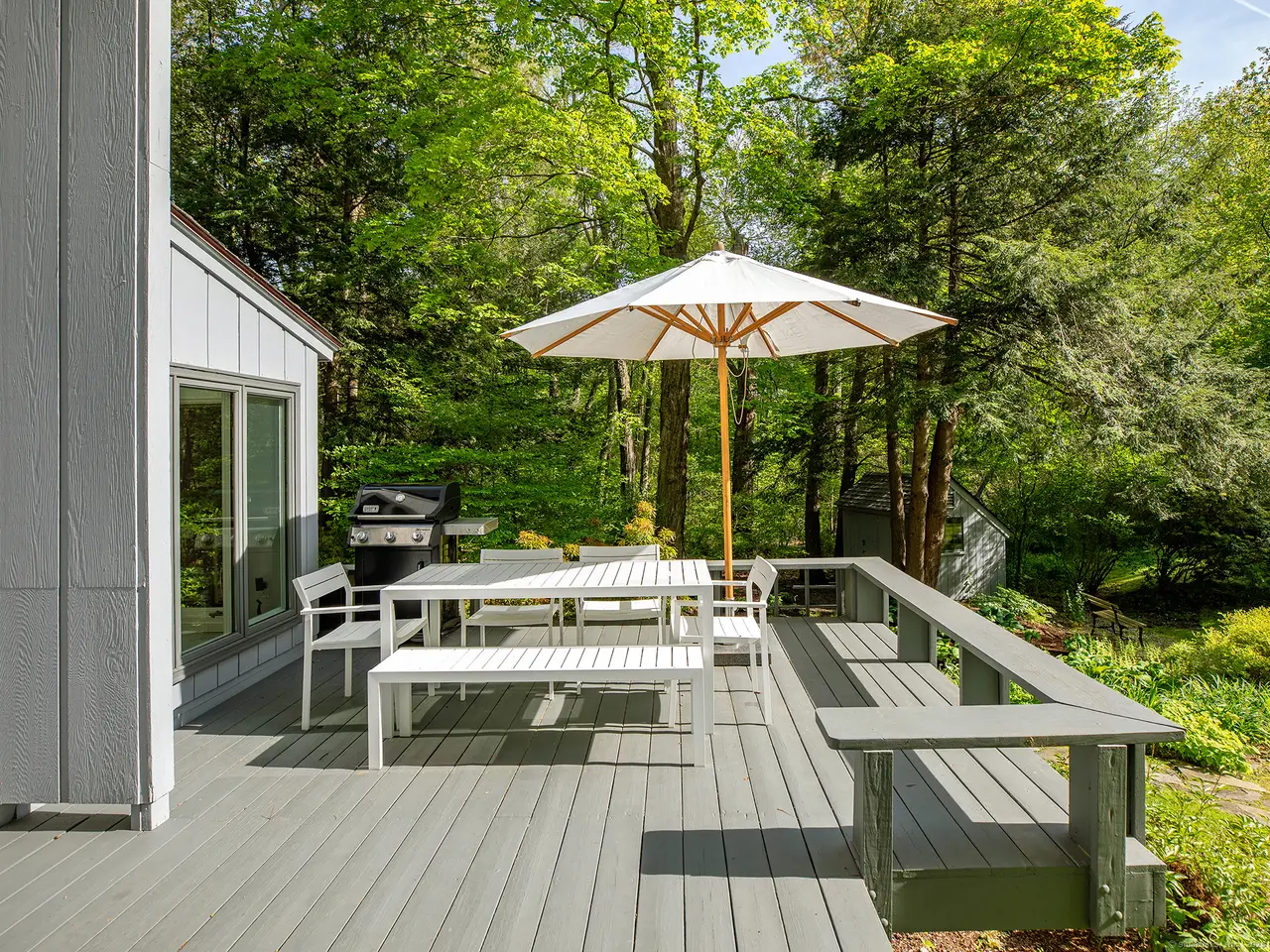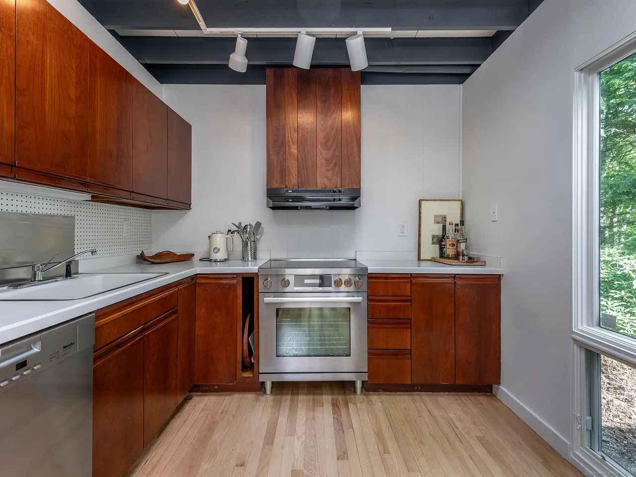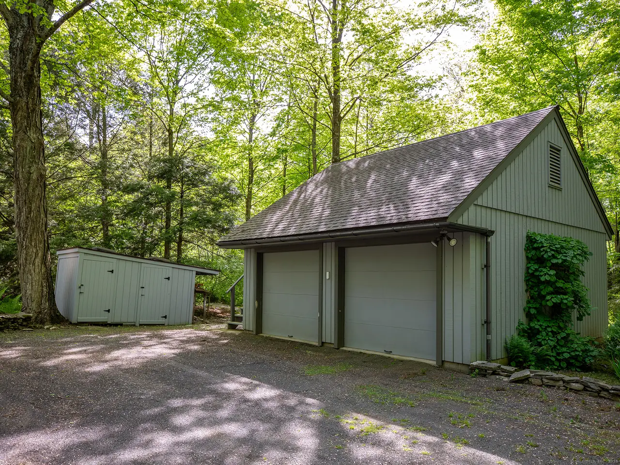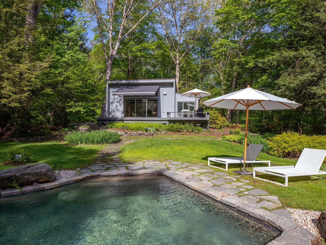 Step into timeless style and serene privacy with this beautifully maintained 1966 mid-century modern home. Set on almost 5 acres of lush, private land, this 3-bedroom, 2.5-bath residence blends classic design with modern upgrades. The just-renovated bathrooms feature high-end, spa-like finishes, while the expansive deck provides the perfect setting for outdoor entertaining or peaceful relaxation. A stunning heated gunite pool invites you to unwind in your own private backyard oasis, and the new whole-house generator ensures comfort and security year-round. The detached 2-car garage adds flexibility and convenience for storage and winter parking, and includes a charger for an electric vehicle. This home is a true blend of architectural charm and functional living-with space, style, and privacy that's increasingly rare. Close to the Mayflower Inn & Spa, extensive hiking trails, and the towns of Washington, Woodbury, and New Milford are easily accessible. Do not miss this opportunity in desirable central Roxbury.