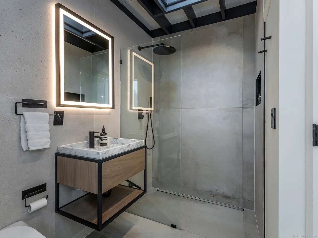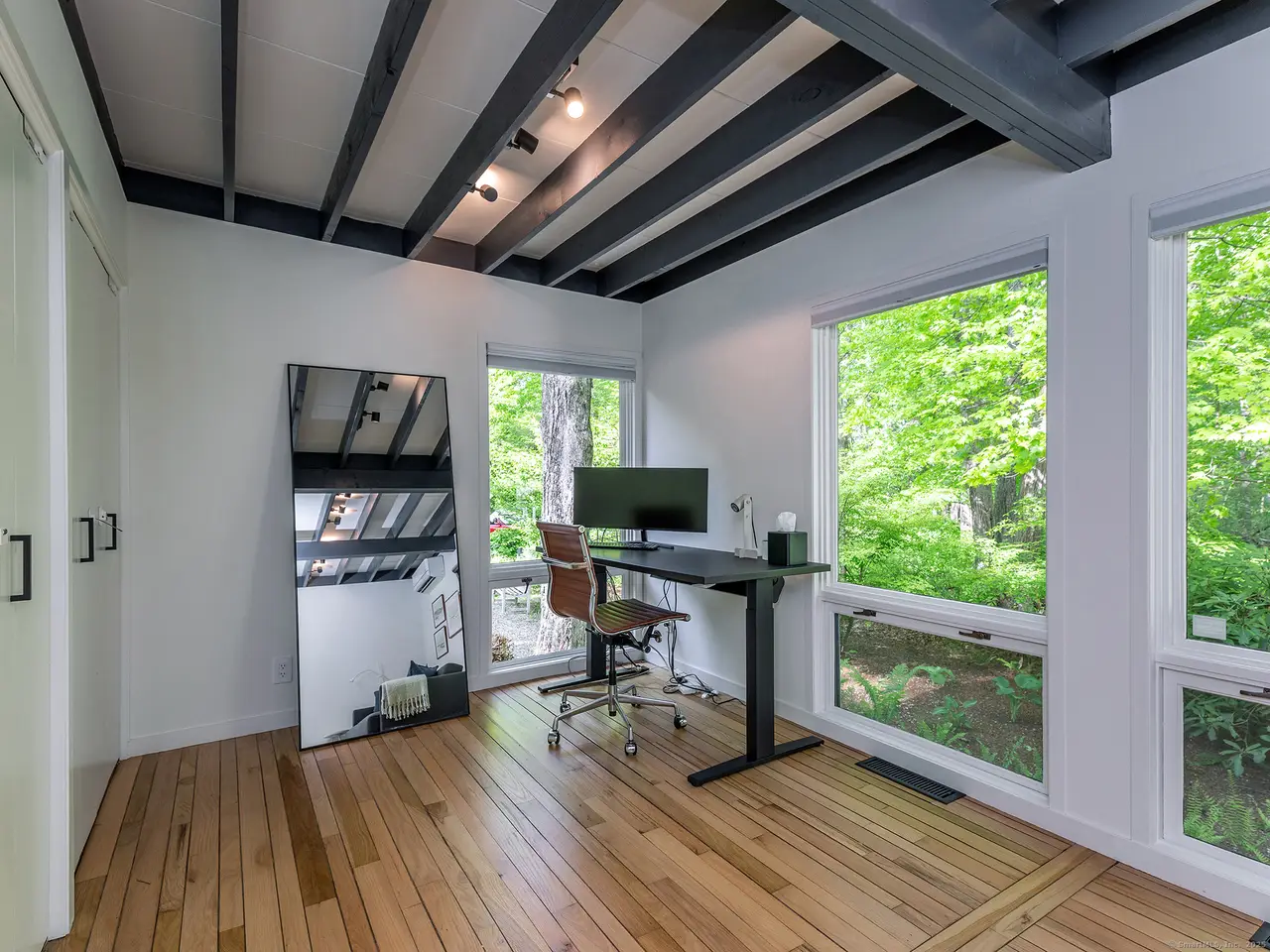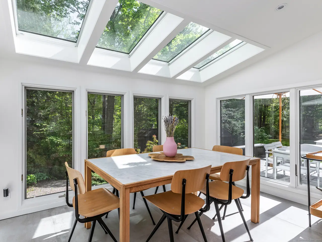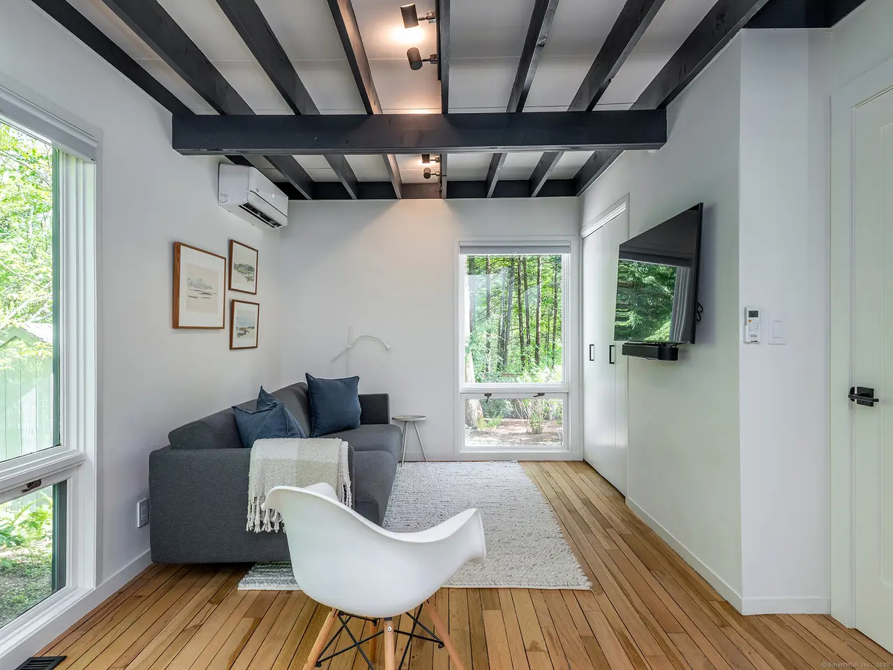 Step into timeless style and serene privacy with this beautifully maintained 1966 mid-century modern home. Set on almost 5 acres of lush, private land, this 3-bedroom, 2.5-bath residence blends classic design with modern upgrades. The just-renovated bathrooms feature high-end, spa-like finishes, while the expansive deck provides the perfect setting for outdoor entertaining or peaceful relaxation. A stunning heated gunite pool invites you to unwind in your own private backyard oasis, and the new whole-house generator ensures comfort and security year-round. The detached 2-car garage adds flexibility and convenience for storage and winter parking, and includes a charger for an electric vehicle. This home is a true blend of architectural charm and functional living-with space, style, and privacy that's increasingly rare. Close to the Mayflower Inn & Spa, extensive hiking trails, and the towns of Washington, Woodbury, and New Milford are easily accessible. Do not miss this opportunity in desirable central Roxbury.