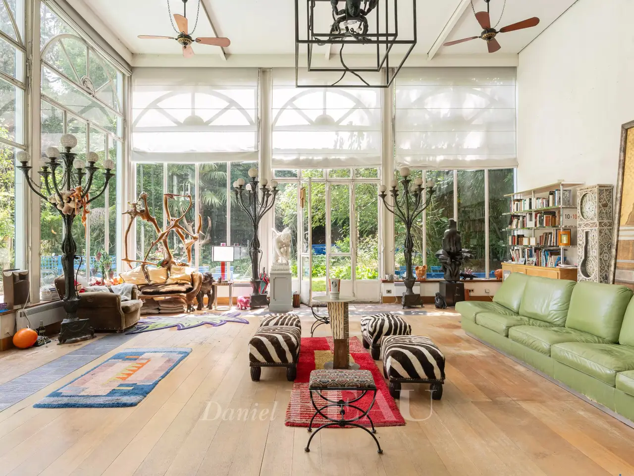 This elegant 1920s property boasting superb preserved period features is set in a leafy environment a stone’s throw from saint Cloud Golf Course. A vestibule or study leads to a 78 sqm living/reception room, a dining room, a kitchen, and a stunning 83 sqm conservatory bathed in sunshine and opening onto the landscaped garden and the swimming pool. Upstairs a landing leads to a spacious master suite with a bathroom and dressing room, three further bedrooms and two bathrooms. The top floor comprises a 63 sqm terrace. A split-level apartment adjacent to the main house comprises a living room with a kitchen, and a bedroom with a bathroom. With two staff bedrooms, a boiler room, a storage room and a garage. The ensemble comprises two distinct areas (one 444 sqm, the second 106 sqm) and division would be possible.