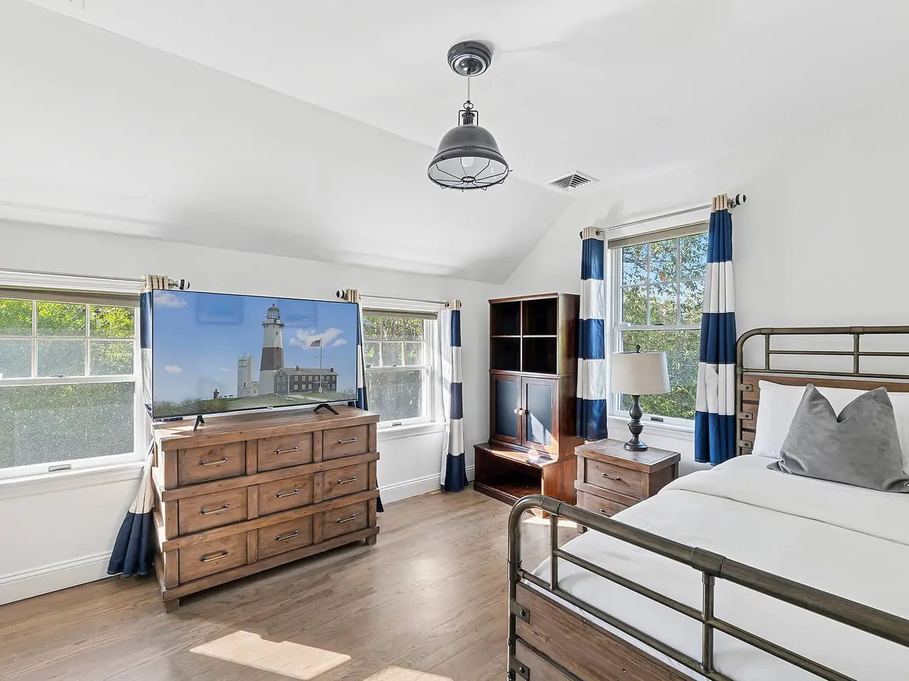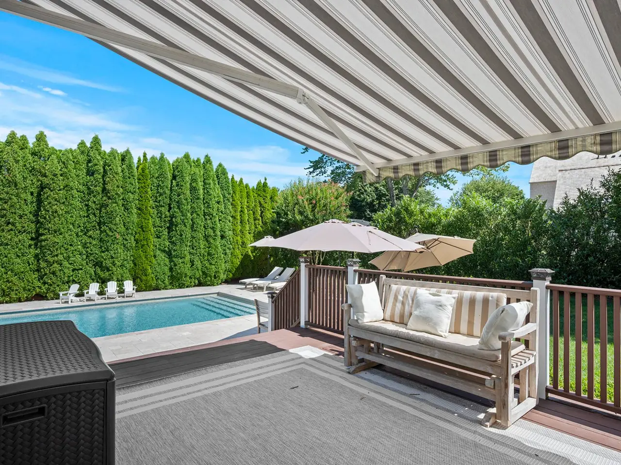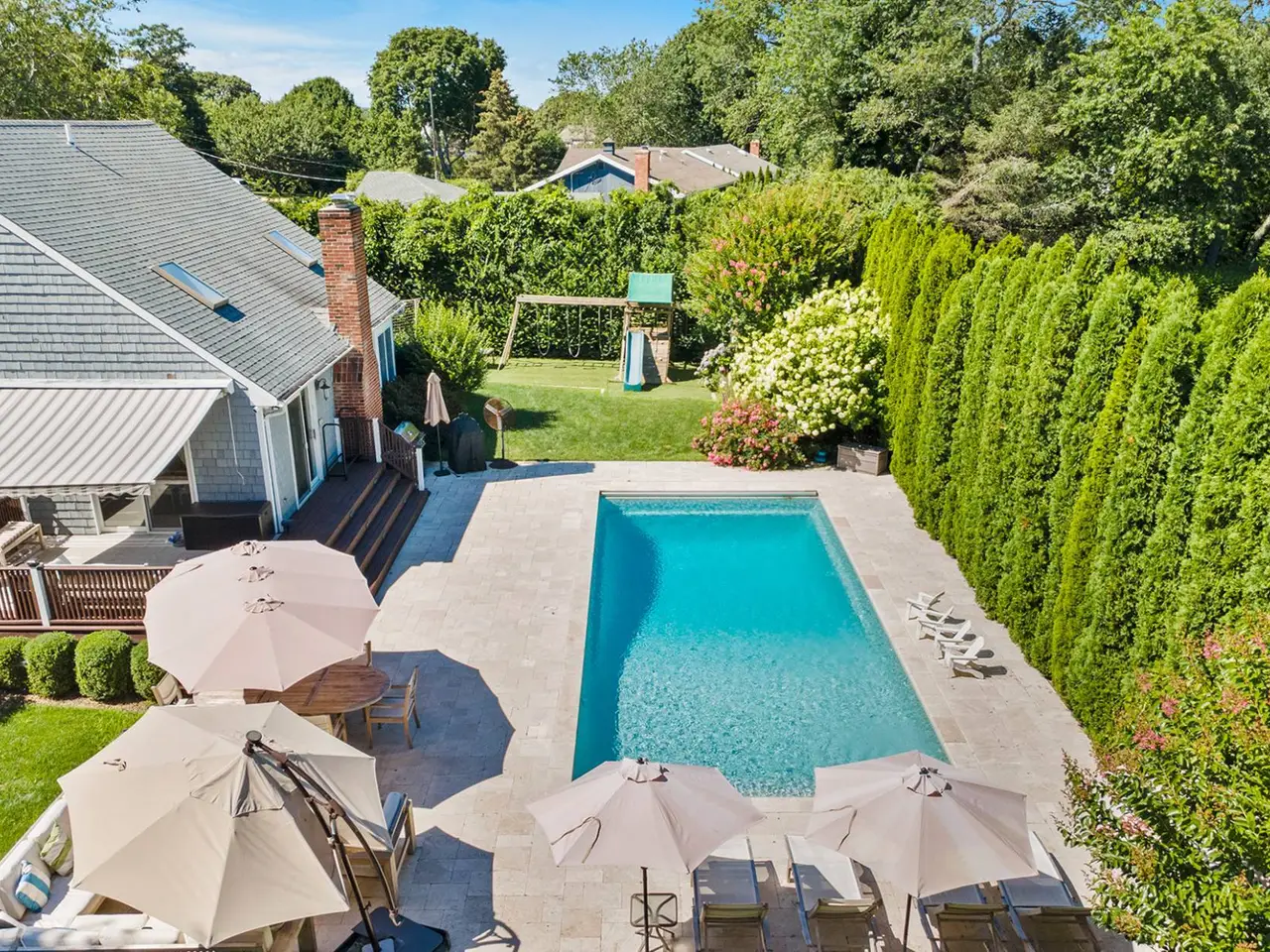 RP#: 240817: Sag Harbor Rental - Bay Point Spend your summer in style at this beautifully updated 4-bedroom, 3-bath rental in the coveted waterfront community of Bay Point, Sag Harbor. Just minutes from the village and a moments from Foster Memorial Beach, this tastefully appointed home offers a perfect blend of modern comfort and Hamptons charm. Step inside to an open-concept living area with cathedral ceilings and natural light streaming through skylights. The gourmet kitchen features top-tier stainless steel appliances-including a Bertazzoni range-white quartz countertops, a farmhouse sink, and stylish grey-beige-white interior tones throughout. The main-level primary suite offers a private entrance and barn doors for added seclusion. Upstairs, two guest bedrooms share a full bath with elegant finishes and raindrop showerheads. The lower level is ideal for entertaining, complete with a spacious media lounge, wet bar, a fourth bedroom, and an additional full bath featuring a glass walk-in shower and designer tile. Outside, enjoy a beautifully landscaped and private setting complete with a 20' x 40' heated in-ground pool, outdoor shower, and multiple seating areas for lounging or dining alfresco. Located just 1.5 miles from Sag Harbor Village and minutes from Serene Green Organic Farmstand, this home offers convenience, tranquility, and access to everything the Hamptons has to offer-including those unforgettable west-facing sunsets at the nearby beach.Listing ID 924714