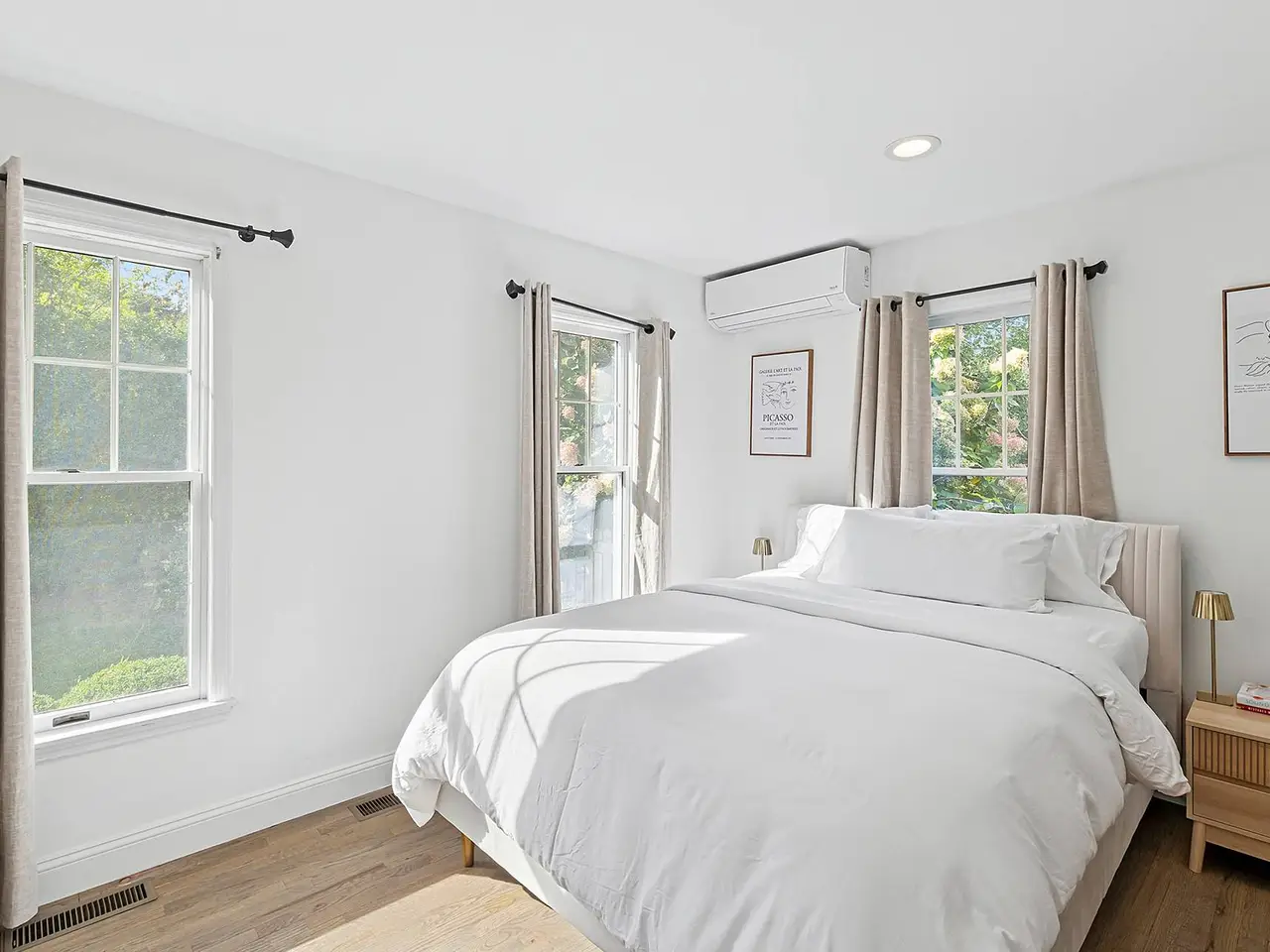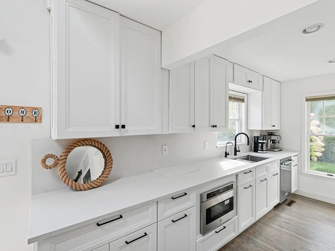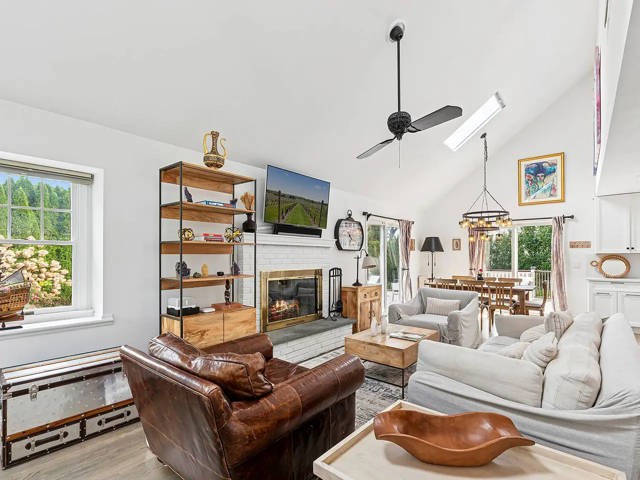 RP#: 240817: Sag Harbor Rental - Bay Point Spend your summer in style at this beautifully updated 4-bedroom, 3-bath rental in the coveted waterfront community of Bay Point, Sag Harbor. Just minutes from the village and a moments from Foster Memorial Beach, this tastefully appointed home offers a perfect blend of modern comfort and Hamptons charm. Step inside to an open-concept living area with cathedral ceilings and natural light streaming through skylights. The gourmet kitchen features top-tier stainless steel appliances-including a Bertazzoni range-white quartz countertops, a farmhouse sink, and stylish grey-beige-white interior tones throughout. The main-level primary suite offers a private entrance and barn doors for added seclusion. Upstairs, two guest bedrooms share a full bath with elegant finishes and raindrop showerheads. The lower level is ideal for entertaining, complete with a spacious media lounge, wet bar, a fourth bedroom, and an additional full bath featuring a glass walk-in shower and designer tile. Outside, enjoy a beautifully landscaped and private setting complete with a 20' x 40' heated in-ground pool, outdoor shower, and multiple seating areas for lounging or dining alfresco. Located just 1.5 miles from Sag Harbor Village and minutes from Serene Green Organic Farmstand, this home offers convenience, tranquility, and access to everything the Hamptons has to offer-including those unforgettable west-facing sunsets at the nearby beach.Listing ID 924714