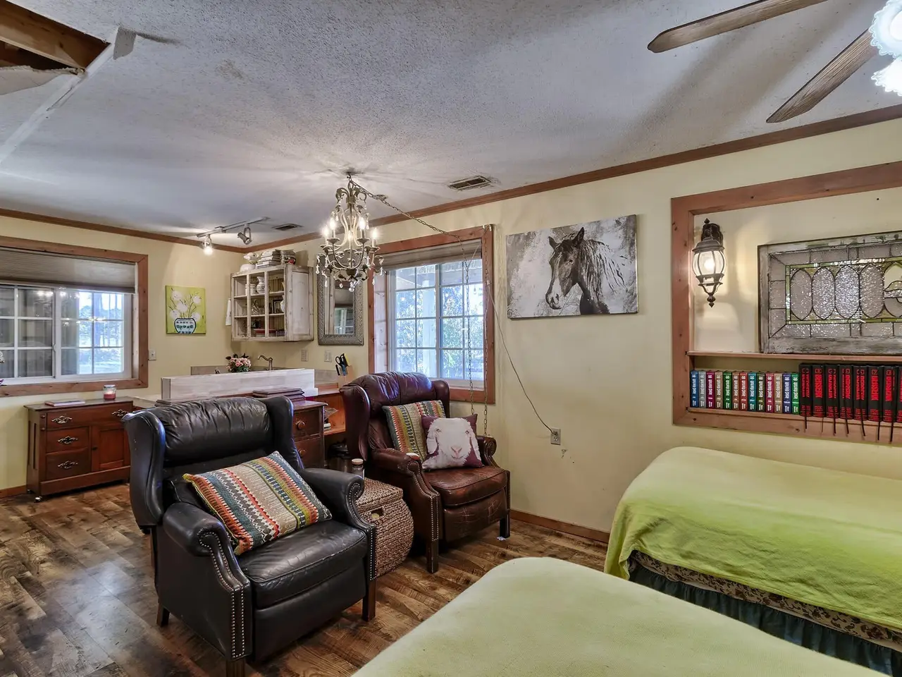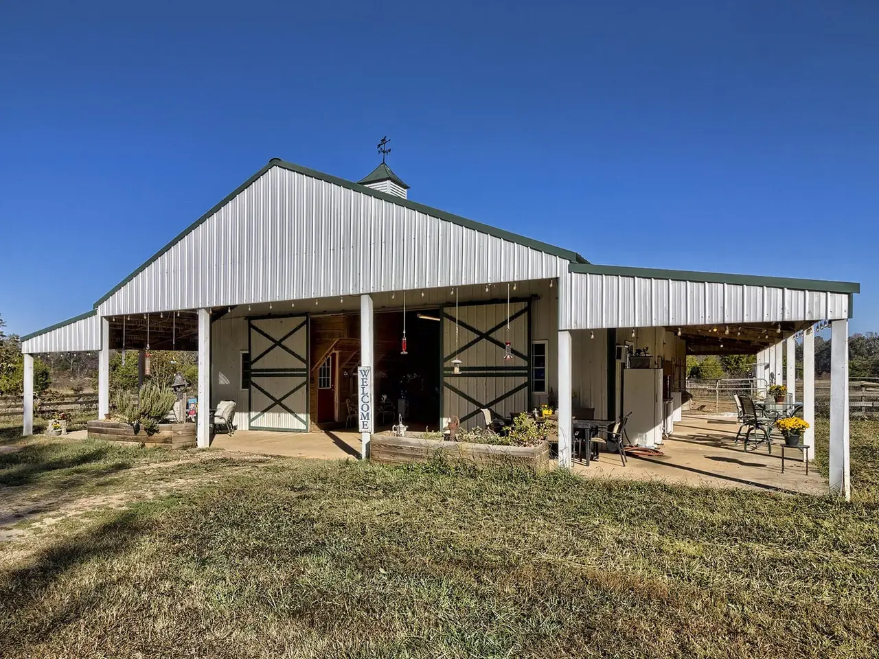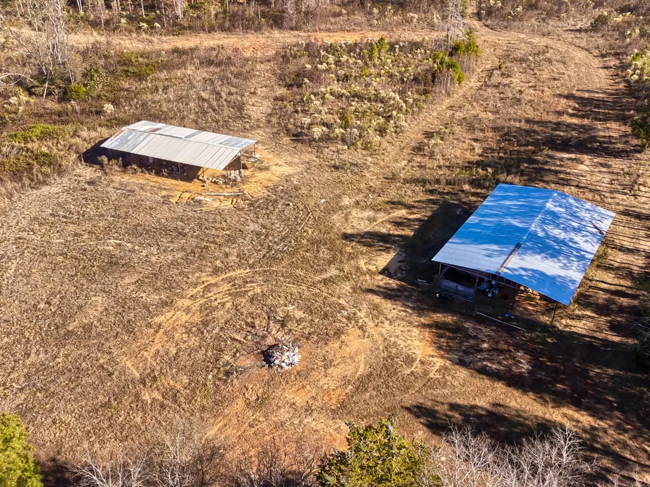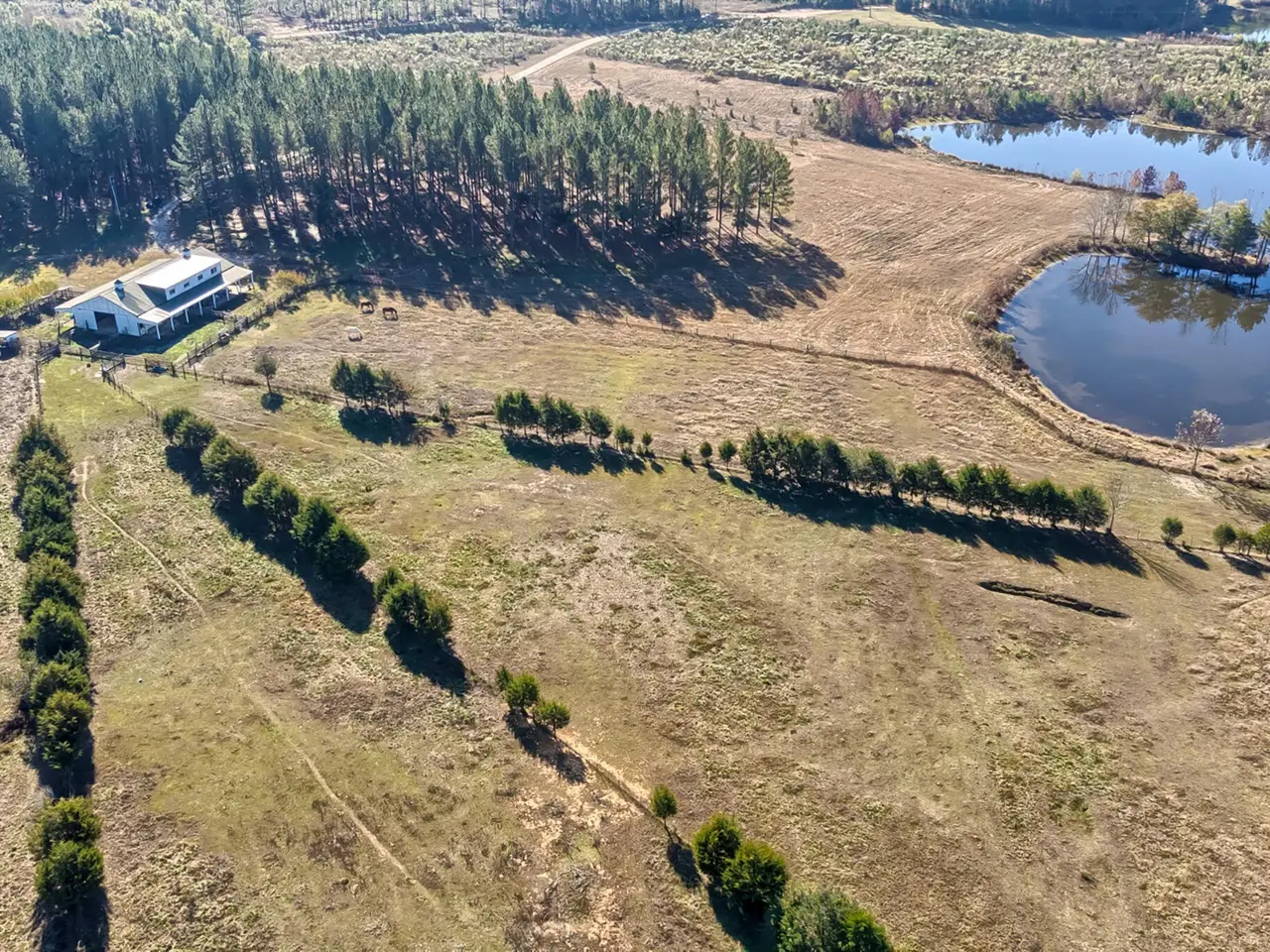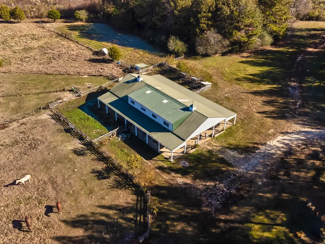 The 240 acres has unlimited potential. Currently it is a single family home with a loveable Barndominium with three different living spaces. Two downstairs and a separate apartment upstairs which was added in 2020 with a large closet/office, full bathroom open concept living/bedroom/kitchenette. The first living space was attached with the original stalls built approximately in 2006. Its a large bedroom/living room and kitchenette. The second was added in 2023 and is slightly smaller but very functional. The barn has an abundance of exterior living and dining space. The laundry/outdoor kitchen and dressing room are downstairs. This could be turned into a magnificent wedding venue with a bridal suite. Or keep it as a single-family home. The 240 acres holds three ponds. One is one acre, the other is three acres and the third is four acres. The land is sprawling with the ponds, the 5 stall barn with the living space, the chicken coops, paddocks for the horses, the exterior barn and pig pen (currently not being occupied) The property has hunting and fishing year round. All the ponds are fully stocked, the wildlife runs free for the taking and the barn could be converted to a hunting lodge. The endless uses for this property will keep your mind intrigued.