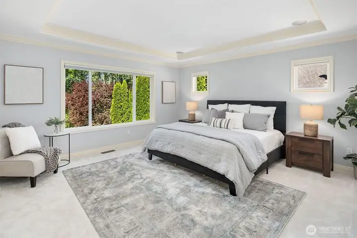 Discover one of the most private homes in Trossachs, set on an expansive lot that backs to a protected greenbelt—with another greenbelt across the street for rare front-and-back privacy. Light-filled main level features a spacious great room, dedicated office, and chef’s kitchen with ample space for everyday living and entertaining. Upstairs offers four generous bedrooms plus a versatile bonus room. Enjoy tranquil outdoor living on the entertaining patio and the expansive, fully fenced backyard features a large grassy lawn—perfect for play & relaxation. Top rated Issaquah Schools and just steps from parks, trails and Soaring Eagle. Ideal for those seeking space, privacy, and community. 3 car garage, AC, brand new carpet and freshly painted.