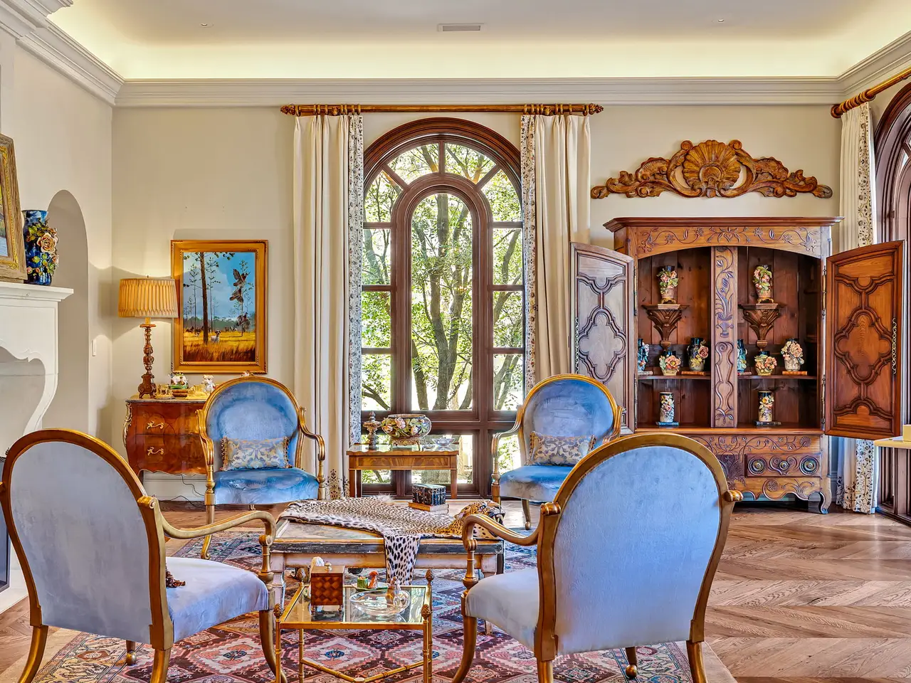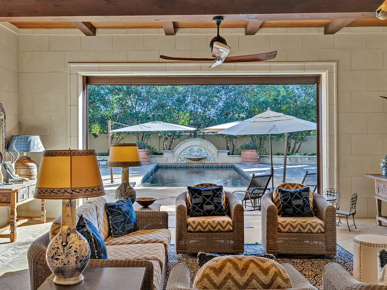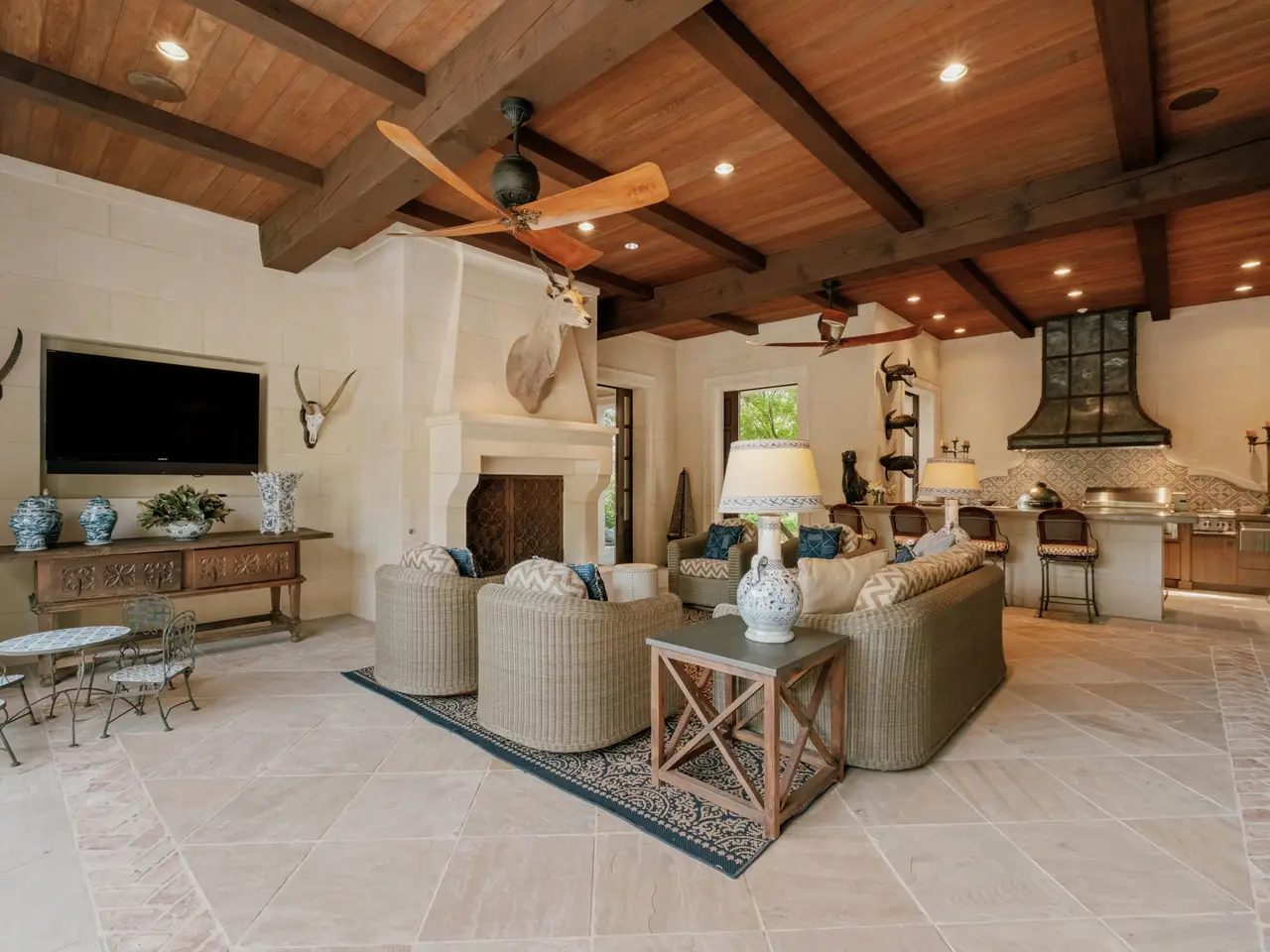 This breathtaking estate, completed in 2009 by Mauze Construction and designed by renowned architect Roy Braswell, exudes unparalleled quality and craftsmanship. With a hand-cut limestone exterior and an Italian-style barrel tile roof, complemented by full copper gutters, this home offers timeless elegance. Inside, custom finishes throughout include Palmer Todd-designed cabinets in the kitchen, bar, primary bath and primary closet. The primary closet is larger than most bedrooms and has two islands the make packing a breeze. Boasting 4 bedrooms, 4 bathrooms, and 4 powder baths, it offers 12-foot ceilings, 4 fireplaces, and a beautiful family room featuring a hand-carved mantel and hand-painted wood beams. The outdoor living space is a true highlight, offering a 1,238-square-foot lanai with 3 fully retractable custom Koaba wood doors, a fully equipped outdoor kitchen, and a cozy fireplace. This is the finest outdoor living area you will ever see. The lower level wine room, complete with custom iron doors to the wine cellar also has a powder room and a catering kitchen. You can walk outside and take the beautiful stone staircase to the lanai. . A private office, custom bar, and spacious family room add to the home®s appeal, while the primary bath with heated floors, a coffee bar, and retractable doors opening to a patio overlooking the pool ensures a spa-like experience. Further luxury is found in the 5-car garage, a separate apartment above the garage, and a gorgeous backyard with a pool, koi pond, and lush oaks. With advanced systems like Lutron lighting, Creston controls, and a mosquito nix system, this estate is a true masterpiece. - 4/4/2025 8:01:20 AM