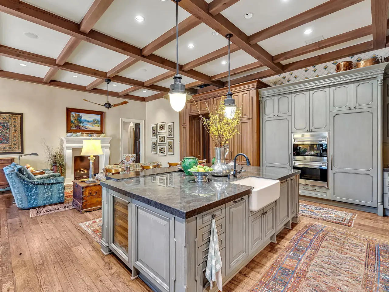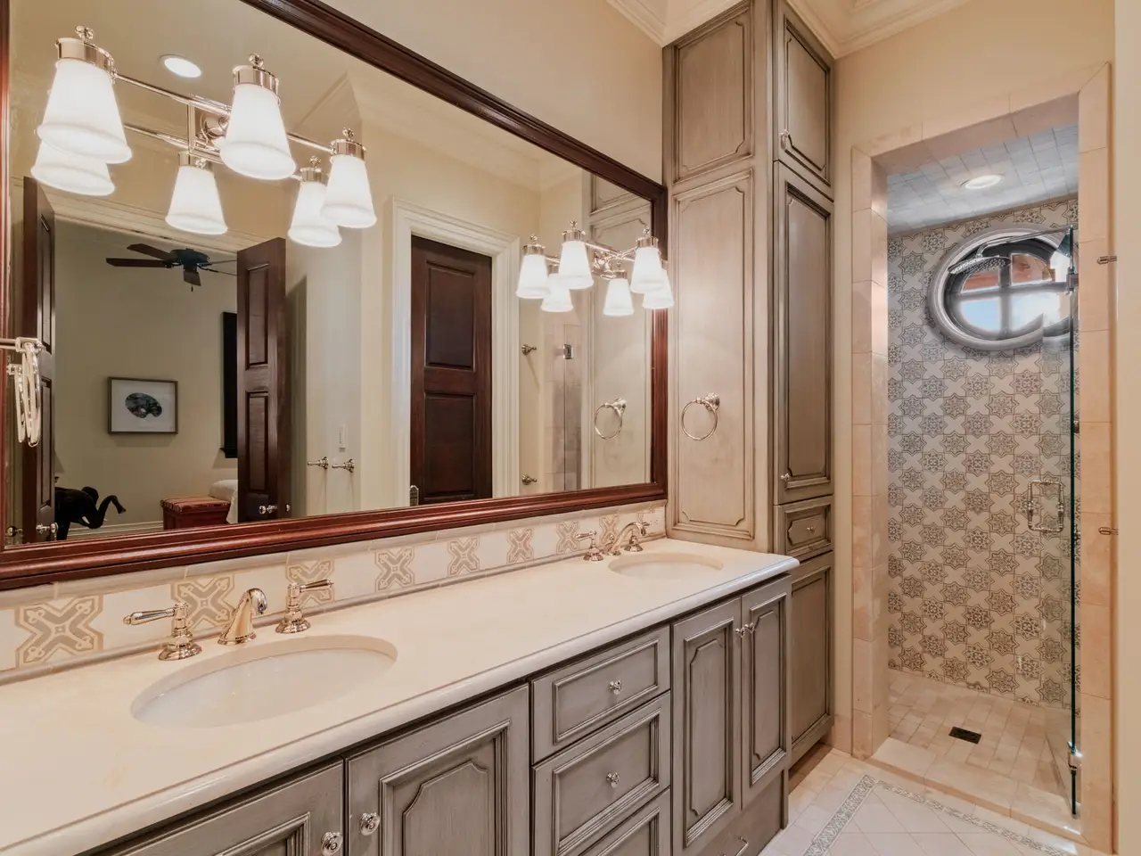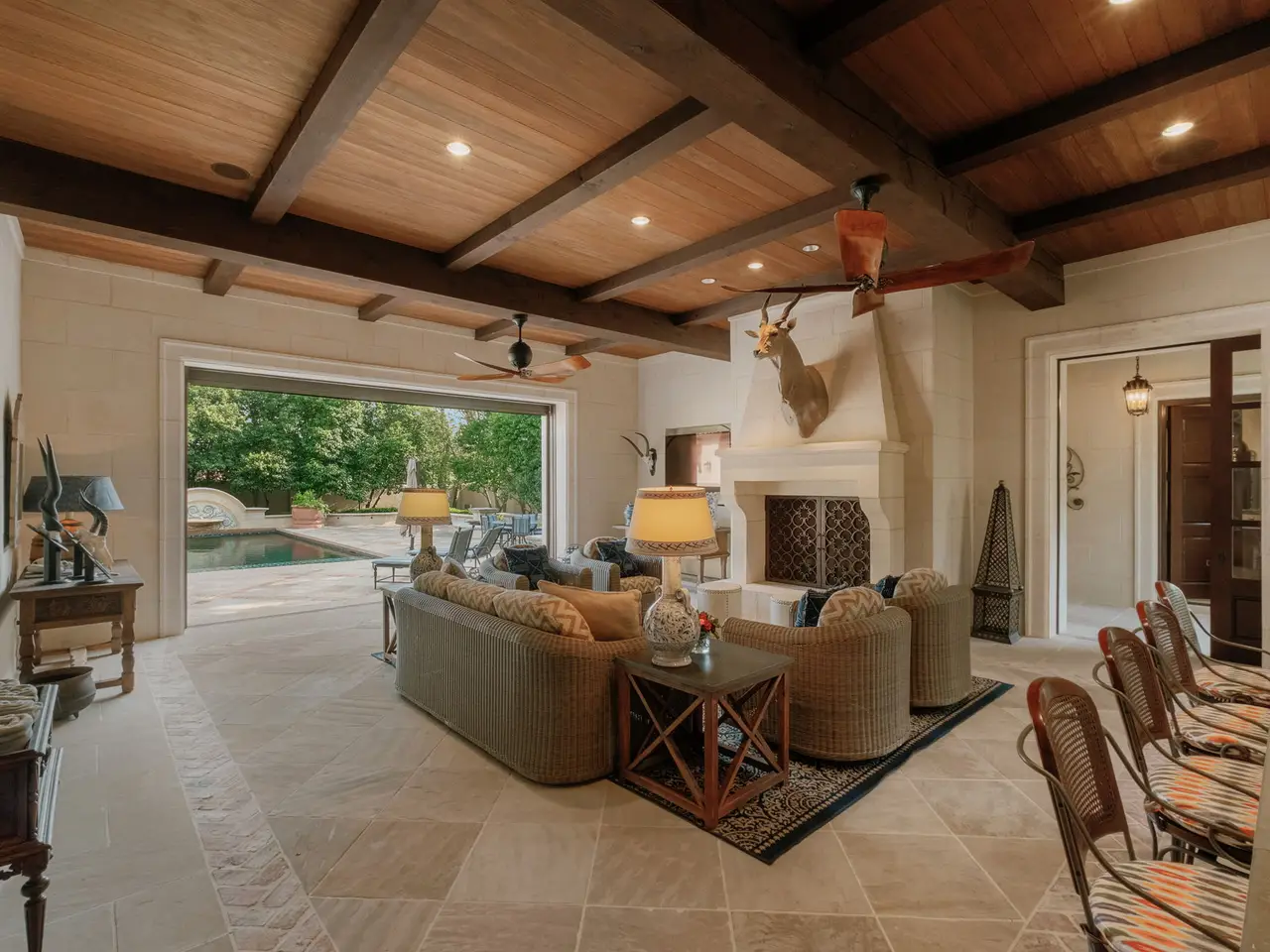 This breathtaking estate, completed in 2009 by Mauze Construction and designed by renowned architect Roy Braswell, exudes unparalleled quality and craftsmanship. With a hand-cut limestone exterior and an Italian-style barrel tile roof, complemented by full copper gutters, this home offers timeless elegance. Inside, custom finishes throughout include Palmer Todd-designed cabinets in the kitchen, bar, primary bath and primary closet. The primary closet is larger than most bedrooms and has two islands the make packing a breeze. Boasting 4 bedrooms, 4 bathrooms, and 4 powder baths, it offers 12-foot ceilings, 4 fireplaces, and a beautiful family room featuring a hand-carved mantel and hand-painted wood beams. The outdoor living space is a true highlight, offering a 1,238-square-foot lanai with 3 fully retractable custom Koaba wood doors, a fully equipped outdoor kitchen, and a cozy fireplace. This is the finest outdoor living area you will ever see. The lower level wine room, complete with custom iron doors to the wine cellar also has a powder room and a catering kitchen. You can walk outside and take the beautiful stone staircase to the lanai. . A private office, custom bar, and spacious family room add to the home®s appeal, while the primary bath with heated floors, a coffee bar, and retractable doors opening to a patio overlooking the pool ensures a spa-like experience. Further luxury is found in the 5-car garage, a separate apartment above the garage, and a gorgeous backyard with a pool, koi pond, and lush oaks. With advanced systems like Lutron lighting, Creston controls, and a mosquito nix system, this estate is a true masterpiece. - 4/4/2025 8:01:20 AM