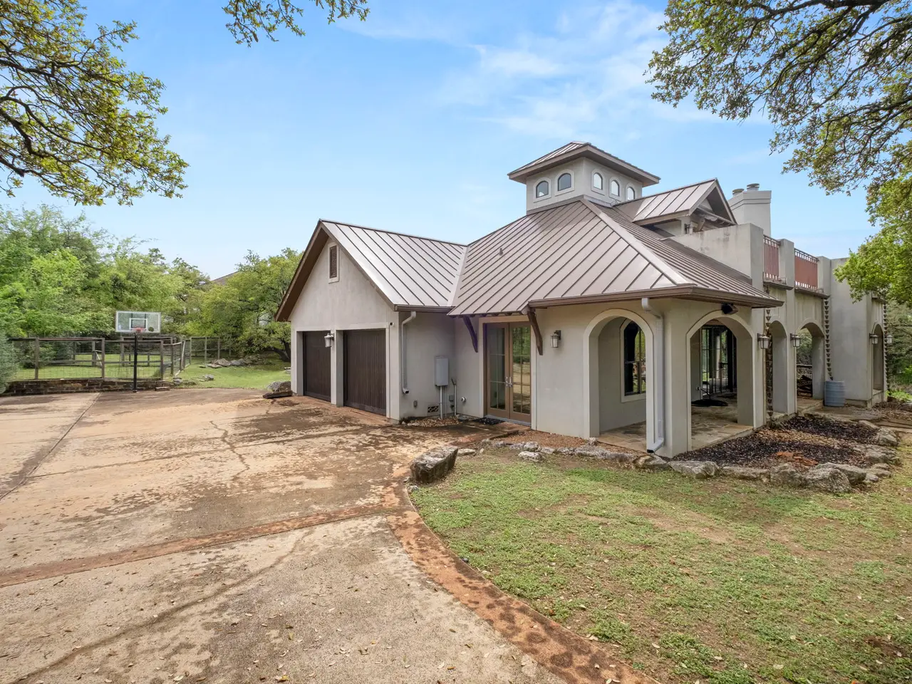 Welcome to 25052 Whistling Wind, a Mediterranean masterpiece nestled in the exclusive Hidden Spring Estates. This gated community gem, crafted by the esteemed Malatek Home Builders, rests on nearly 3 acres of lush, picturesque land, offering breathtaking views of the enchanting Hill Country. As you enter this luxurious estate, you'll find two distinct residences: a grand main house and a charming guest house. The main house, spanning approximately 3,200 square feet, boasts a thoughtfully designed floor plan. The primary suite, located on the first floor, serves as a serene retreat with a sumptuous en-suite bathroom featuring an oversized garden tub and a stand-up shower. The main level also includes an elegant dining room, perfect for cozy dinners, and a spacious island kitchen that flows seamlessly into the inviting living area, ideal for entertaining loved ones. Upstairs, the home offers comfortable and private secondary bedrooms. Step outside to find an expansive wooden deck, creating an intimate setting for special gatherings and memorable moments. Beyond the deck, a generous sparkling pool awaits, heated for year-round enjoyment and relaxation. Additional outdoor amenities include an in-ground trampoline, a dog run, and a tree house. The main house includes an attached 2-car garage. Designed with the famous Ballory Hotel in New York City mind, the nearly 1,600-square-foot guest house, ensures that visitors feel right at home with every comfort provided. It features a full kitchen and family room, two bedrooms downstairs, and an upstairs loft that can serve as an office, media room, or third bedroom. The walkout balcony on the second level provides extensive views of the surrounding hill country. The guest house also includes an attached 2-car garage. A private utility drive provides convenient access for contractors needing to service the property. 25052 Whistling Wind is a rare sanctuary in San Antonio, offering an exquisite blend of luxury, space, and tranquility amidst the stunning beauty of the Hill Country. Welcome home.