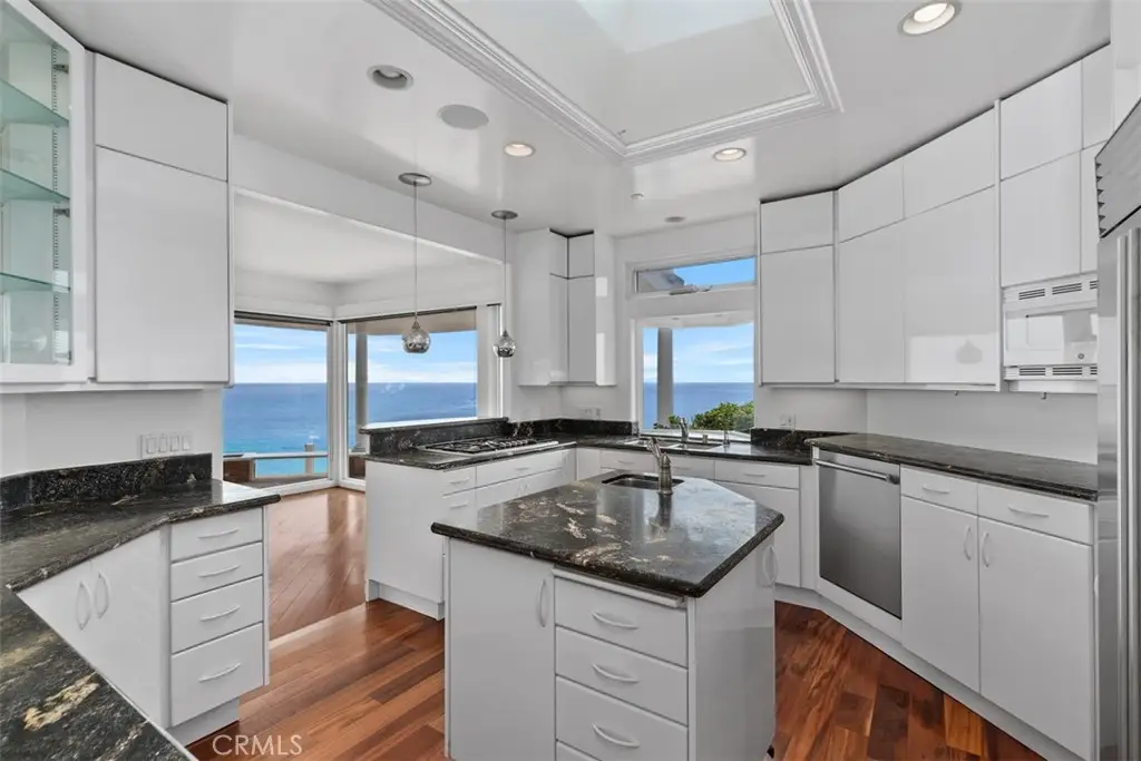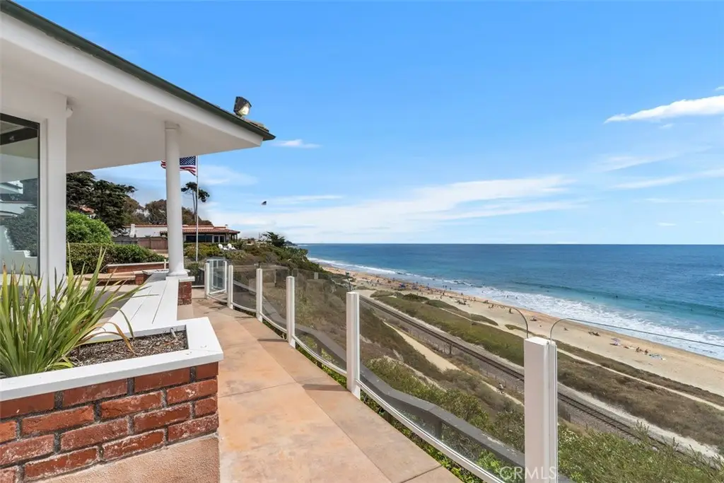 坐拥壮丽全景的绝美海滨庄园。这座独一无二的海滨庄园由著名建筑师约翰·加西亚精心打造,坐拥湛蓝的海景和精致的设计,其配套设施琳琅满目,难以一一列举,但绝对值得您亲自体验。庄园坐拥黄金地段,俯瞰海豹岩、里维埃拉海滩和失落之风海滩。此外,这座定制住宅还能饱览圣克莱门特码头和丹纳岬港的迷人景色,为您带来南加州顶级海滨生活体验。步入室内,落地窗、光线充足的开放式格局、简洁的线条、宽敞的起居空间以及流畅的室内外空间交相辉映。引人注目的大客厅拥有落地窗,可饱览太平洋的壮丽景色,滑动玻璃门则通向宽敞的海滨露台,露台上设有多层露台。专业厨房和毗邻的日光浴室/早餐室(带吧台)让您轻松享受日常生活和娱乐。日光浴室/早餐室可通往内部庭院,庭院内设有岩石景观泳池、水疗中心和水景,宛如一片宁静的私人绿洲。该房间通向另一间带壁炉的家庭活动室,是放松身心或娱乐休闲的理想场所。奢华的主套房坐拥绝佳海景,配备私人阳台,可欣赏180度海岸线和激流的壮丽景色。步入水疗风格的大理石按摩浴缸,浴缸旁设有大型双头淋浴,同样可欣赏迷人的全景。两间超大次套房兼具灵活性和私密性:其中一间配有嵌入式床、精美的石砌淋浴间、葡萄酒冰箱和定制嵌入式家具。这间套房是宾客休憩或行政办公的理想之选。第二间套房也配有嵌入式床、独立浴室、超大浴缸/淋浴组合,并可直接通往池畔庭院和宁静的水景。从后露台出发,沿着私人台阶直达沙滩,可轻松前往圣克莱门特最令人向往的家庭友好型海滩之一——这里是冲浪、桨板冲浪、游泳或日落漫步的理想场所。距离圣克莱门特市中心、码头、当地餐厅、购物中心、火车站以及丹纳角和圣胡安卡皮斯特拉诺的海滨设施仅数分钟路程。无需支付任何费用或业主协会费用。