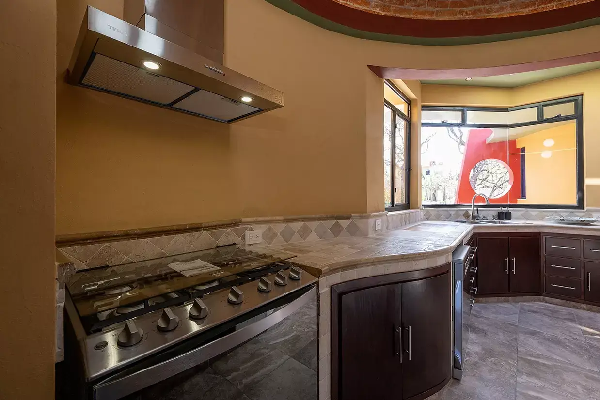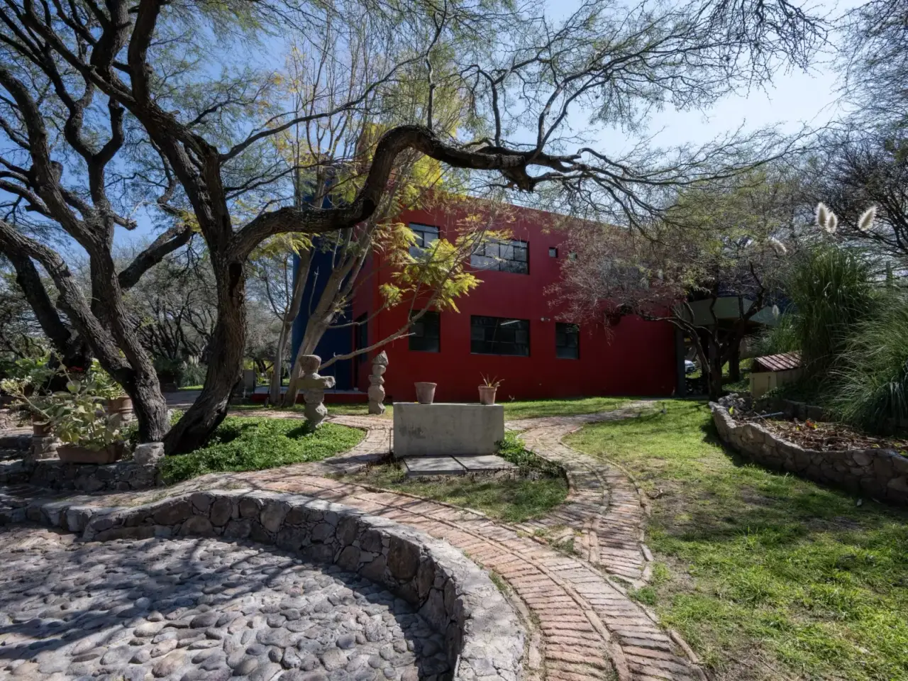 If you are looking for a luxurious one-of-a-kind house, then look no further—Casa De La Galeria is the home for you. Inspired and designed by some of Mexico’s most prestigious architects, Casa De La Galeria is a contemporary masterpiece with warm colonial touches. The house sits at the top of a lushly landscaped 1.5 acres in Atotonilco, a UNESCO World Heritage Pueblo Mágico. It might feel like you are in another world, but it is only an easy 15-minute drive to the hustle and bustle of San Miguel’s Centro. Each of the four spacious bedrooms on the upper floor features ensuite bathrooms, lots of natural light and breathtaking views of the countryside from their private terraces. The amenities are stunning, from the GE Profile appliances in the expansive kitchen to the immaculate wood and stonework and other impressive design touches throughout. The rooftop terrace offers views to the countryside and beyond, so you can take in the sunsets and sunrises and more. Part of the magic of this unique property is the 3000 square foot studio beneath the main house. Created originally as an enormous ceramic studio complete with two large kilns, it is now an elegant open space that can easily be converted into a few bedrooms, workshops, offices or even a commercial kitchen should you want to convert the property into a retreat center or Bed and Breakfast. It has its own bathroom and is connected to the house by stairs and an elevator. There is almost no end to the intriguing features of Casa De La Galeria but the sprawling gardens, complete with elegant stone pathways and sitting areas overlooking nothing but rustic acreage below, definitely deserve special mention. At the right time of the year, you can even hear the Rio Laja as it rushes by. Come visit Casa De La Galeria—you’ve never seen anything quite like it, and the experience will stay with you forever.
