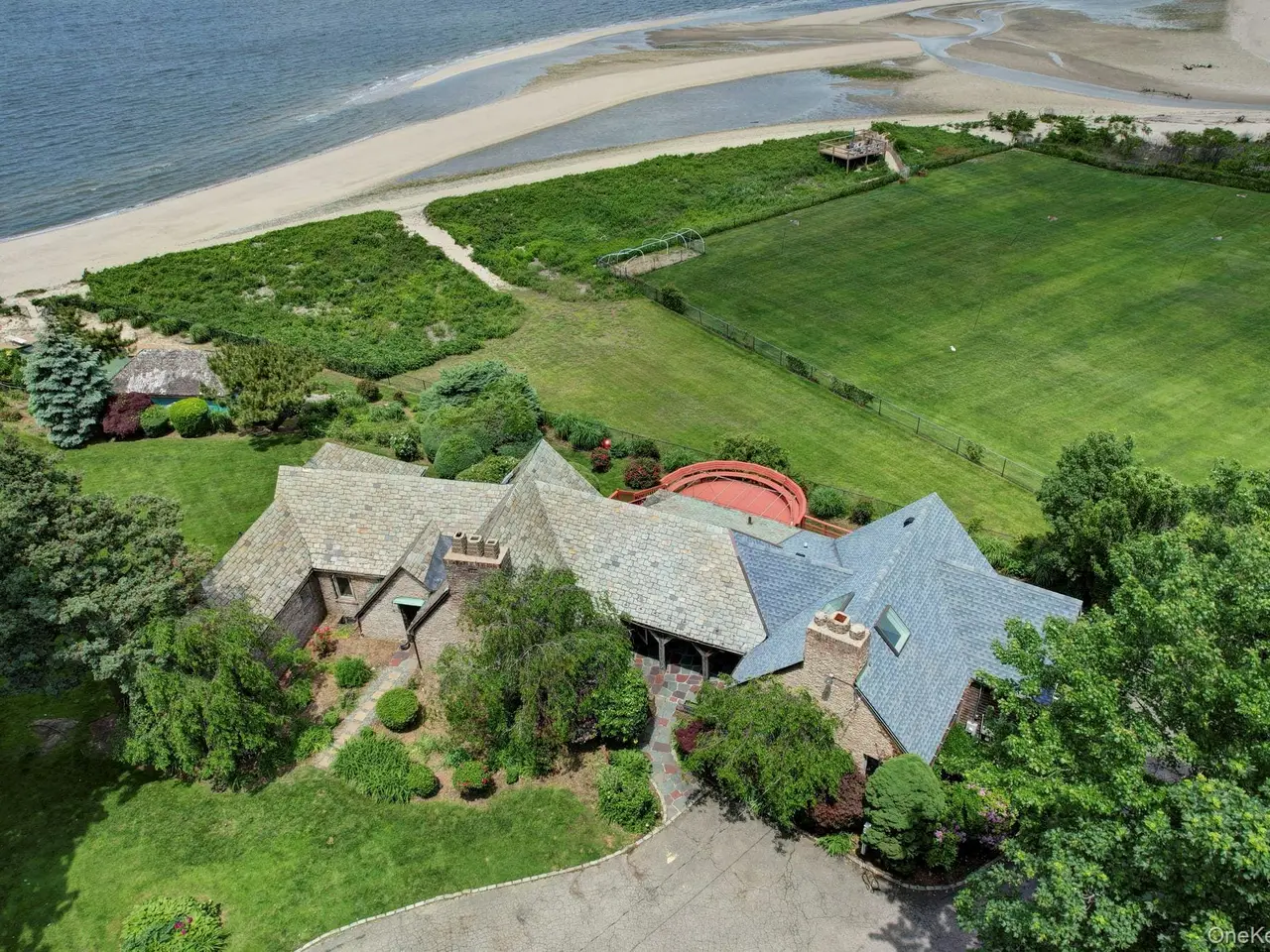 From Swimming Pool to Private 72' Water Front Beach - Perched high above with panoramic water views from every room, this exceptional waterfront ranch offers an unparallel lifestyle in one of Sands Point's most prestigious and private enclaves. Nestled on over an acre of lush, landscaped grounds, the property exudes serenity and grandeur. This historic estate has been meticulously reimagined into a bespoke masterpiece, where timeless architecture meets sophisticated modern design. Every detail has been thoroughly curated to preserve classic charm while while incorporating today's most elegant finishes. This open and expansive layout, offers versatile spaces ideal for both everyday living and grand entertaining - all oriented to capture the home's sweeping water views. water front, beach, Featuring 5 bedrooms, 3 full baths and a powder room, Library, Deck the main residence offers beautifully proportioned rooms filled with natural light and framed by expensive windows that showcase sweeping panoramic views. Inground Pool fenced in with Pool House with Full Bathroom. This property is inspired by the architecture of Falaise, the Henry F. Guggenheim estate which is now Sands Point Preserve