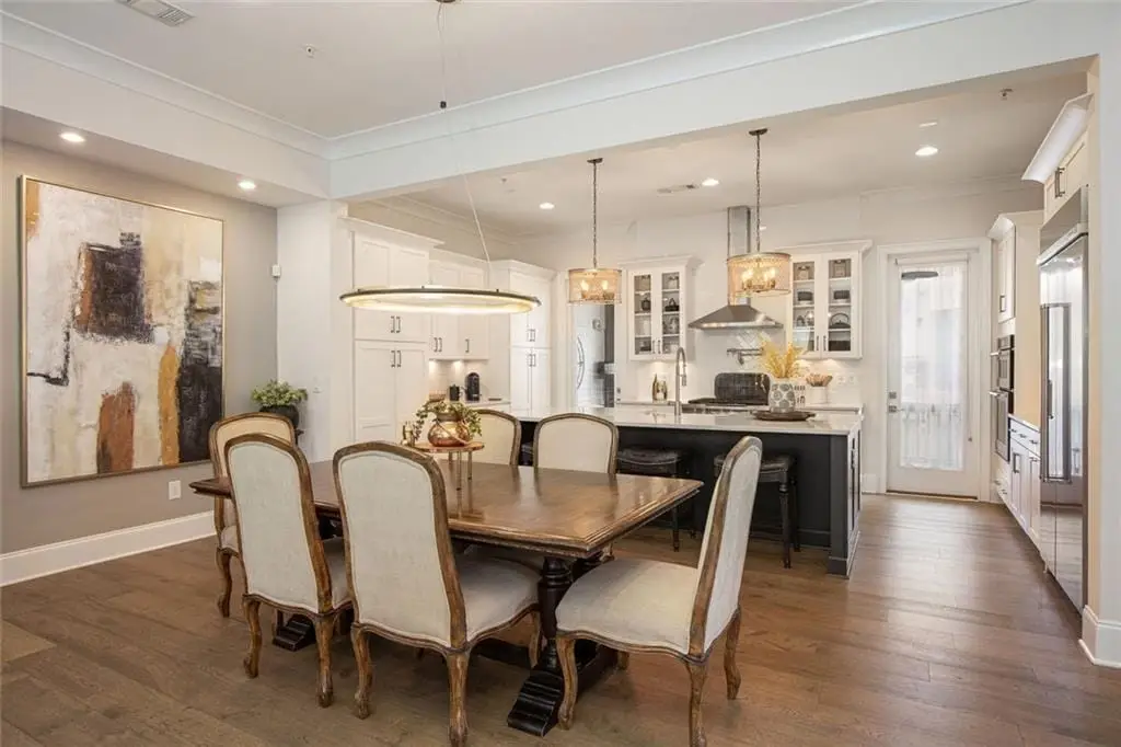 Luxury, Location & Convenience. Welcome to 6766 Cadence Boulevard, nestled in the sought-after Ashton Woods development of Aria North. This custom-designed, wide-end unit showcases the coveted Ashton Woods Signature Domingo floorplan, enhanced with a covered front entrance, elongated driveway, extra end-unit windows, distinctive architectural details, a finished terrace level, and peaceful views of the front courtyard. Offering 3,170 square feet, this residence is a rare gemdelivering the feel of a single-family home with the ease of low-maintenance living. Impeccably maintained, spacious, and thoughtfully designed, it's the perfect balance of comfort and sophistication. Inside, discover 3 bedrooms, 3 full bathrooms, and 1 half bath. The gourmet chefs kitchen features stunning stone countertops, an upgraded 6-burner range, premium KitchenAid stainless steel appliances, a pot filler, striking pendant lighting, and generous barstool seatingperfect for entertaining. The adjacent dining room, complete with an upgraded chandelier, sets the stage for memorable dinner parties. The great room offers a custom-designed fireplace flanked by built-in cabinetry and is bathed in natural light. Step outside to the covered back deck, an ideal spot to savor the upcoming crisp fall evenings. Throughout the home, upgraded hardwood floors and lighting fixtures provide a consistent sense of style and quality. Upstairs, the inviting owners suite is a true retreat. The spa-like bathroom boasts dual vanities, an oversized upgraded shower with built-in bench, and a soaking tub. A second upper-level bedroom also enjoys its own private en-suite bath. Custom Restoration Hardware shades and blinds are installed throughout the home, and the entire property is wired for speakers + smart-home integration. The finished terrace level reveals a hidden third bedroom and full bath, plus an additional gathering space with a brick accent wall, custom built-in bar and cabinetry. The spacious garageequipped with an electric car charging stationis accessed via a private alley, while the extended driveway offers rare additional parking. Located just minutes from GA-400 and with close proximity to I-285, this home offers unmatched convenience. Aria North residents enjoy exceptional amenities, including two pools, a fitness center, clubhouse, club room, and a 12-acre park. You’ll also love strolling to the shops and restaurants in Aria Village. This is your opportunity to live in true luxuryschedule your private showing today!