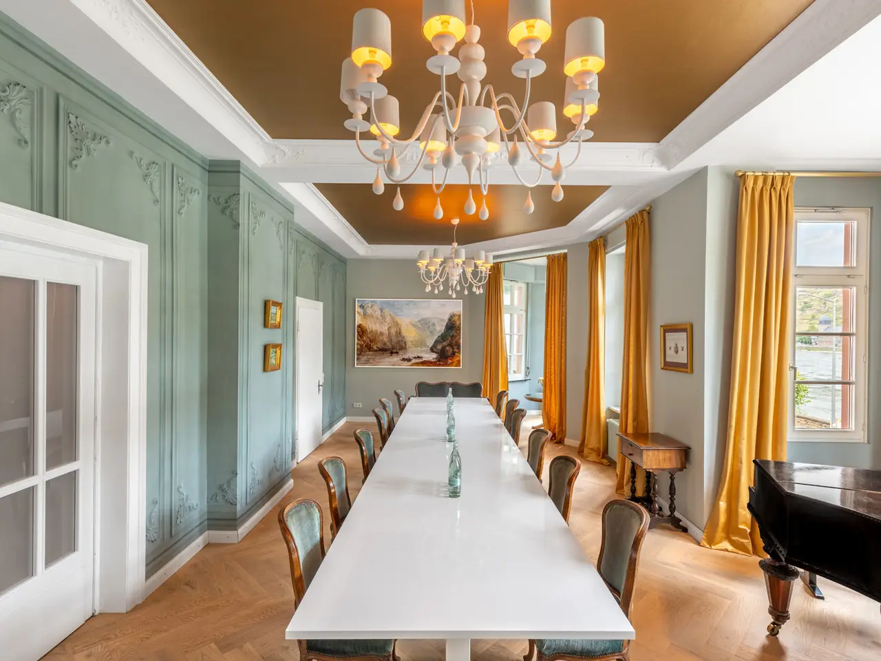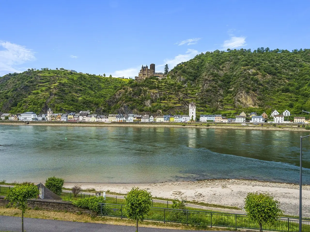 In an incomparable location, protected from flooding and in the first row of the Rhine, this stately property, built in 1892, has a living space of approx. 429 m² on a plot of approx. 2,403 m². From here, an impressive view of the Rhine, the venerable Katz Castle and the legendary Loreley opens up - embedded in the UNESCO World Heritage Upper Middle Rhine Valley, one of the most impressive cultural landscapes in Europe. A symbiosis of history, luxury and modern living comfort - this villa is an architectural masterpiece and an absolute rarity on the real estate market. Whether as a private retreat of exquisite elegance or as a prestigious commercial property - this property opens up a wide range of possible uses. Planning permission has already been granted for use as both a conference venue and an exclusive vacation residence. In addition, the listed status of this property opens up potential tax advantages, for example within the framework of the so-called monument depreciation allowance. A separate information letter is available for detailed information on tax aspects and financing options. The extensive outdoor facilities are particularly noteworthy: spacious terraces are spread over several levels, surrounded by impressive quarry stone walls and framed by majestic trees. This castle-like ambience lends the property an extraordinary aura and makes it a unique place of tranquillity, representation and inspiration. The interior also sets standards: each room has been completely redesigned and individually furnished over the past two years in collaboration with a renowned interior design firm. High-quality materials, exclusive fixtures and fittings and a well thought-out overall concept combine to create an atmosphere of grandiose harmony and timeless elegance. The villa is fully furnished and can be taken over on request, including the inventory, so that immediate, seamless use is guaranteed. The purchase of this property is free of commission for the buyer - the estate agent's commission is paid in full by the vendor.