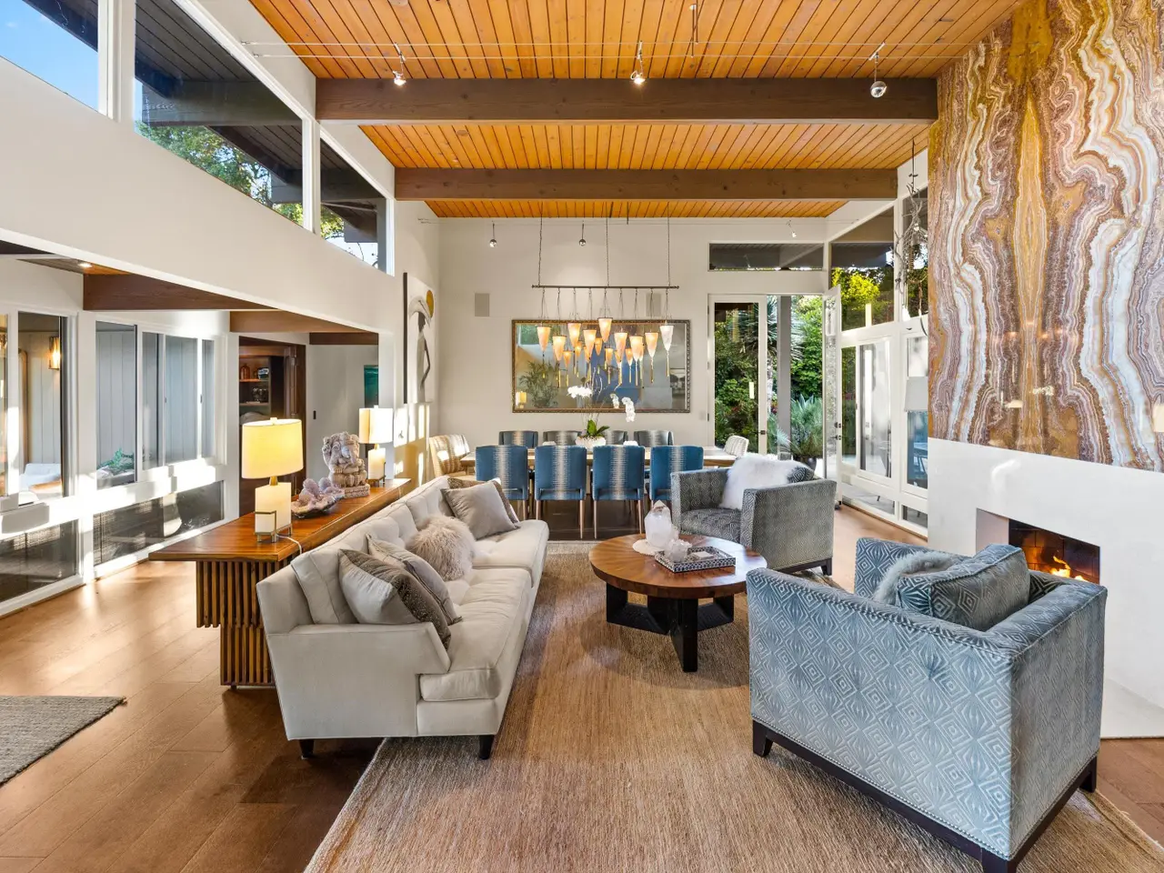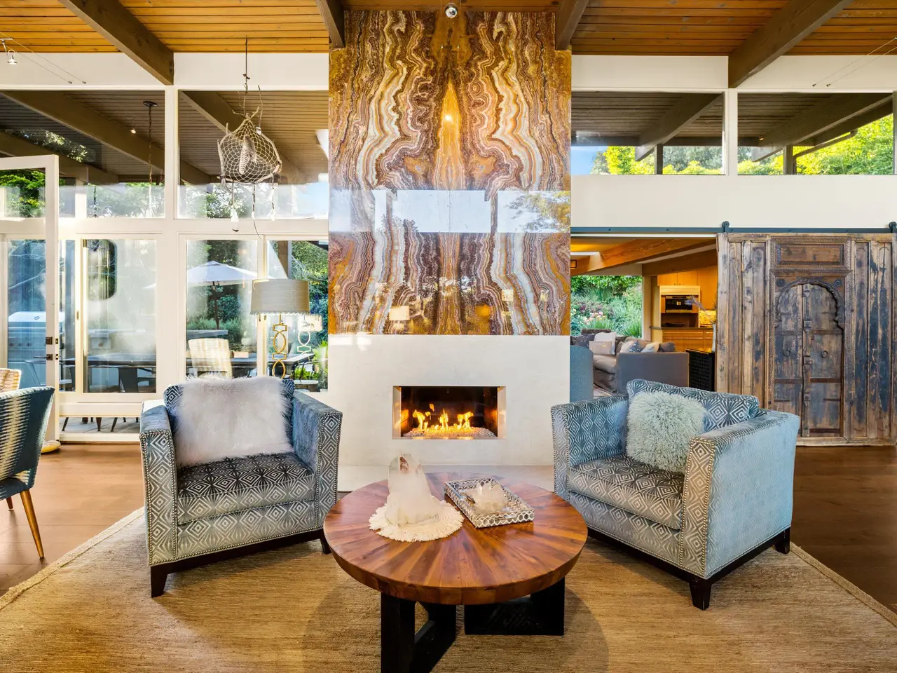 Dramatic agate fireplace