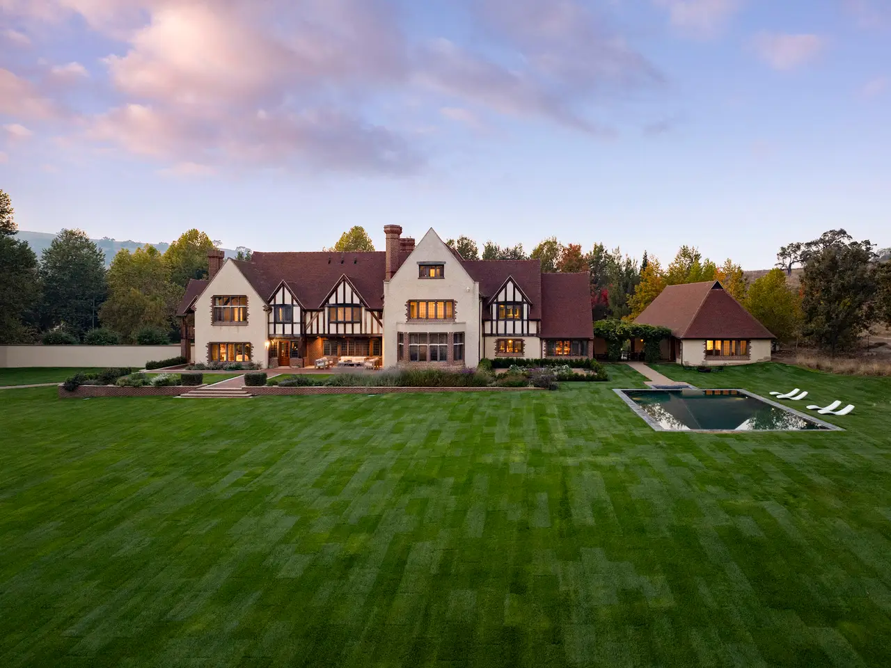 Public Remarks: An enchanting 103+/- acre estate in prestigious Happy Canyon, Santa Ynez, crowned by a residence inspired by classic English manors. Completed in 2022 and reimagined by designer Jane Hallworth, the interiors blend heritage and contemporary elegance. A zero-edge pool overlooks manicured lawns and oak-studded mountains, while the pool house includes an exercise room, four-car garage, and potting room. An allee of sycamores leads to stables bordered by a kitchen garden and Rosa Rugosa hedge. The stables feature pine interiors, 4 stalls, a tack room, and a turret-designed manager's quarters. This private retreat offers breathtaking landscapes and refined living on the Central Coast.