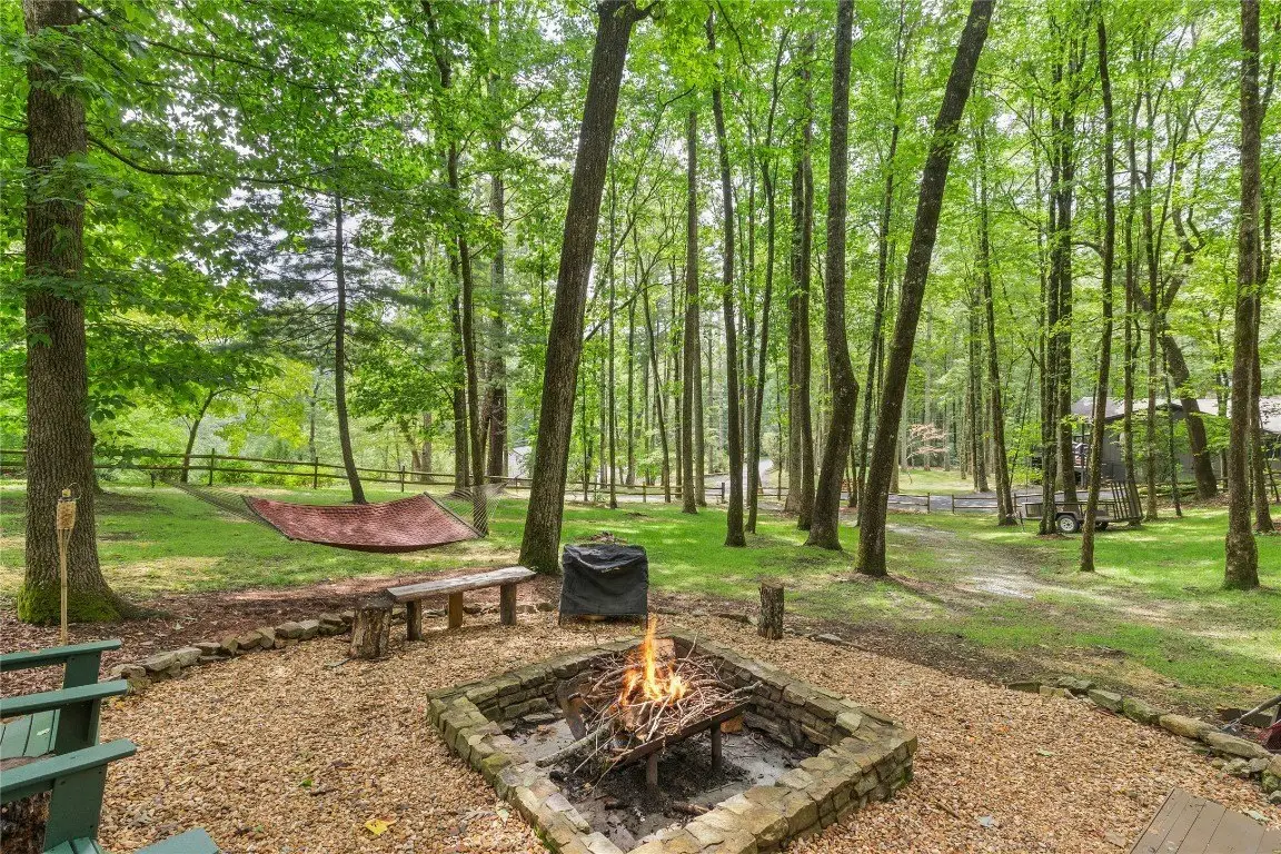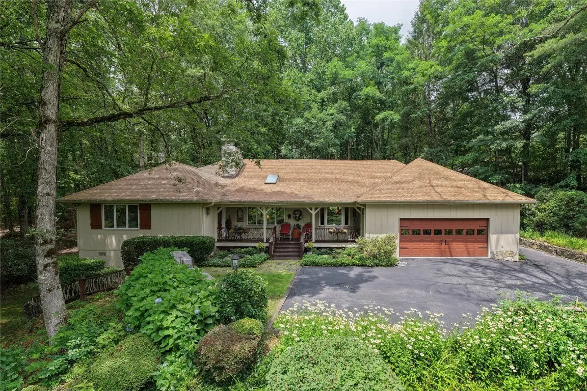 Located in the desirable Round Hill Estates community, this classic single-level home offers generous living spaces, timeless finishes, and a welcoming layout ideal for year-round or seasonal living. Set on a gentle, double lot with lush landscaping and a large grassy area, the nearly flat property is perfect for enjoying the outdoors, with a beautiful stone firepit, shaded gathering spots, and peek-a-boo mountain views from the covered front porch. Inside, rich wood flooring and skylights create a warm, airy atmosphere. The spacious living room features a striking stacked-stone fireplace and flows seamlessly into the dining area and a bright, updated kitchen, designed for easy entertaining and daily comfort. A large screened porch off the main living area extends the indoor-outdoor lifestyle. The well-planned layout includes a den or office just off the living room, two oversized guest bedrooms, and a spacious primary suite. An oversized two-car garage includes a workshop area, a spacious walk-in basement offers additional room for storage and activities, while the driveway offers ample space for parking and turnaround. The home was extensively refreshed over the past 3 years, including the new kitchen, new appliances, 2 new water heaters, new baths, new roof, wiring for a generator and more. Enjoy a convenient location near the Country Club of Sapphire Valley. Residents of Round Hill Estates have the option to enjoy year-round Sapphire Valley Resort amenities, including heated pools, tennis courts, pickleball courts, a fitness center, a dog park, mini-golf facilities, a nine-hole golf course, and Fairfield Lake for swimming and boating. Winter fun abounds with skiing, snow tubing, and snowboarding. Just minutes from Cashiers’ charming shops and dining, Sapphire offers the perfect blend of adventure, leisure, and convenience. Surrounded by friendly neighbors and set in a peaceful, established neighborhood, this charming home offers comfort, convenience, and classic mountain living.