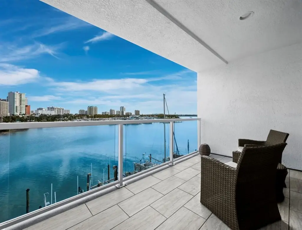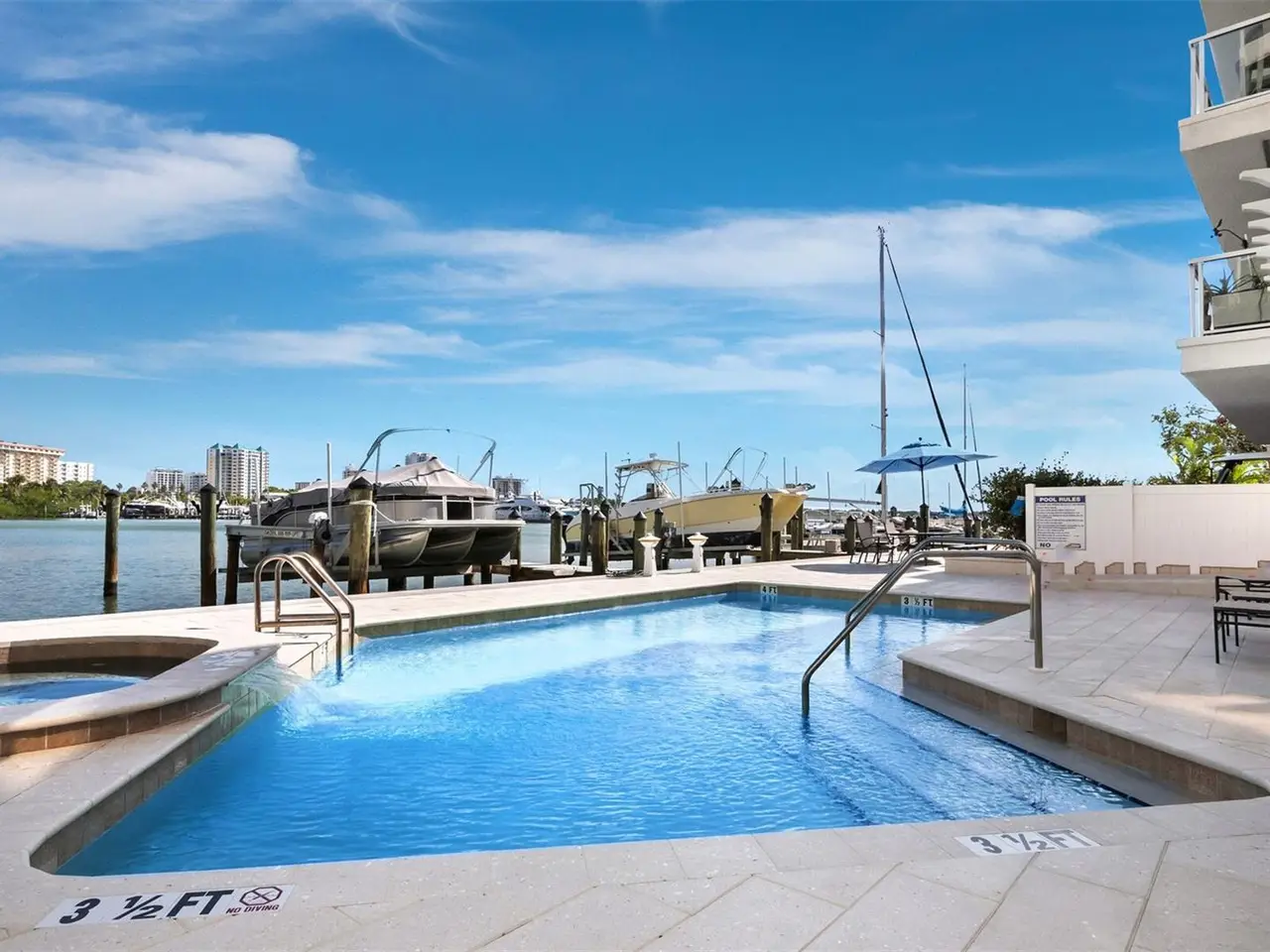 Nestled on a private 22-acre peninsula on Sarasota Bay at Golden Gate Point, this stunning 14-unit boutique condominium epitomizes the ultimate in luxury living, offering an unparalleled blend of location, design, and sophisticated elegance. The Harbor View building, a modern architectural masterpiece, underwent an extensive renovation in 2017-2018, with over $1.5 million invested in premium upgrades. Every detail has been thoughtfully curated to ensure the highest level of comfort and style. From the floor-to-ceiling sliders to the unobstructed panoramic water views that stretch from sunrise over Sarasota Bay to the sparkling lights of the downtown skyline, this residence provides a truly breathtaking setting. Step outside onto your expansive terrace to watch the vibrant marina activity at Marina Jack's or simply unwind with a favorite drink as boats gracefully glide by. The property offers a host of luxurious amenities, including a heated pool and spa, outdoor grilling area, and a private shower-perfect for both relaxation and entertaining in paradise. Just four blocks from the best of downtown Sarasota, you're close to fine dining, upscale shopping, and cultural venues, with quick access to St. Armands Circle, renowned beaches, golf courses, the Ritz Carlton fitness and spa, and tennis clubs. Inside, this spacious condominium features 2 generously sized bedrooms plus a large den, ideal as a third bedroom or home office. The open-concept living area is perfect for entertaining, with a chef's kitchen outfitted with high-end Thermador gas range, Sub-Zero refrigerator, sleek granite countertops, and a large island. A convenient powder room is available for guests, and both ensuite bedrooms feature walk-in closets and elegantly designed granite and tile bathrooms. The home also includes two designated parking spaces (#23 and #24) and private exterior storage (3x6x9). With its prime location, this residence offers excellent rental income potential. The master suite is a true retreat, featuring an abundance of natural light, a spacious walk-in closet, and a lavish master bath with double vanities, a deep garden tub, and a walk-in shower. Beyond the property, the central location offers an enviable lifestyle-just steps from the vibrant cultural scene, dining, and shopping in downtown Sarasota. A short bike ride brings you to the pristine sands of Lido Beach. Imagine enjoying iconic events such as the 4th of July fireworks from the comfort of your own home, with world-renowned Gulf beaches and St. Armand's Circle just minutes away. Whether you're looking for a serene waterfront retreat or an exceptional space to entertain guests, this exquisitely renovated condominium offers the best of both worlds-sweeping views, premium finishes, and an unbeatable location in the heart of Sarasota's waterfront.