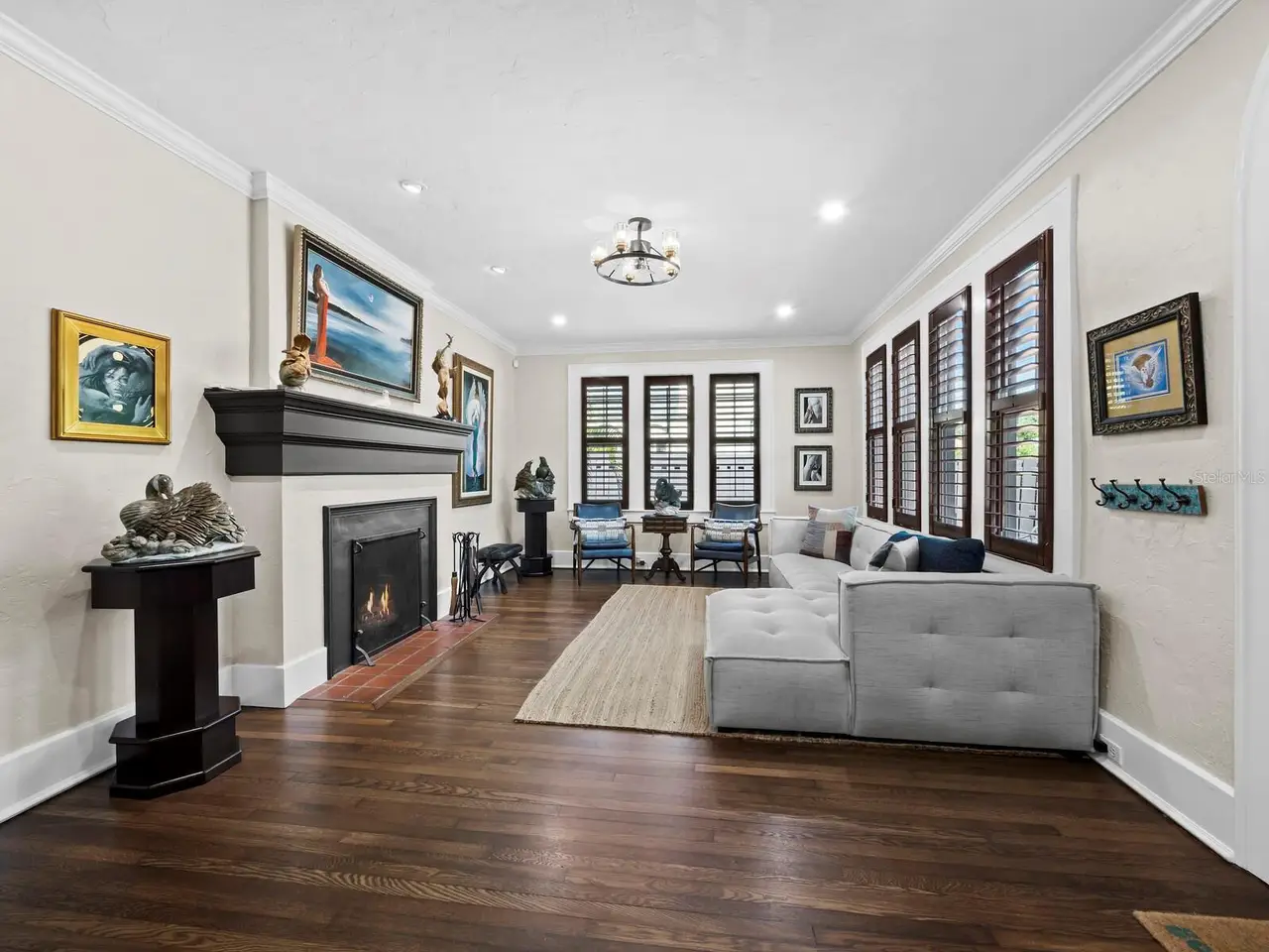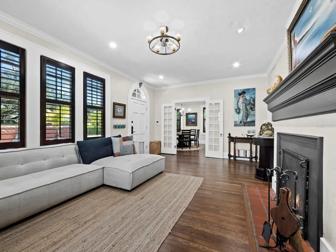 Situated in the highly desirable West of Trail neighborhood of Hudson Bayou, this fully restored 1922 residence is the perfect blend of historic charm and modern conveniences. The property offers 2,284 square feet with two bedrooms and two bathrooms in the main house, plus a one-bedroom, one-bathroom guest house. Renovations include a 2006 conversion of the garage into a guest house with a stucco privacy wall and Chicago brick driveway. In 2018, a spacious primary suite with double closets, a large bath, and French doors to a screened lanai was added. High ceilings, oversized impact windows, and refinished hardwood floors (2024) add to the home’s appeal. Recent updates include a recoated roof with a 10-year transferable warranty (2025), A/C (2023), water heater (2024), encapsulated crawlspace with dehumidifier (2024), foundation reinforcement with new support jacks (2024/2025), and hurricane-rated windows. The kitchen and dining area were fully renovated, featuring custom Calistoga cabinetry and designer appliances (2024/2025). Additional features include recessed lighting, custom closets, a Murphy bed, and a natural gas fireplace. A wellness room with an infrared sauna (2025) completes the interior. Exterior highlights include enhanced landscaping, three all-weather sheds, a pergola with natural gas grill hookups, and a serene brick courtyard surrounded by mature landscaping for privacy. The location is unparalleled, with proximity to Southside Village, the downtown Sarasota bayfront, St. Armands Circle, and the world-famous beaches of Lido and Siesta Key.